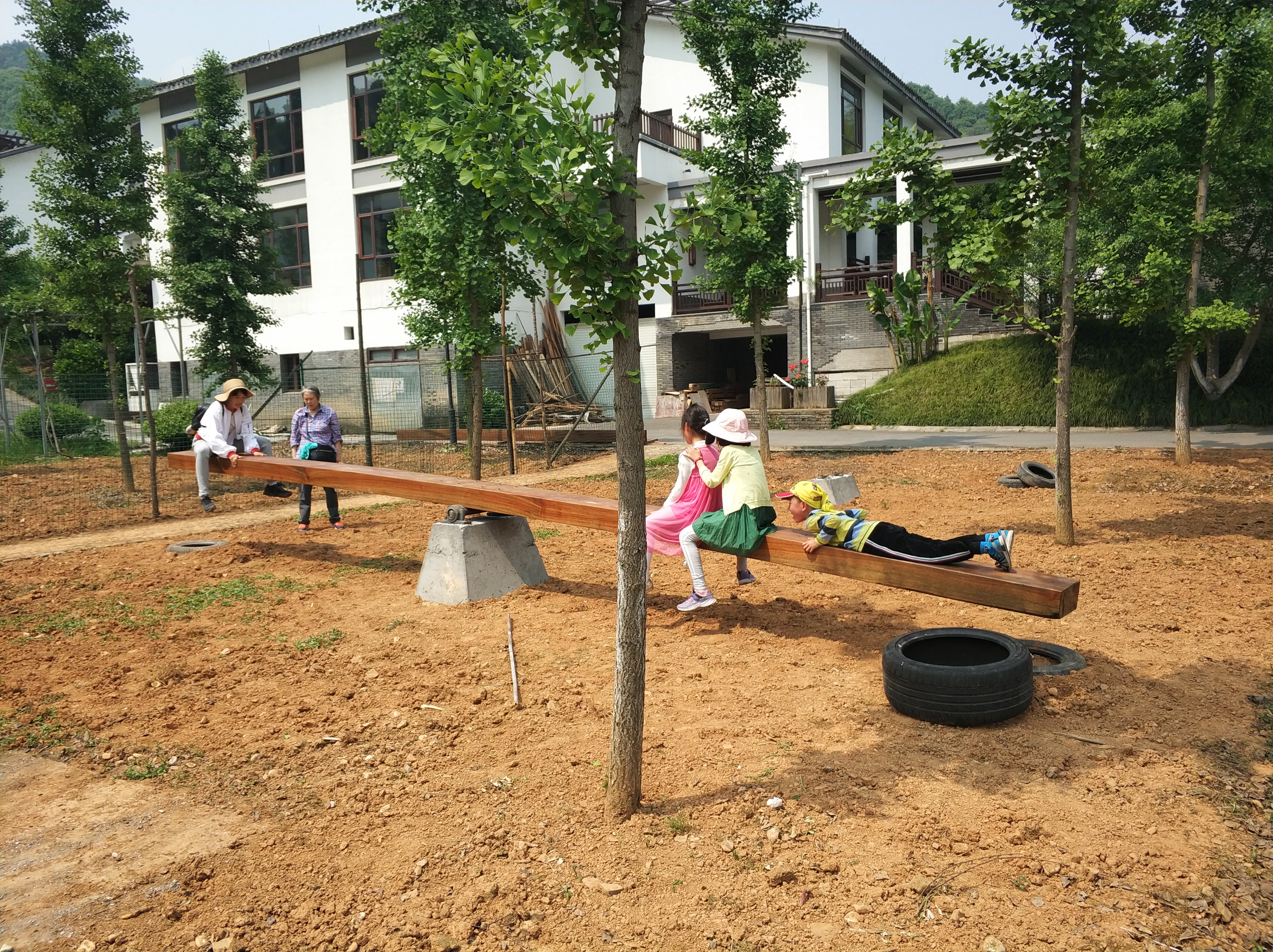 在等待茶叶炒制的时候,大家玩起了农庄的免费游乐设施