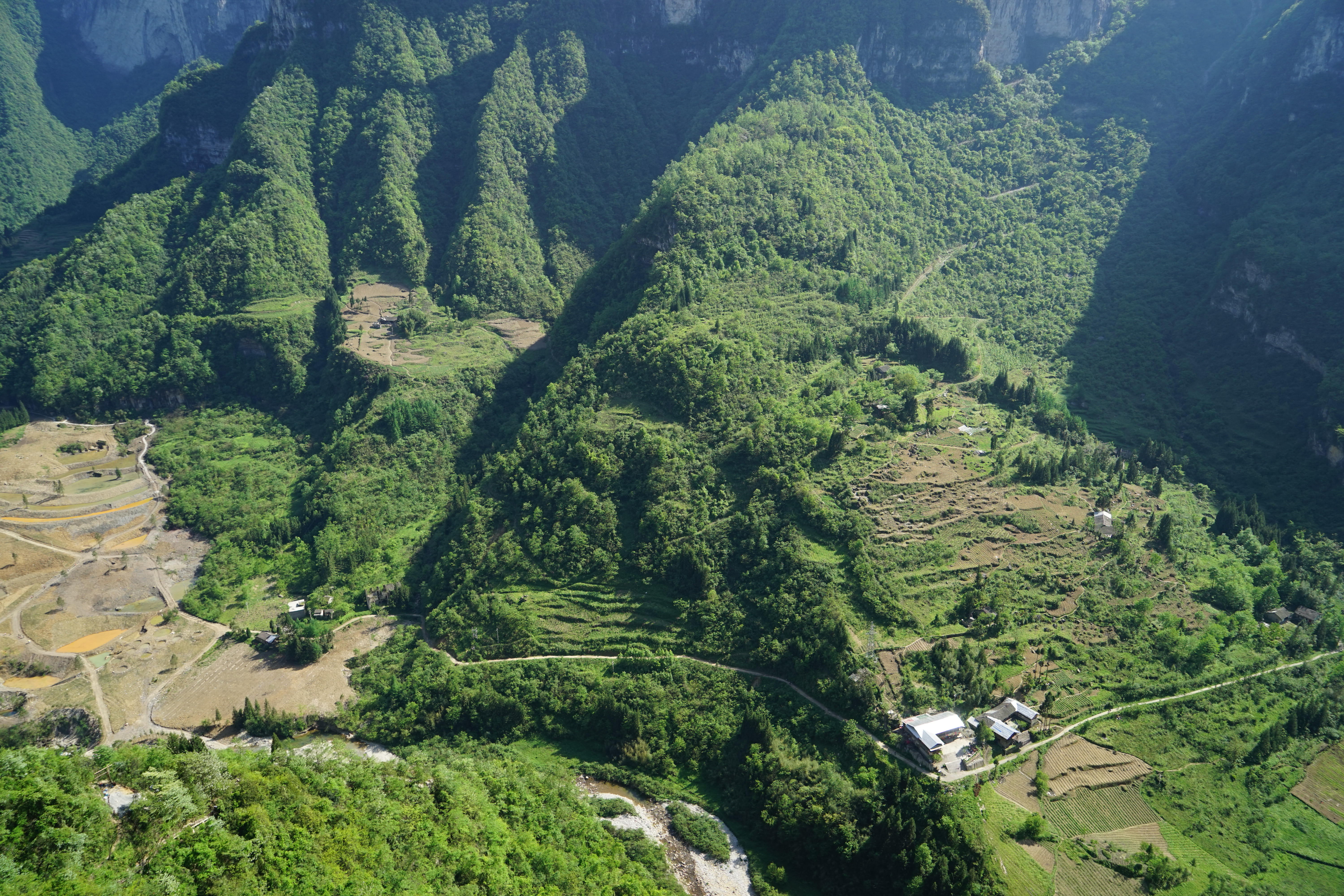 在抵达新田村后,经过征求大家的意见,我们决定走风景更为美丽的栈道。在栈道修建完毕以前,进入鹿院坪需要走被山地人成为“42拐”的1520级台阶,这也是鹿院坪一直还保留着原生态的原因。在新建的栈道上,我们可以看到环绕着鹿院坪的峡谷和俯瞰下面的村落,配上蓝天白云,实在赏心悦目。在途中,我们也遇到了很多的土家族人,无论是老人还是小孩都给人一种特别亲切的感觉,特别是他们对你点头微笑的时候......