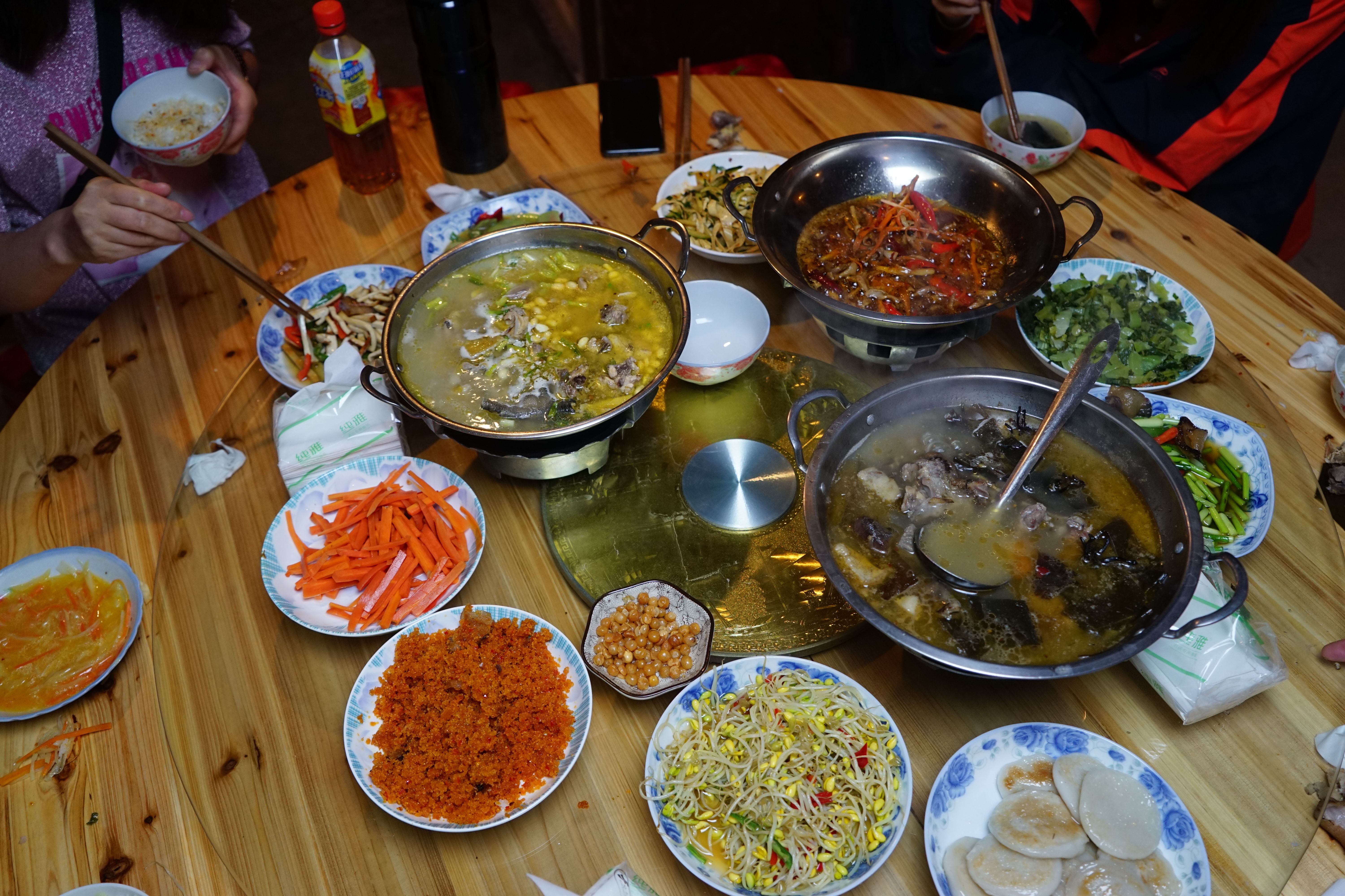 丰盛的晚餐:干锅腊肉,清炖柴鸡锅,原生态竹笋,糯米糍粑等......