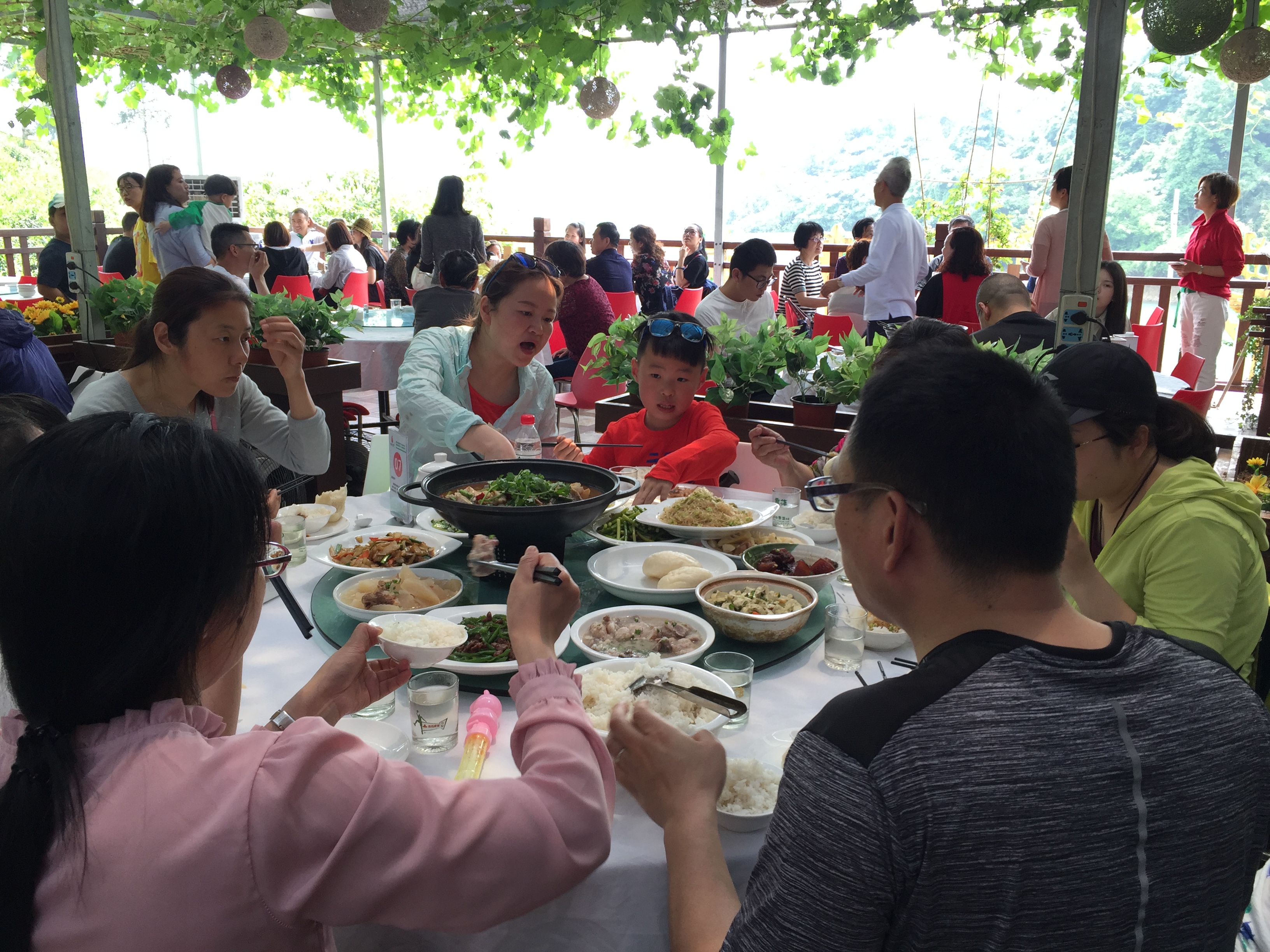 把茶叶交给茶园伯伯称重后,我们就去吃饭了,青山绿水间,吹着微微清风,吃着农家地道美食,好一个春日的午餐时光