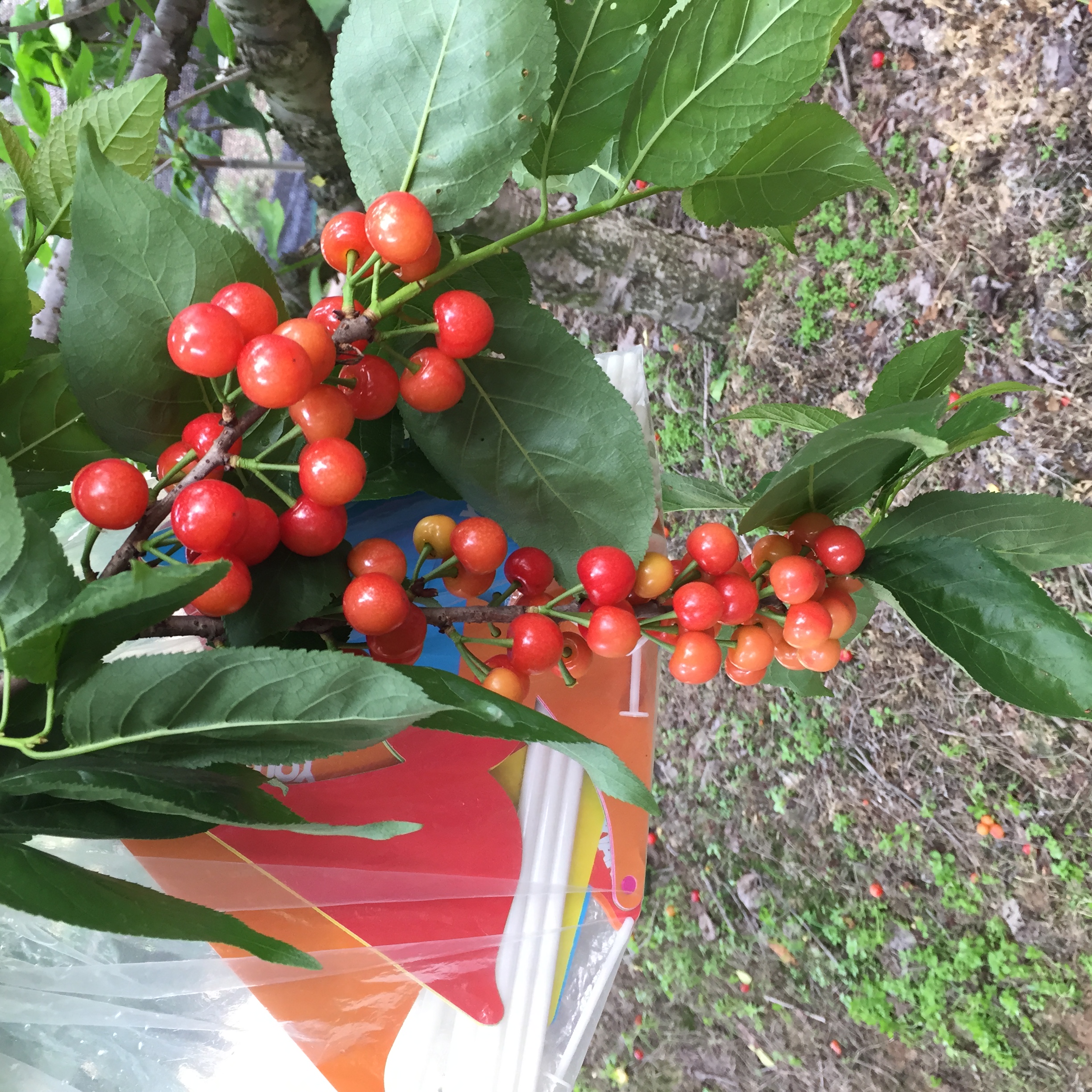 小朋友摘下自己的帽子张了一帽子留给我们俩领队吃。还有热心的大轩,跑遍园子大叫:“导游阿姨你在哪,给你吃樱桃”,感动死了!