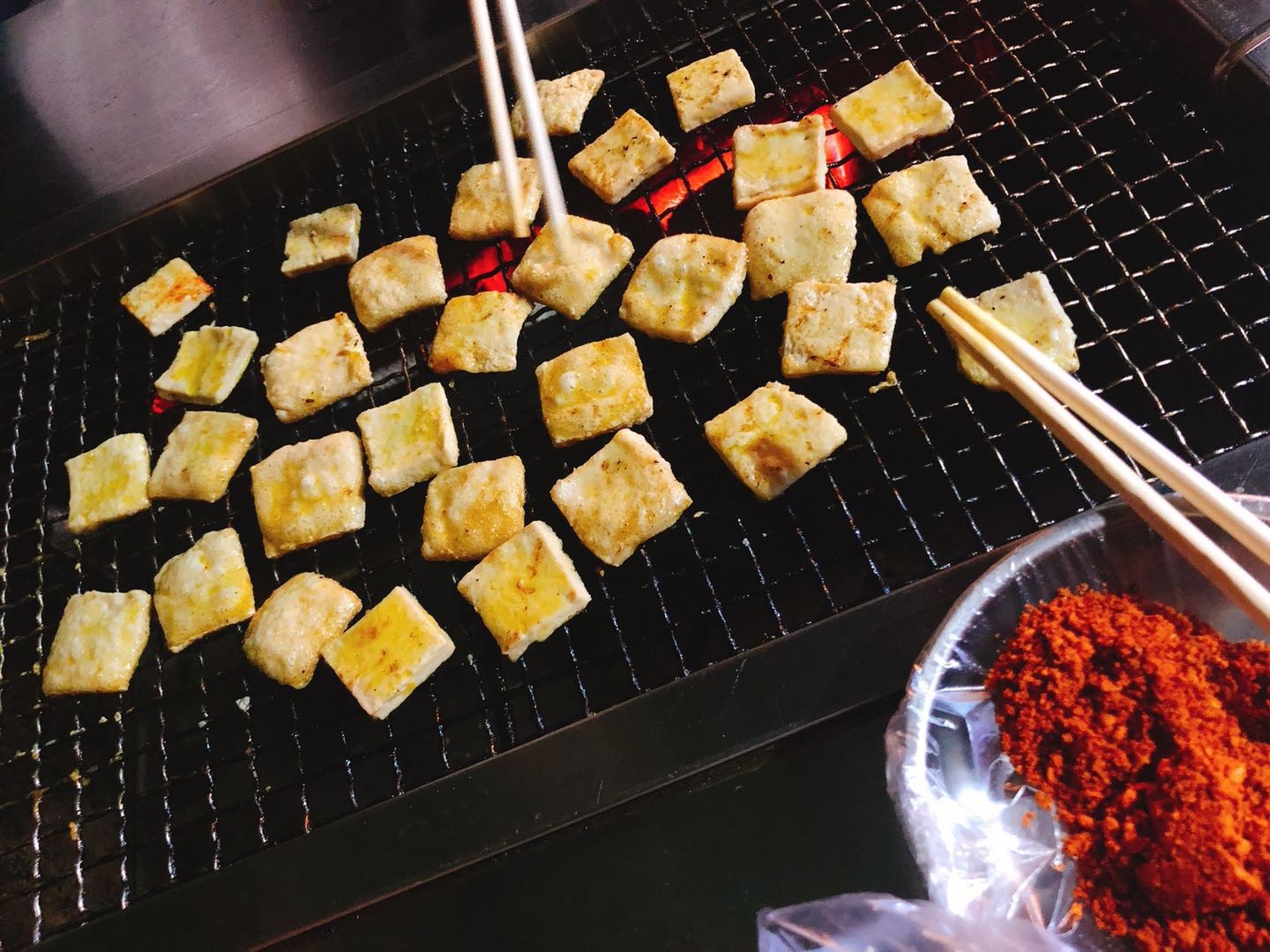 手撕豆腐贵阳街头经常可以看到这种烤豆腐的小吃摊,每块豆腐都是棋子大小的四方形,在炭火上烤到两面金黄,吃的时候直接蘸着干辣椒面,香辣可口,一口气就可以吃几十块。