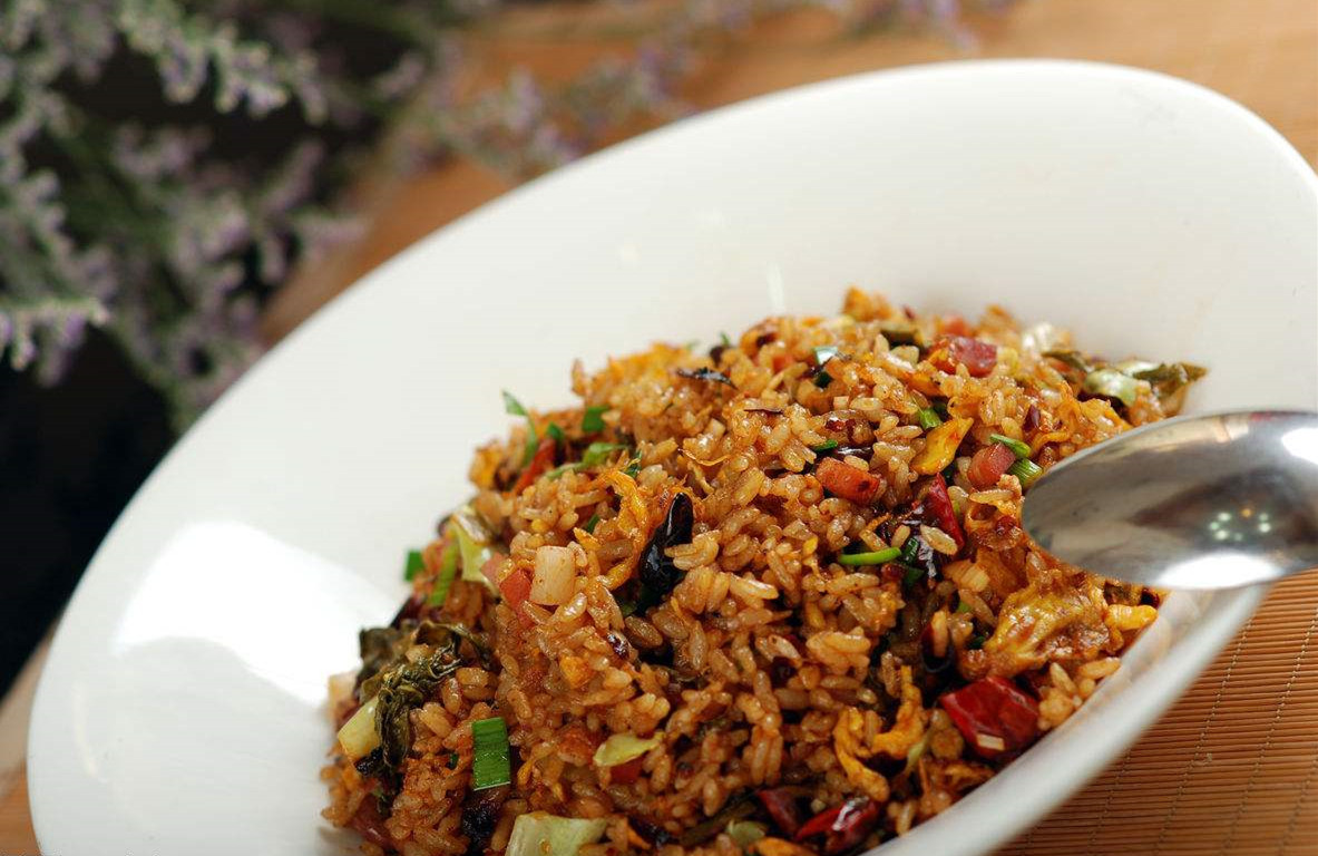 怪噜饭是贵州独有的、最为普通的一种快餐炒饭,街头巷尾随便那个小吃店、小饭馆、饭店都有卖,客人一来现炒现吃,是学生、上班族 以及外出来不及回家吃午餐或晚餐的人们最喜欢而又经济实惠的美食。