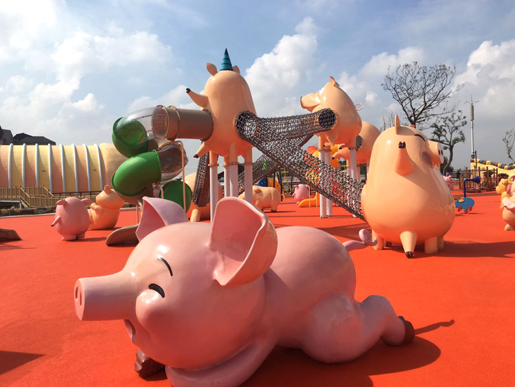 你吃过猪肉,却不一定见过猪跑吧,在这里,一群衣着可爱的各色小猪欢快的跑着它们的小步,给小朋友们带来了欢笑。