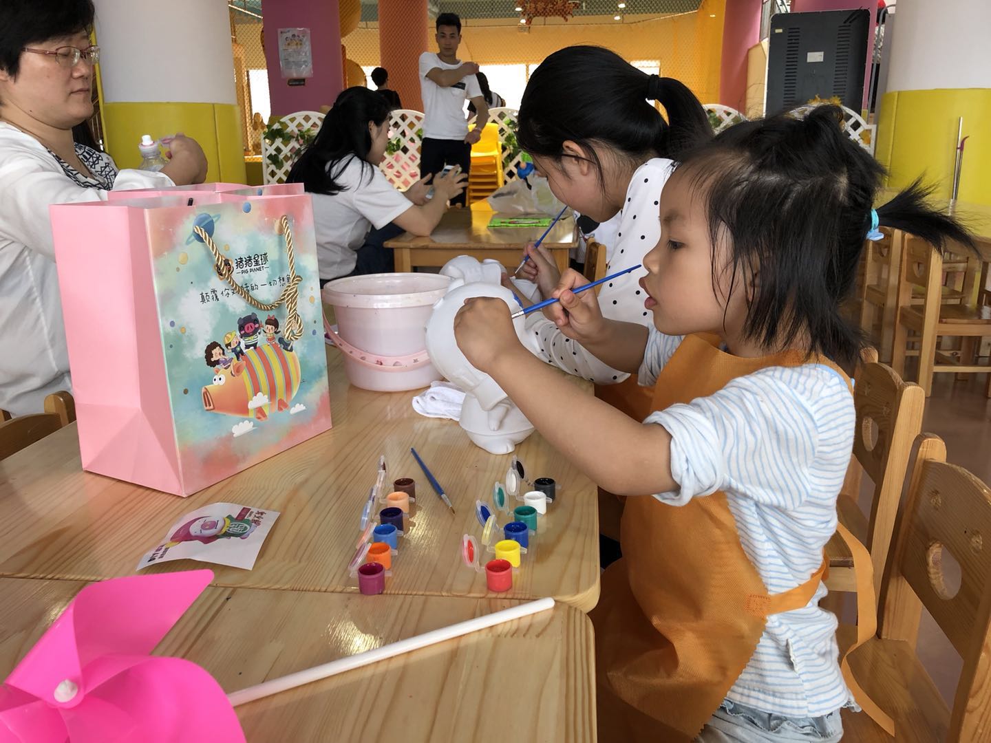 一进门就看见一大片儿童游乐区,一只只憨厚的猪猪笑眯眯的面对着大家。