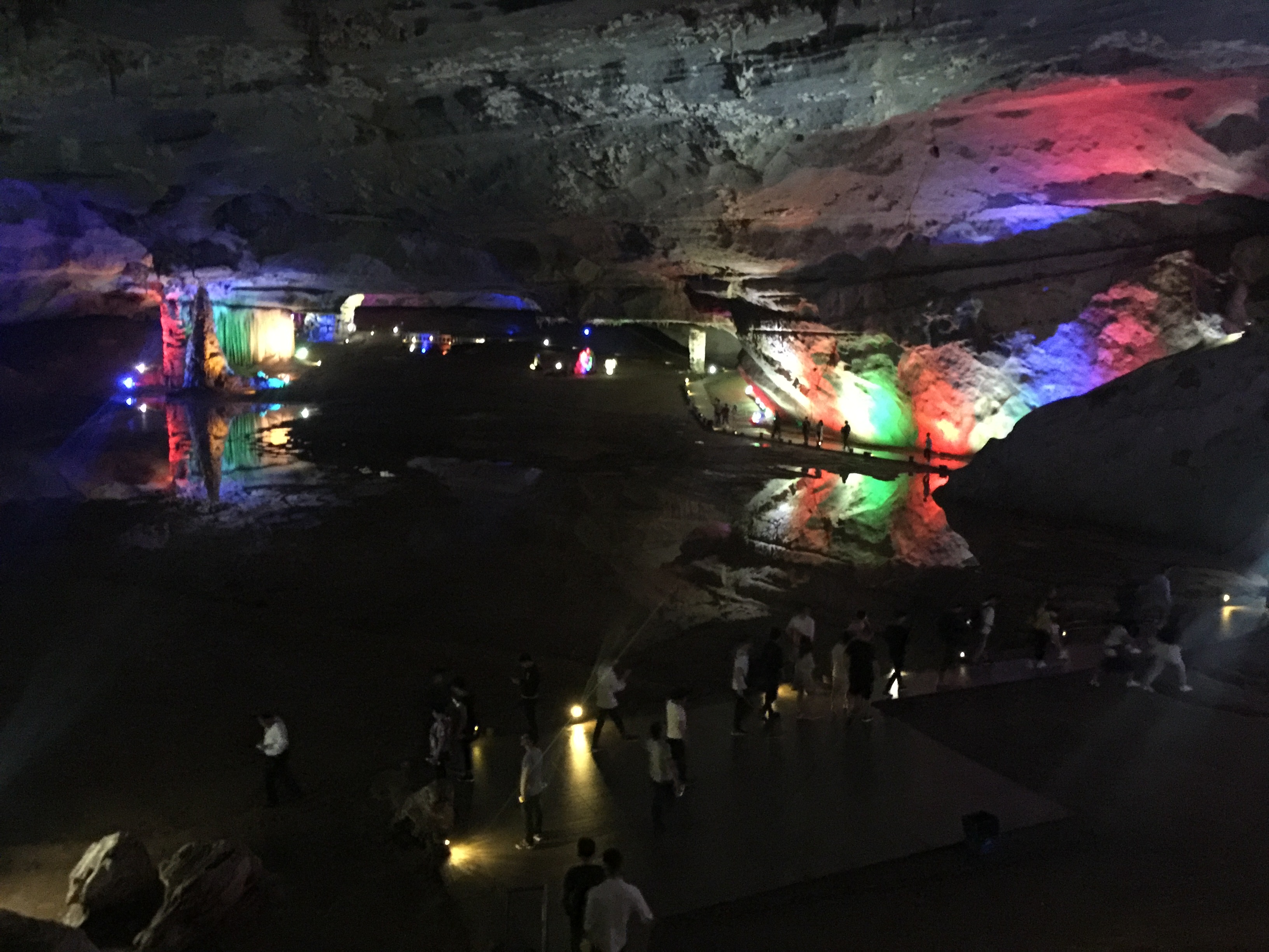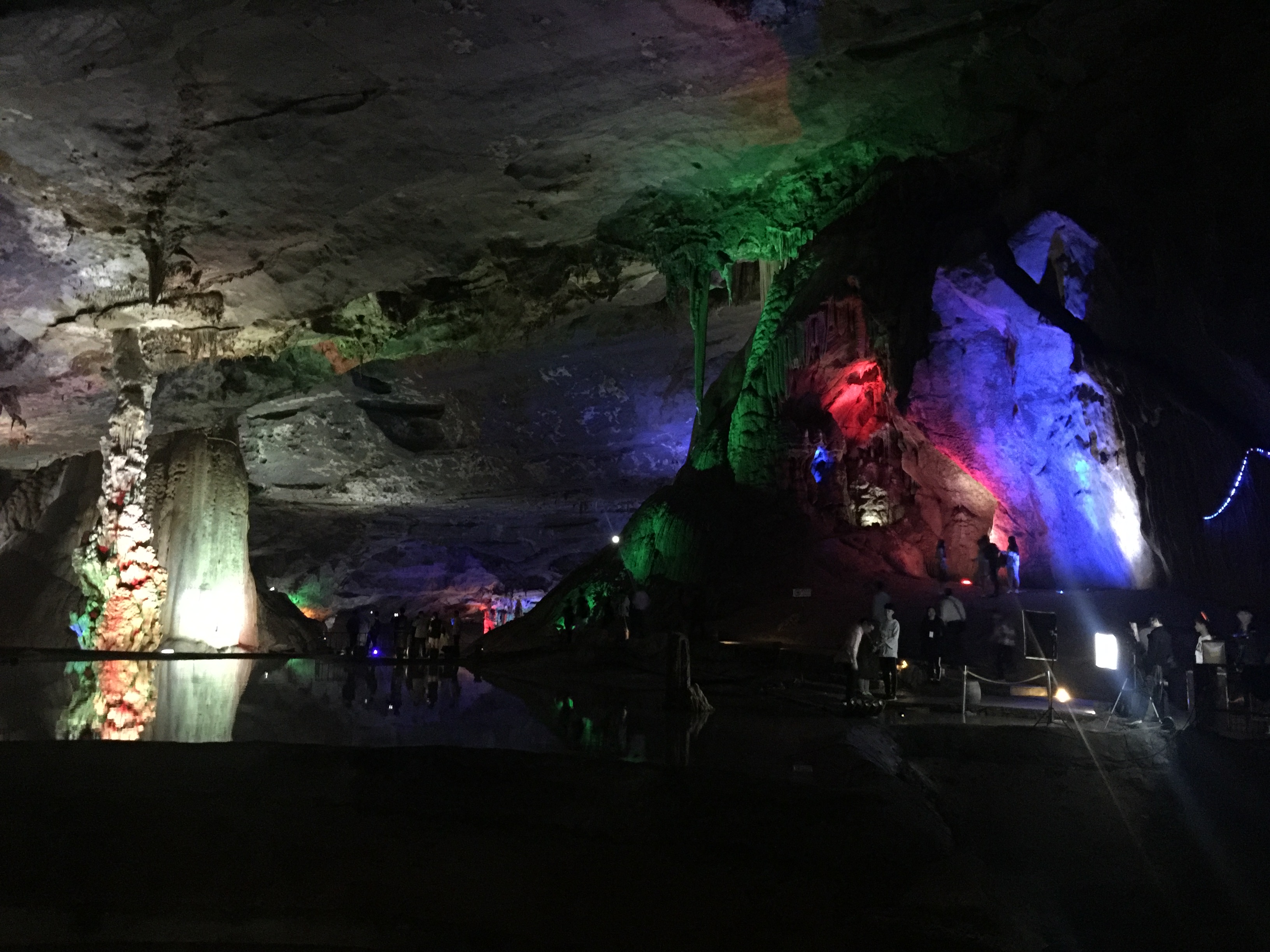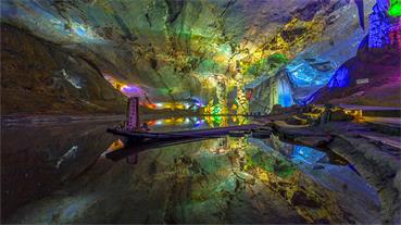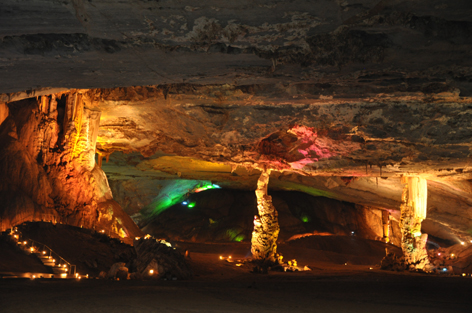 九霄碧云洞 面积2.8万平方米,洞内净空最高处24米,单厅面积之大,数国内罕见,被誉为“亚太第一大洞厅”。洞底平整,可容纳千余人。洞中最大的钟乳石“擎天玉柱”高达20多米,撑起洞顶的一片“蓝天白云”,穹形厅内有神奇绚丽的各种景石23组,有神洲奇花,有黄果树瀑布,有比萨斜塔,有泰国大象,等等,构成奇特的溶洞奇观,令你目不暇接。