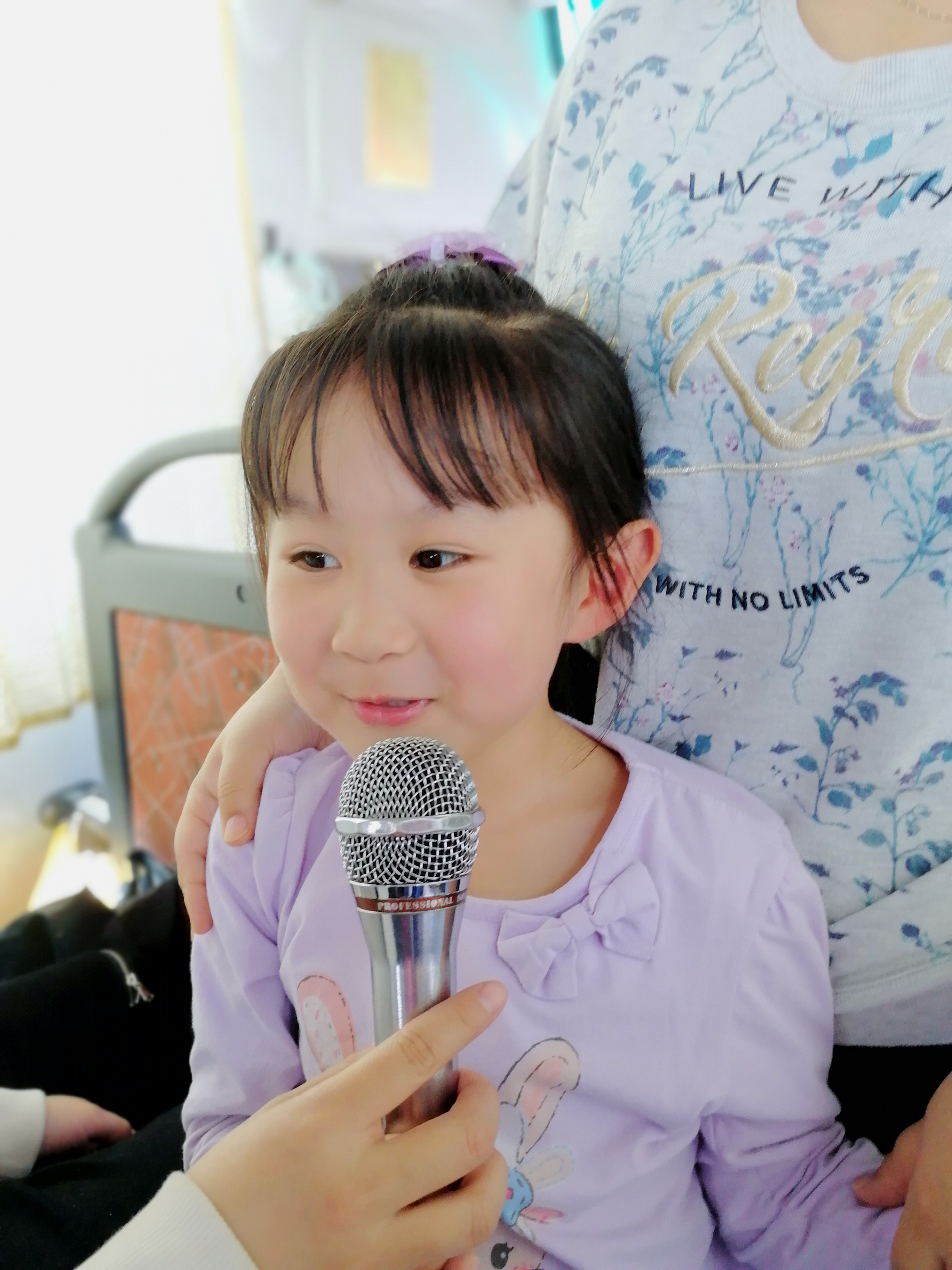 Day 1 七点半大朋友小朋友,一起出发啦,让我们来嗨皮吧go ..go ..go 看这一对姐弟好有爱哦,弟弟要与姐姐一起唱歌呢,还有小朋友表演才艺呢,不得不说现在的小朋友都是多才多艺,都觉得自己自愧不如啊,回想自己的童年是泥巴的呢。看着小朋友还睡眼朦胧,不要声讨我,可乐的拍照技术还有待提高。