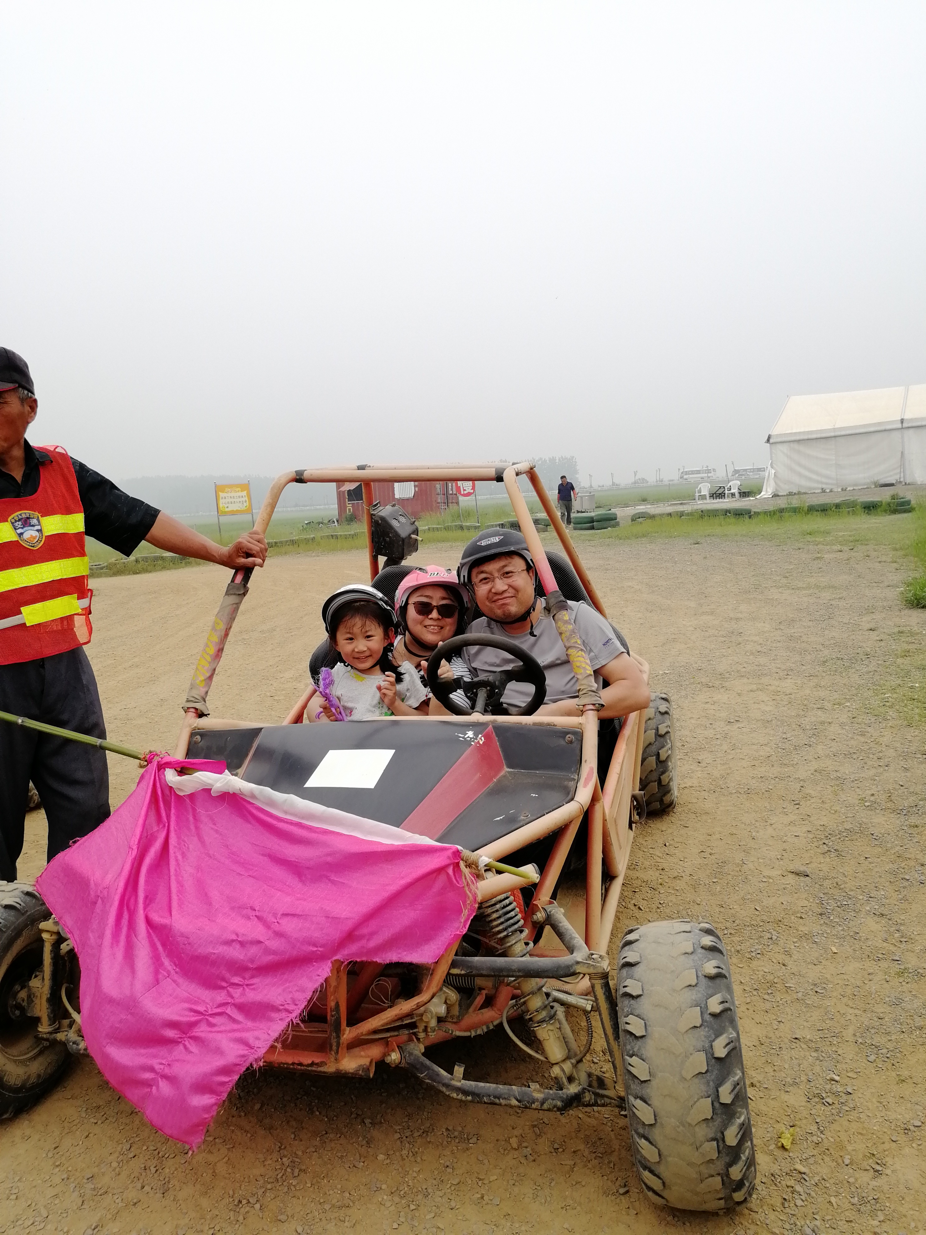 开始玩越野车了,笑的很灿烂很幸福的一家