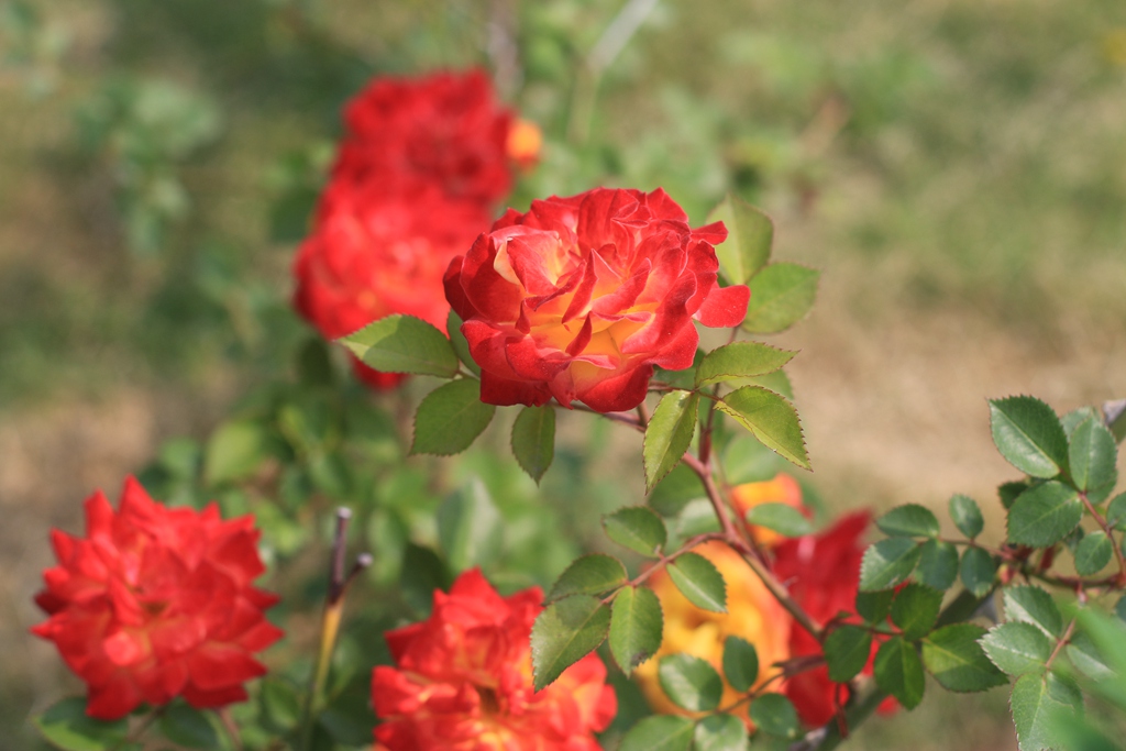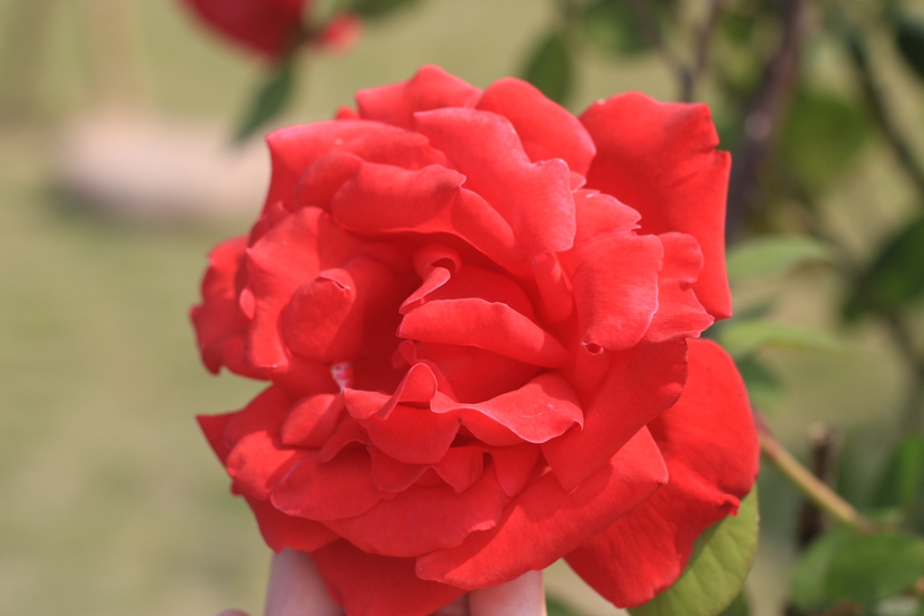 咔擦,咔擦!哇!这朵月季花比我的手还要大呢!