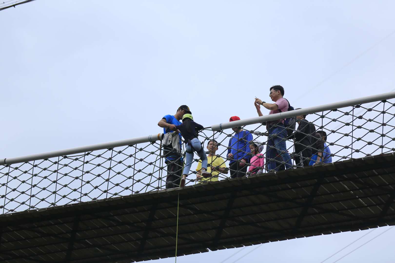 小朋友们在专业教练的指导下,从桥高20米的吊桥上,直接降到溪中的河滩上,看我们多勇敢~~~