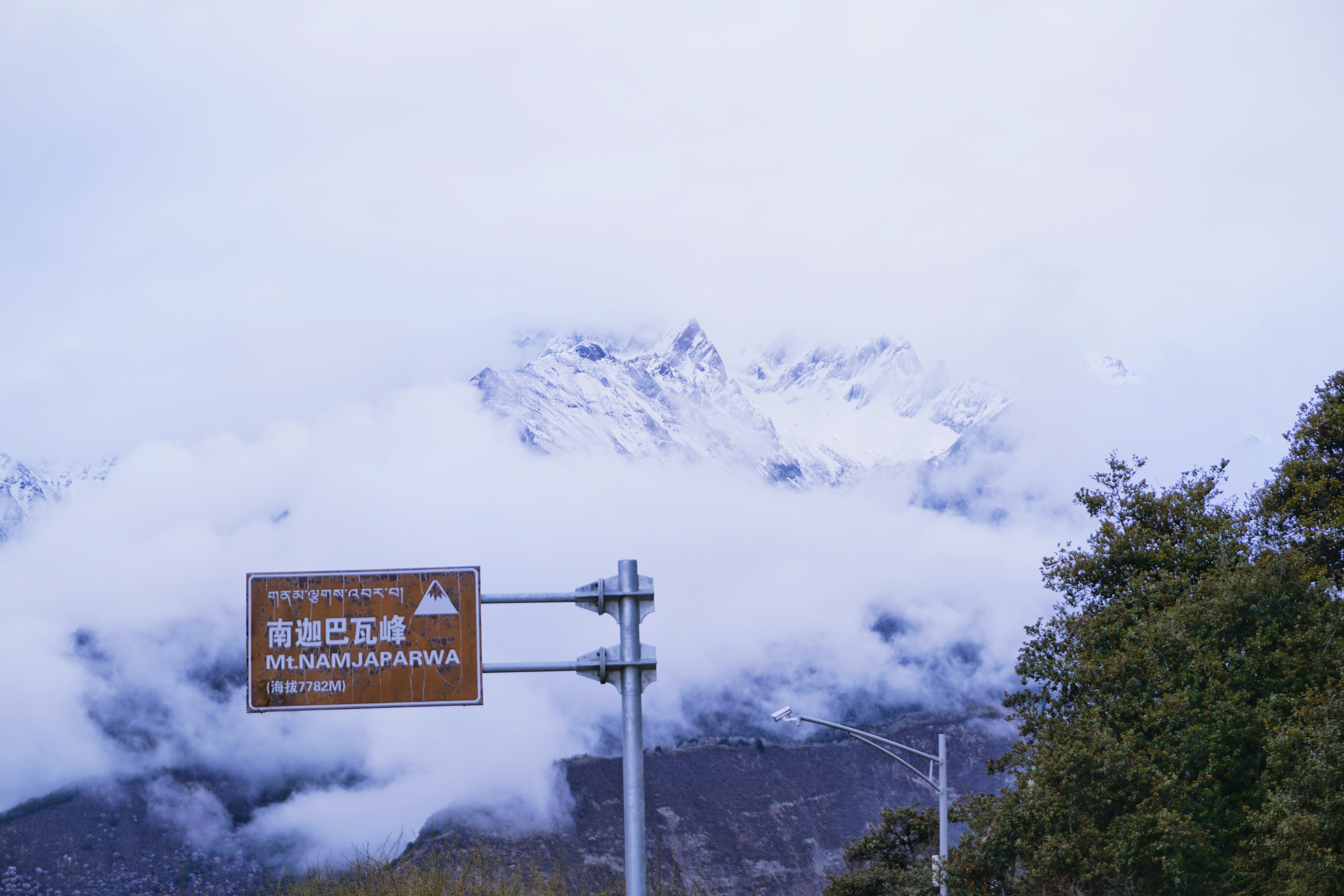还好运气不是太差,我们在等待景交车的时候雨慢慢小了,等我们上车的时候天晴了!!!人品就是这么好,难的一见的南伽巴瓦峰也露了出来。