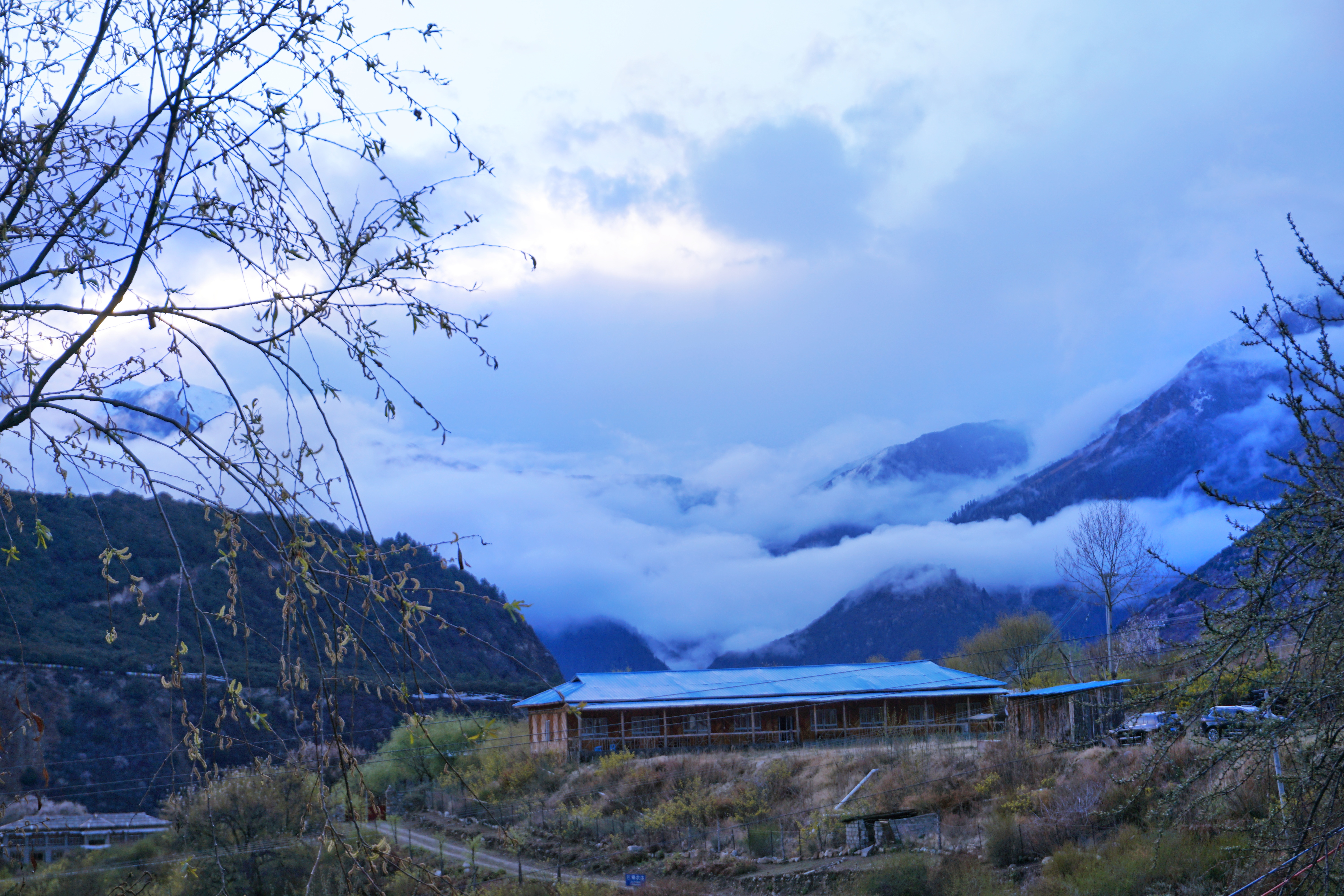 最后一个停靠点其实是一个写着南迦巴瓦的石碑,很多人要去合照,可我好像对傍边的景色更感兴趣,尤其是雨后的天空,云格外的低,配上他们这边的建筑,感觉是另一个世界。