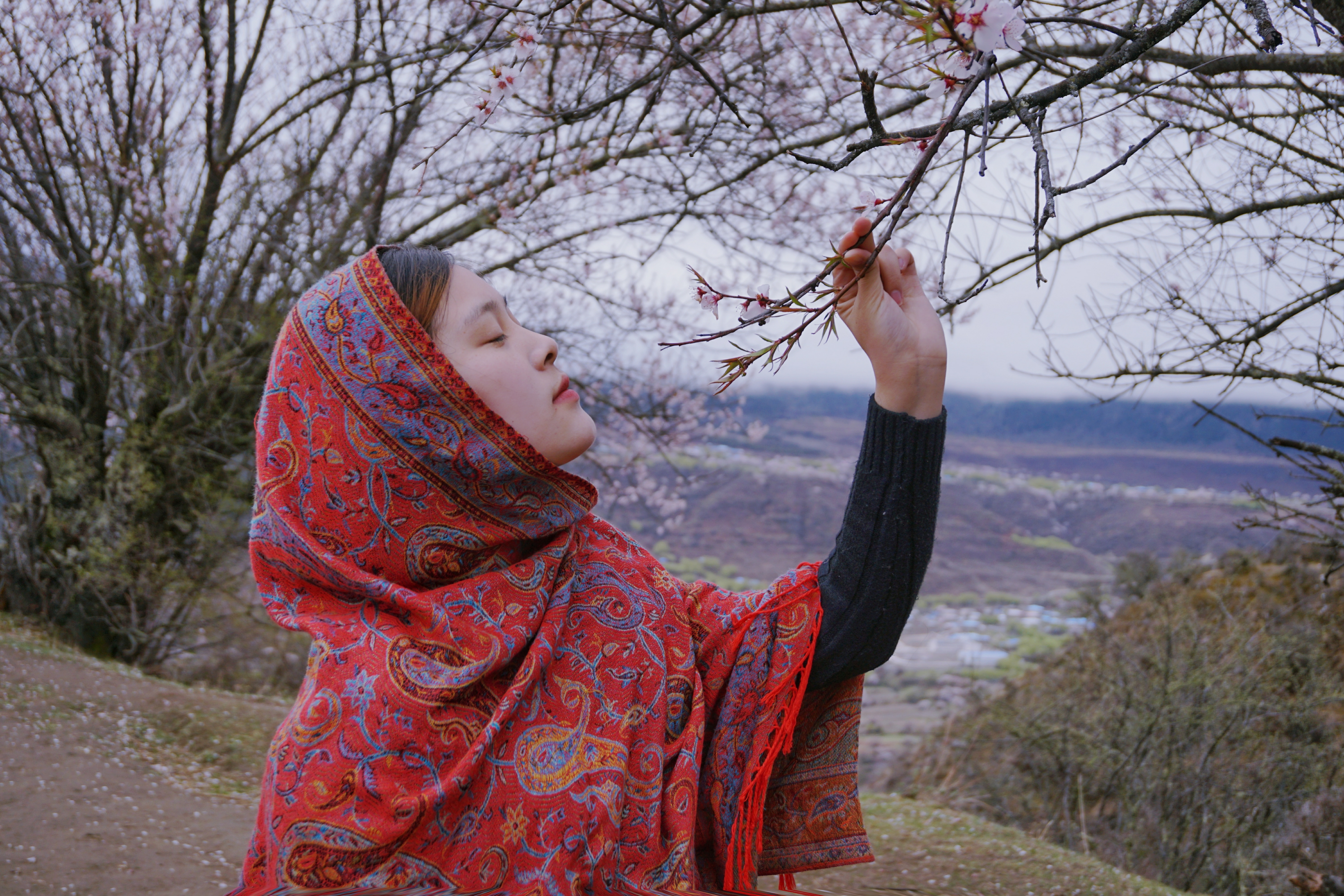 小雪,是我们团里最小的啦。95年的小姑娘,眼睛水灵灵的,皮肤也是超好的。据说刚从土豪国回来休假呢!这款披肩就是从那边带回来的,充满了异域风情,在林芝的桃花下拍照竟然没有违和感,超喜欢的!