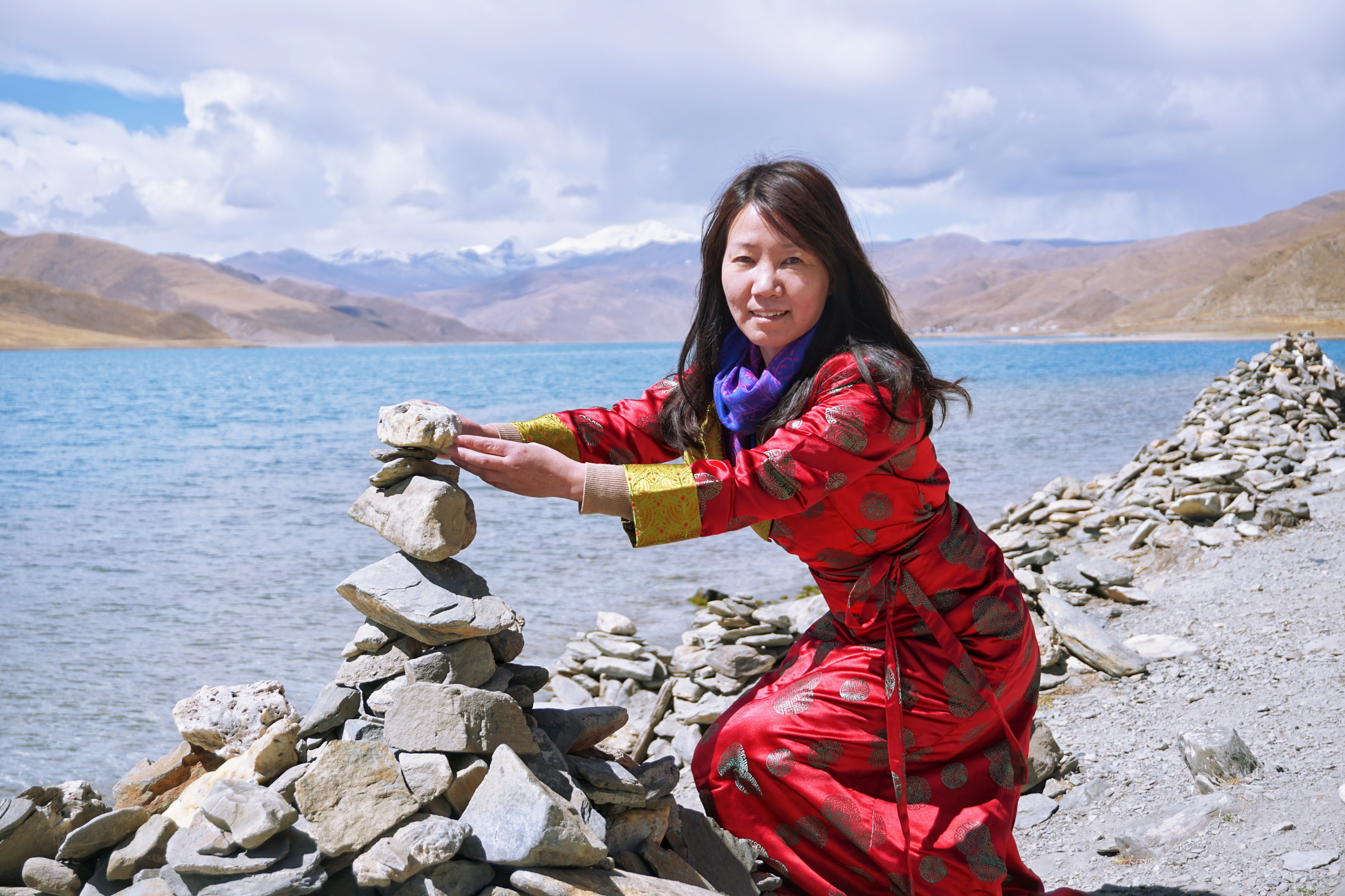 藏服在加上旁边大叔那里借的发饰,每个都是美丽的卓玛!