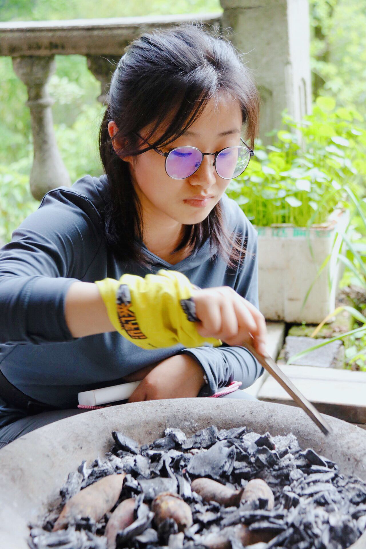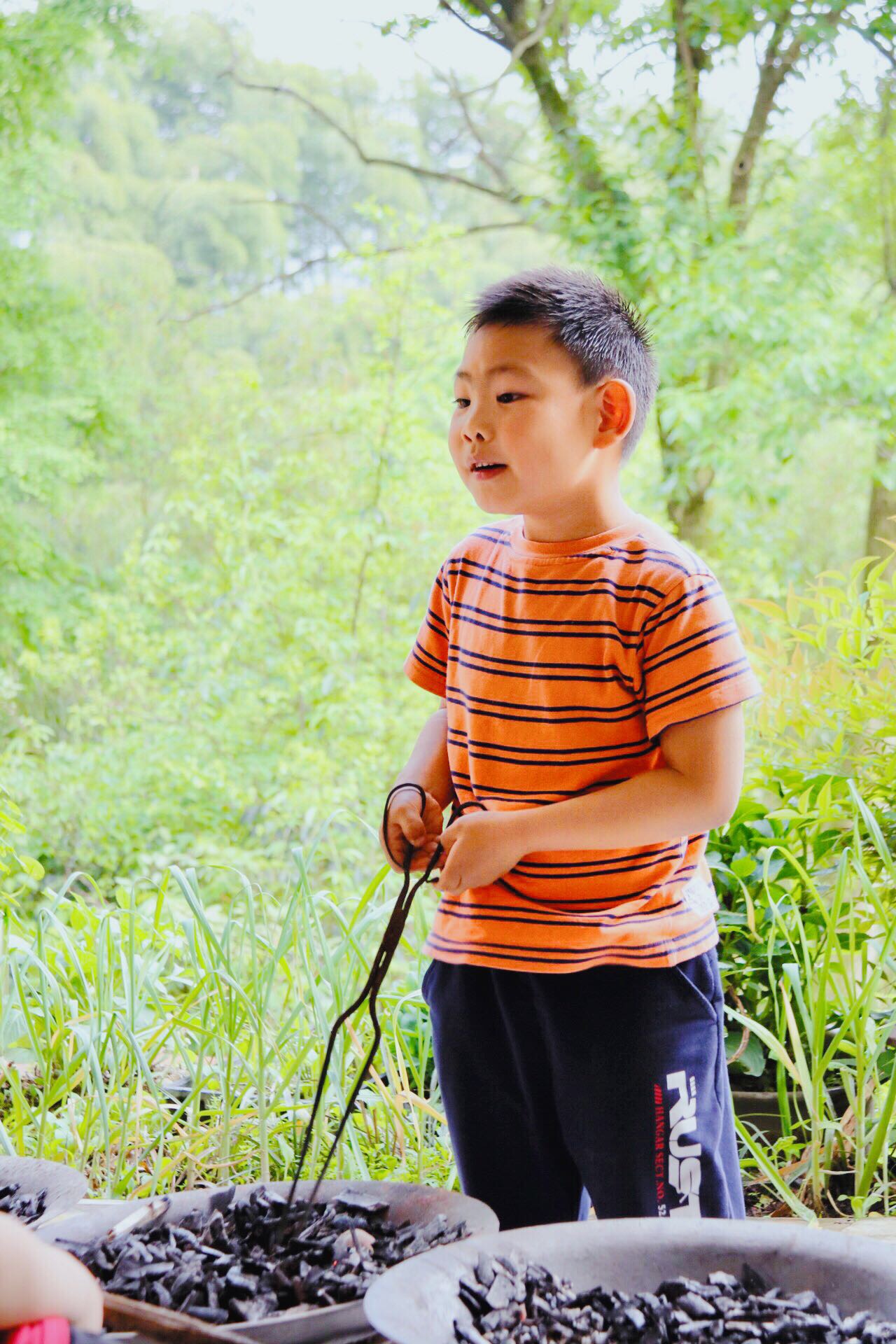 小家伙烤红薯的样子很认真呢,眼神里满满的都是期待。