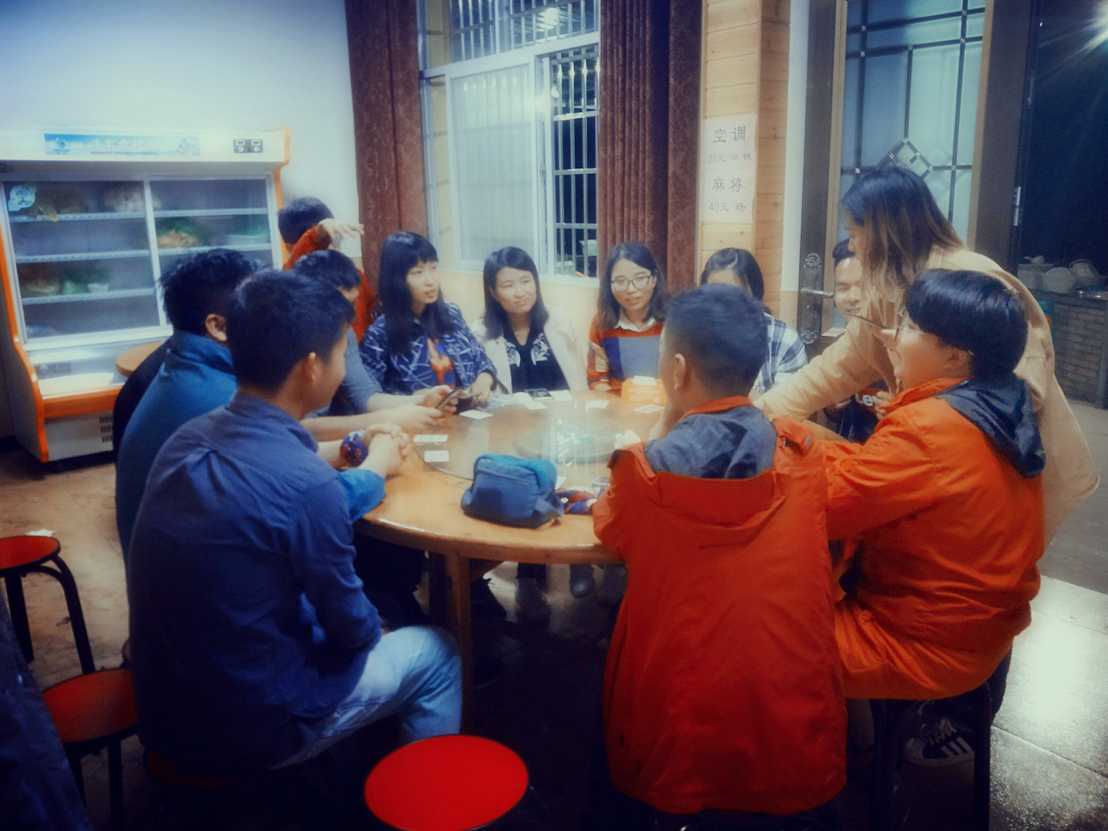 走完独山古寨,我们就要去换成景交车上山了。上山的时候你可以体验一下什么叫尖叫,以及司机师傅的高超的开车技术,入住后你可以自己自由的逛,晚上在组局狼人杀!来两张朋友拍的狼人杀战场。