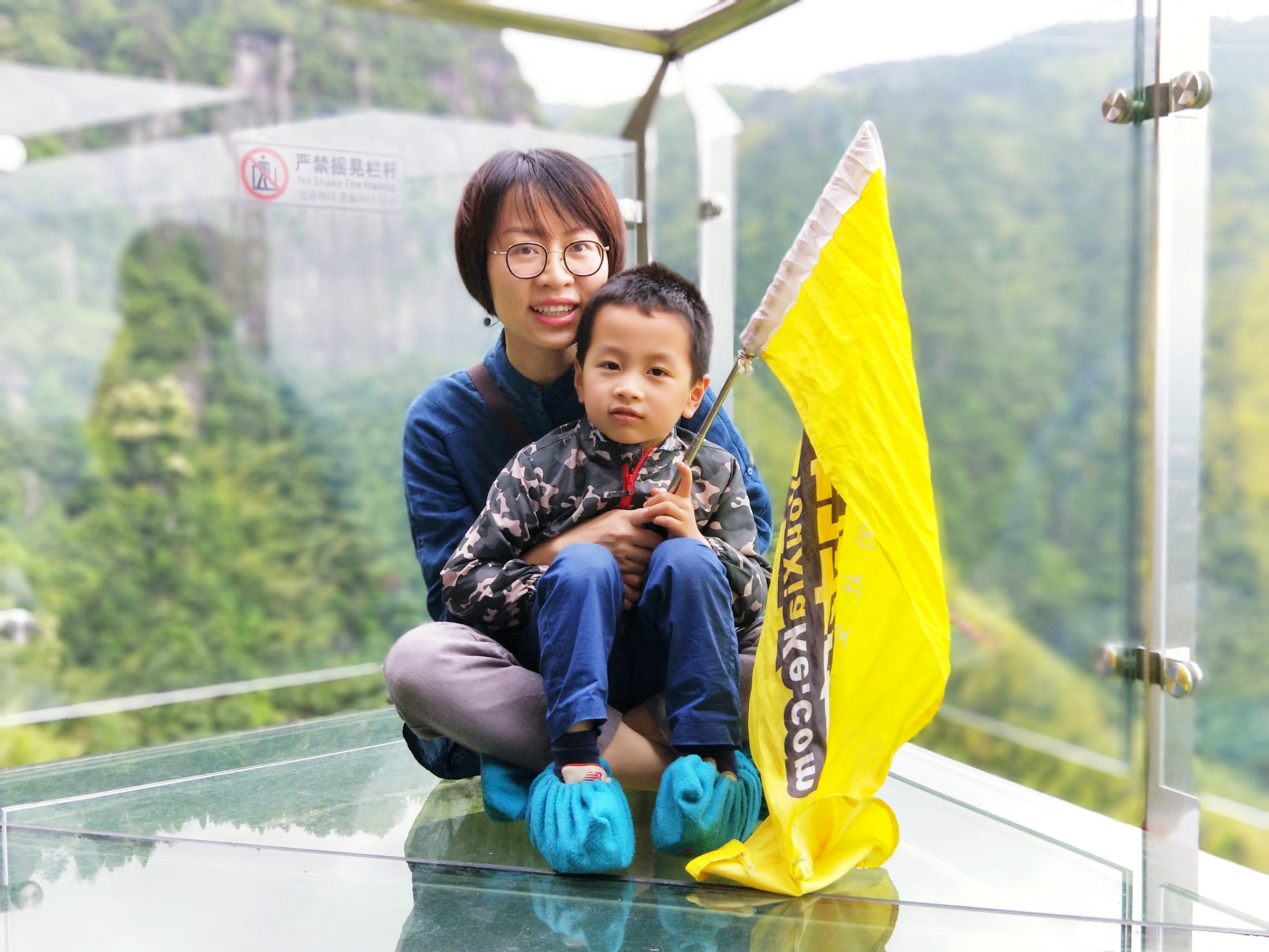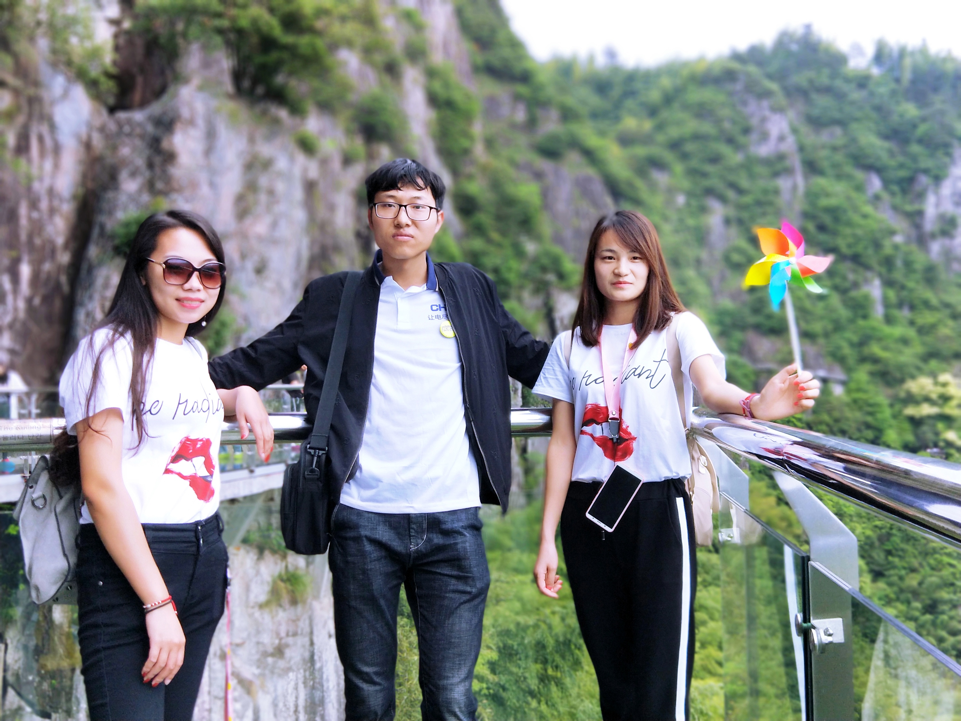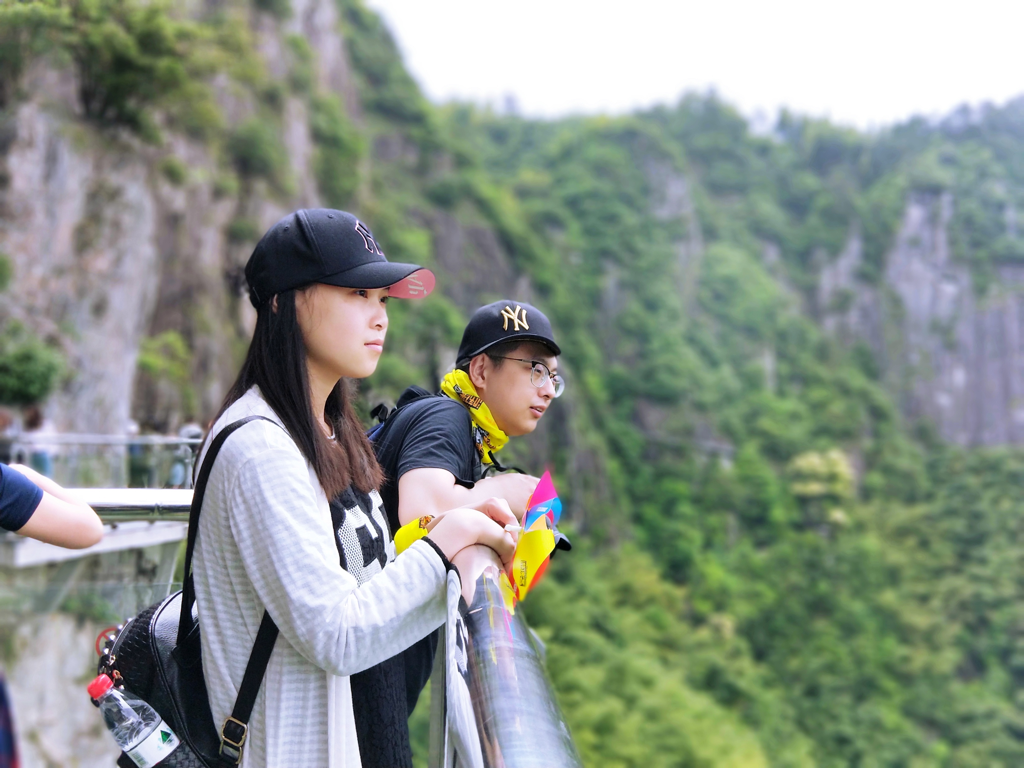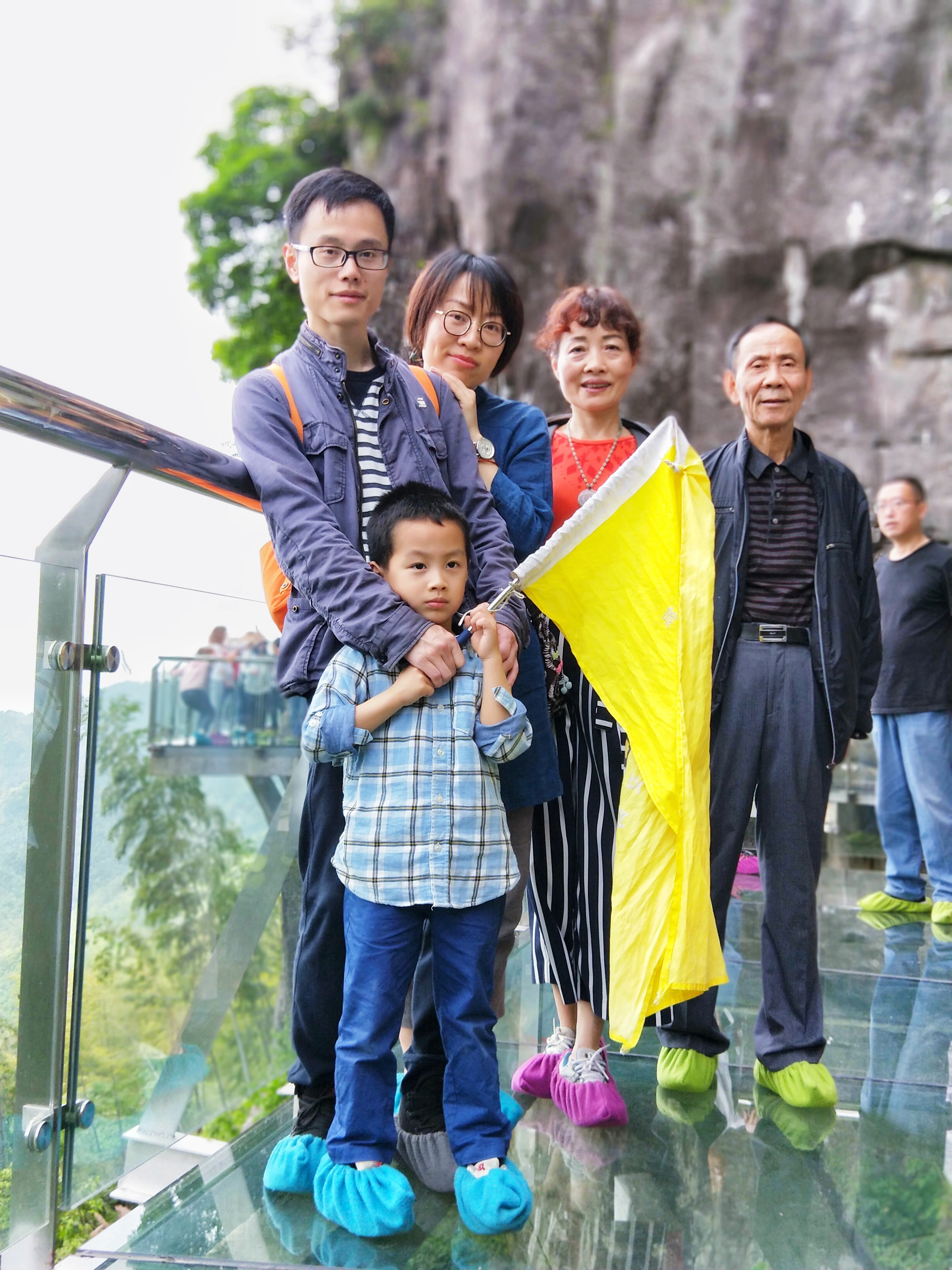 下坡时陡峭的阶梯,让人不禁有点腿软,一定要小心、小心、再小心。玻璃栈道,让恐高的你不敢移动,哈哈哈……上几张大家恐高的照片。