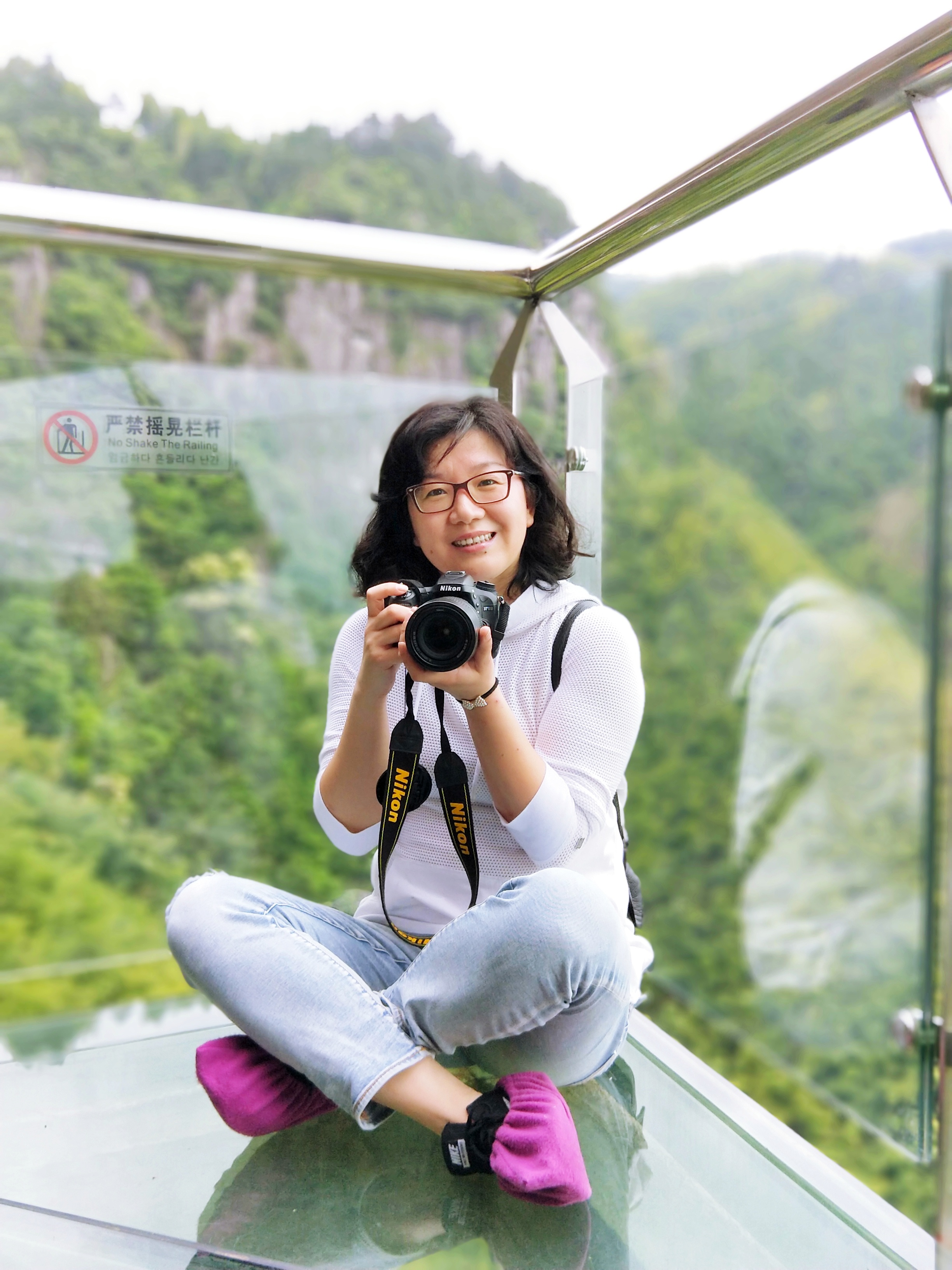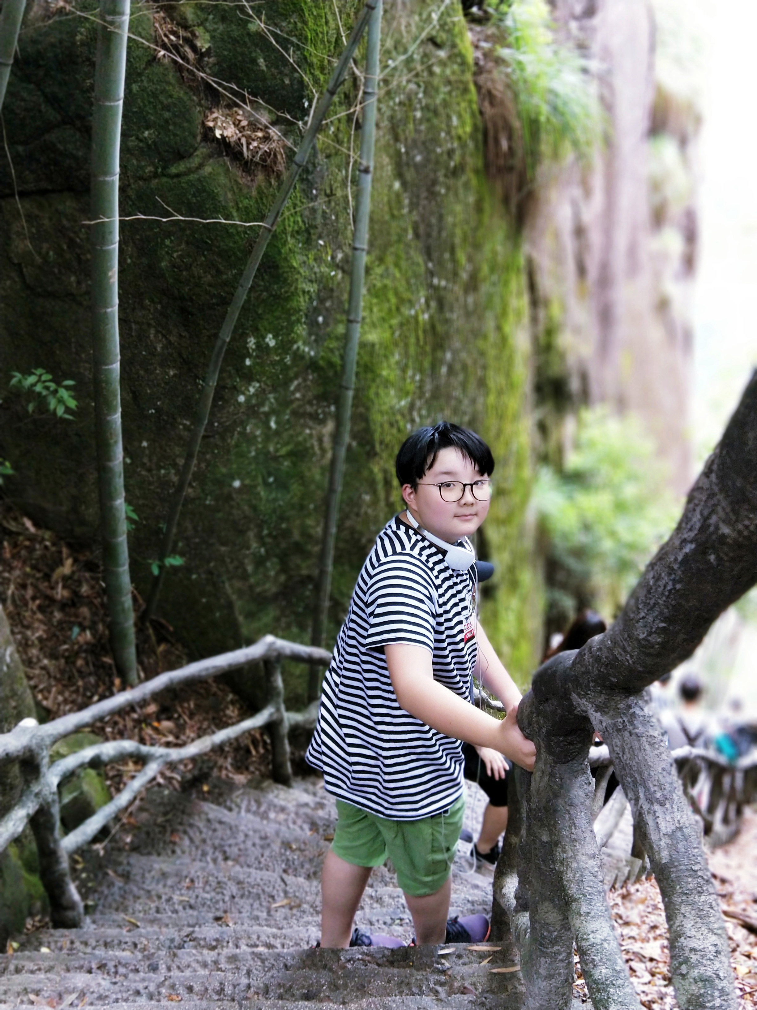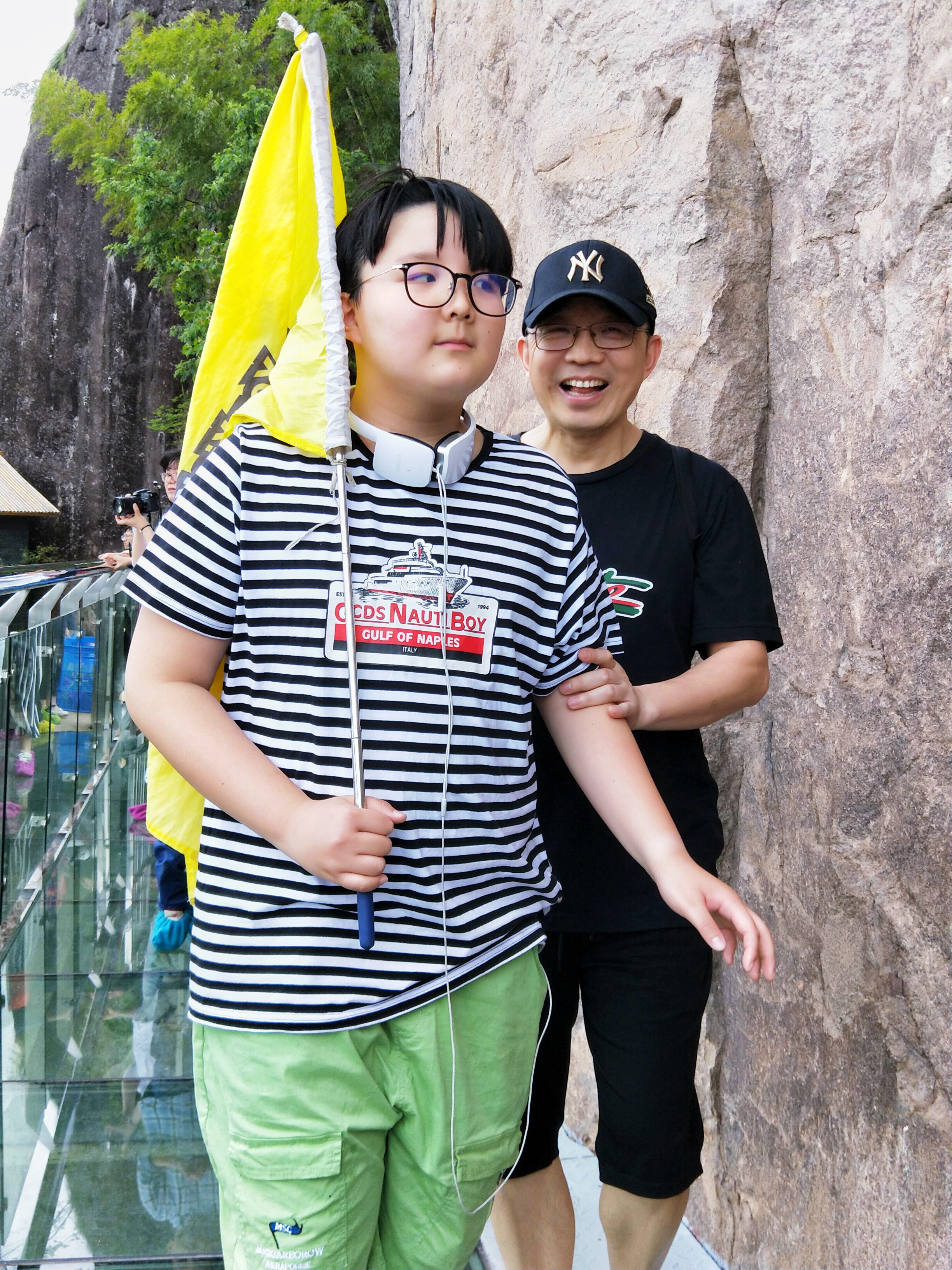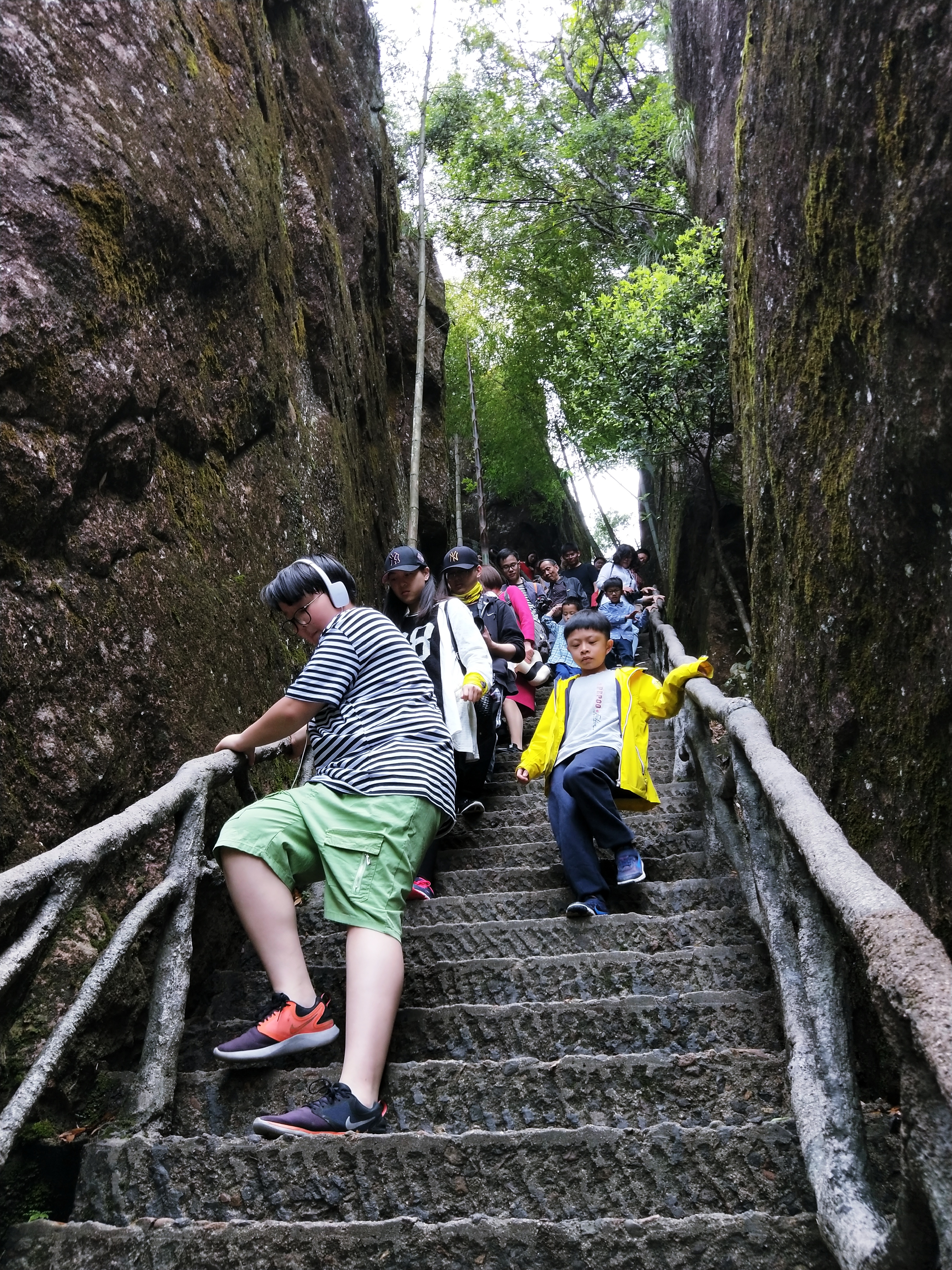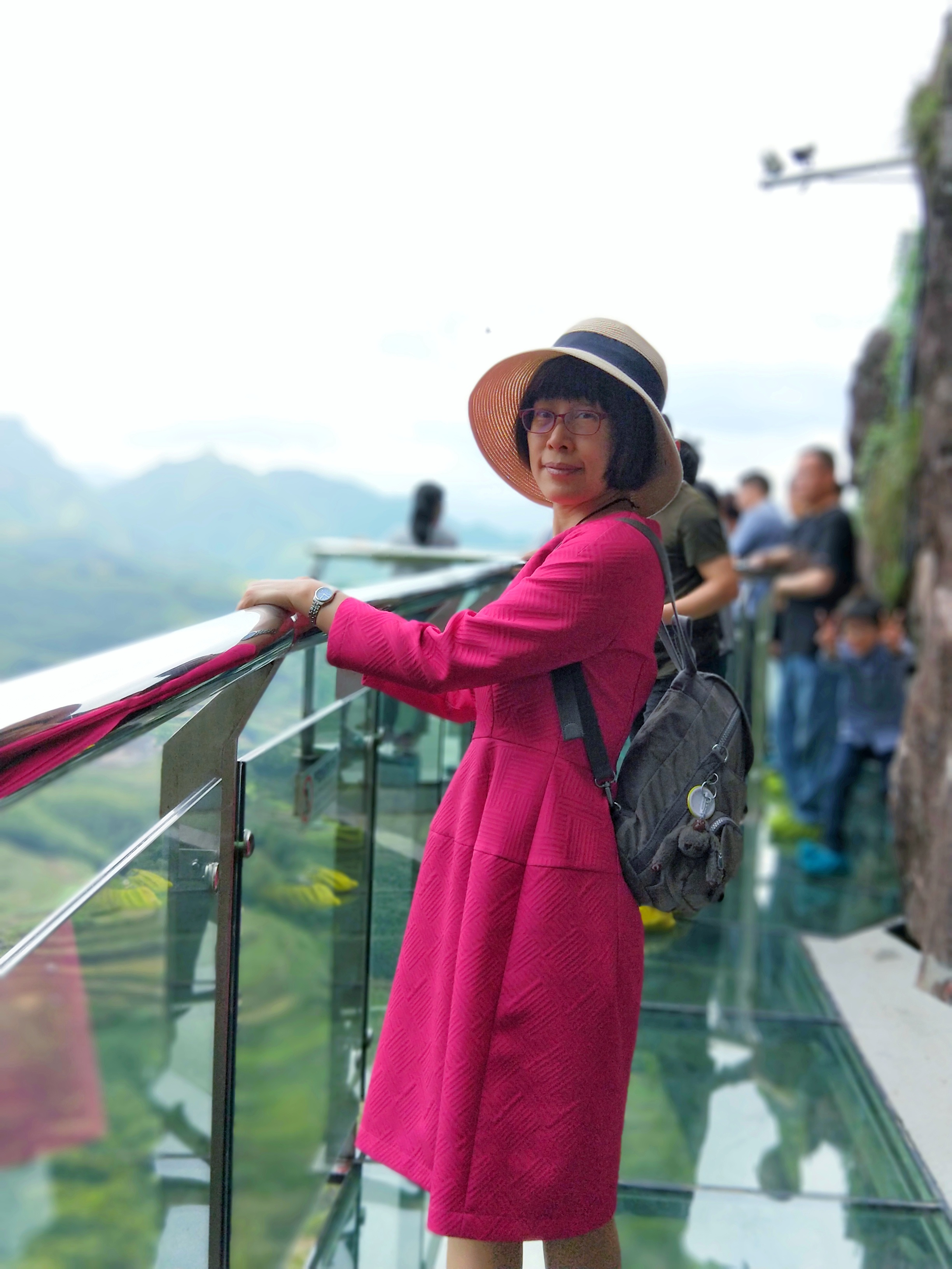 下坡时陡峭的阶梯,让人不禁有点腿软,一定要小心、小心、再小心。玻璃栈道,让恐高的你不敢移动,哈哈哈……上几张大家恐高的照片。