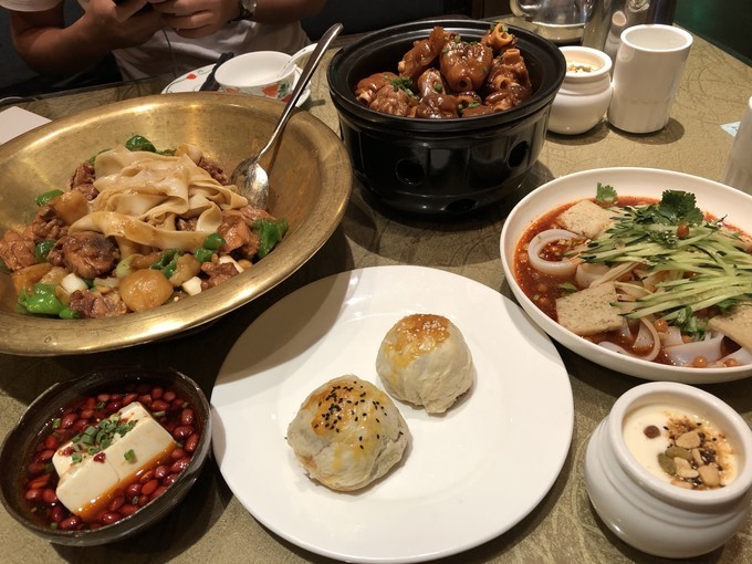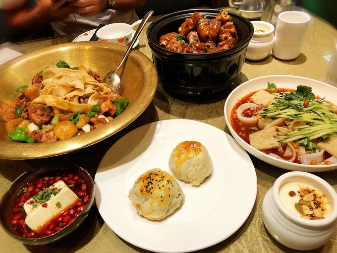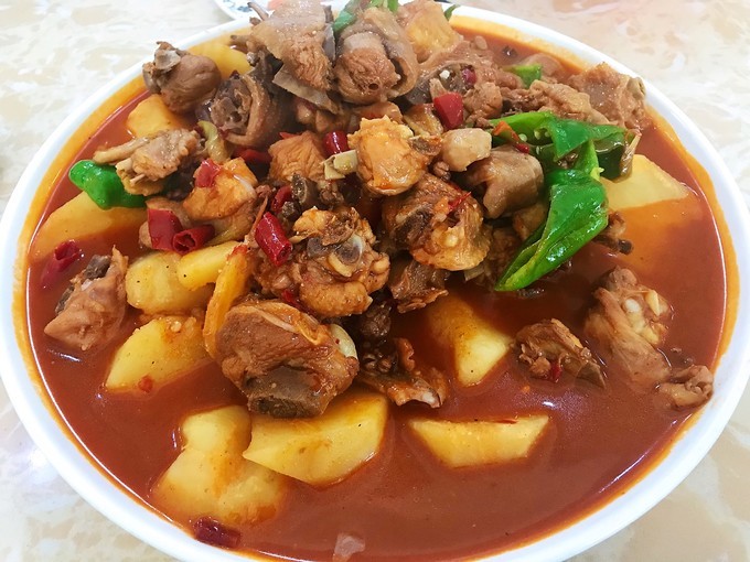 逛完博物馆开始找导游和司机都推荐的餐厅小尕(gǎ)子!食物非常有特色,点了几道人气很高的菜:新疆大盘鸡、胡辣羊蹄、尕子豆腐碗、酸奶、烤包子……菜的味道很给力,呃、羊蹄略膻,伙伴吃的倒是很开心,也算是对得起它的名声!