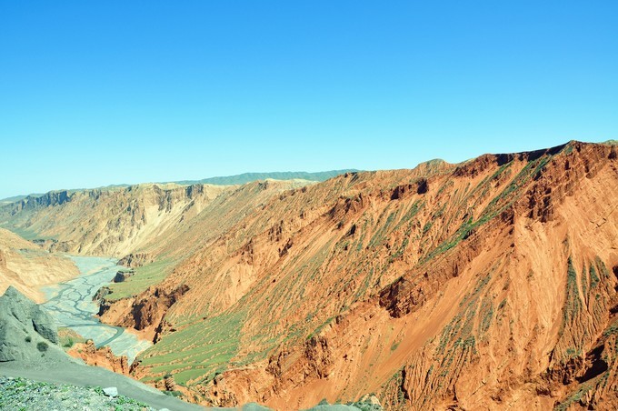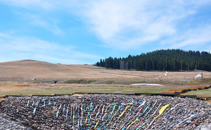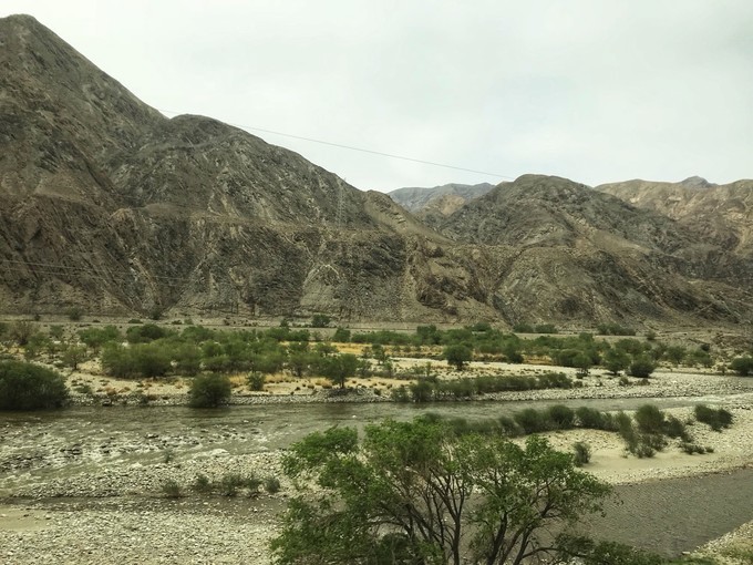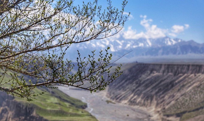 车行到历时八年建成果子沟大桥,果子沟大桥凌越在一篇峡谷和沟壑中,从远处看非常之壮观,仿若一条神来之路。别克给我们讲起,前年他出团偶遇到泥石流的经历,牛啊羊啊哀嚎着被从山上冲入如大巴车高的水流里,游客们不得不徒手登山避险,路旁布满伤痕的山体便是频发自然灾害的见证者。