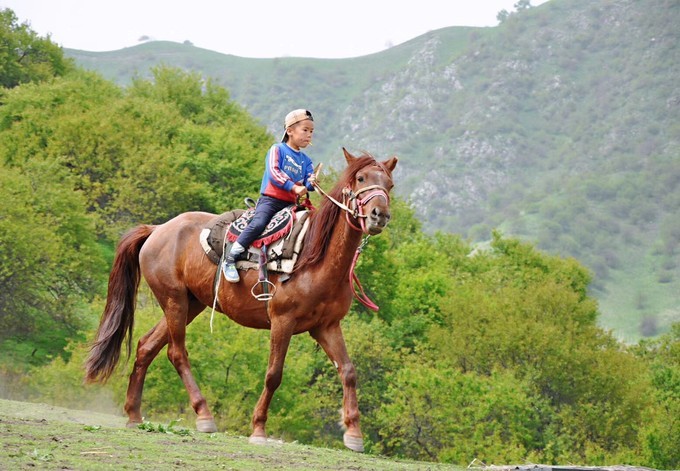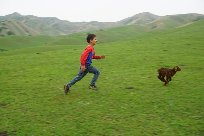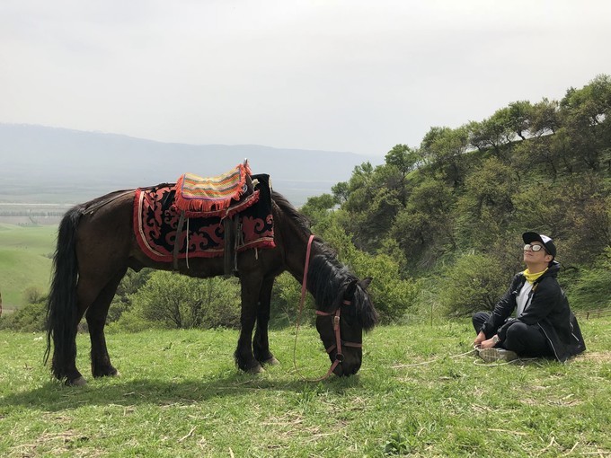 杏花已落,景区已经关闭了!景区关闭的第一天,我们踩着铁丝网冲进了这个丘陵草场,牧民们喜出望外地拉扯我们骑马上山,帮大家抓小羊羔,小牛犊和小朋友玩。一个哈萨克五岁小朋友被老爸拿出来挣学费,又要骑马又要凹造型,还好最后收获颇丰,还有父母忙于山坡吃草的那些可怜的小动物被我们当成了亲密接触式动物园,看来杏花什么的没了大家也不在乎,还是动物世界最重要!