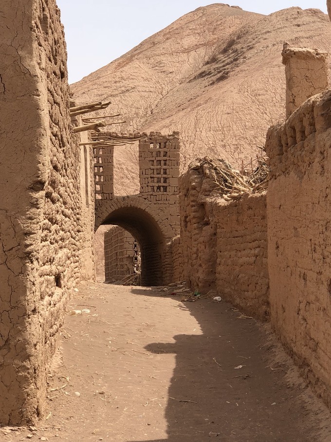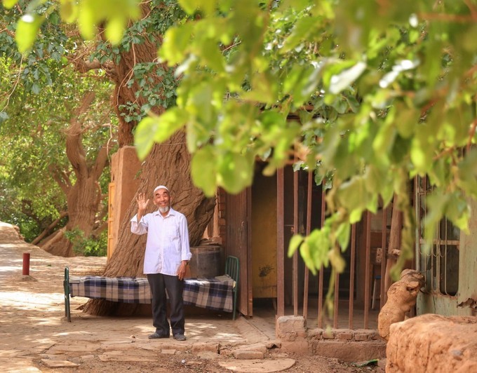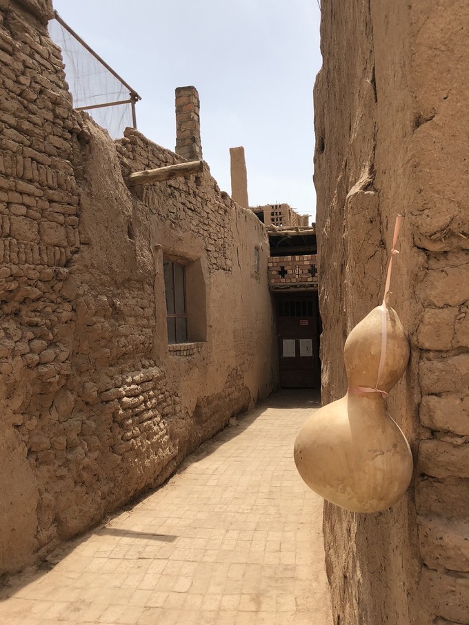 随后来到吐峪沟古村,也算是个旅游景点但鲜有游客前来。跟江浙动辄商业繁华的古镇不同,这个古村只剩下零星的老人和孩子留守,平静中也透露着失落。一个大嗓门的老大爷令人印象深刻,看起来很凶,我们一进去就开始大喊,还以为是要赶我们走,在别克的解说下,才知道人家是想招待我们进屋玩,感动,进屋之后大爷给我们看照片,抓葡萄干,甚至要我们每个人吃一个他的午餐饺子,也许确是许久没人说话了吧。