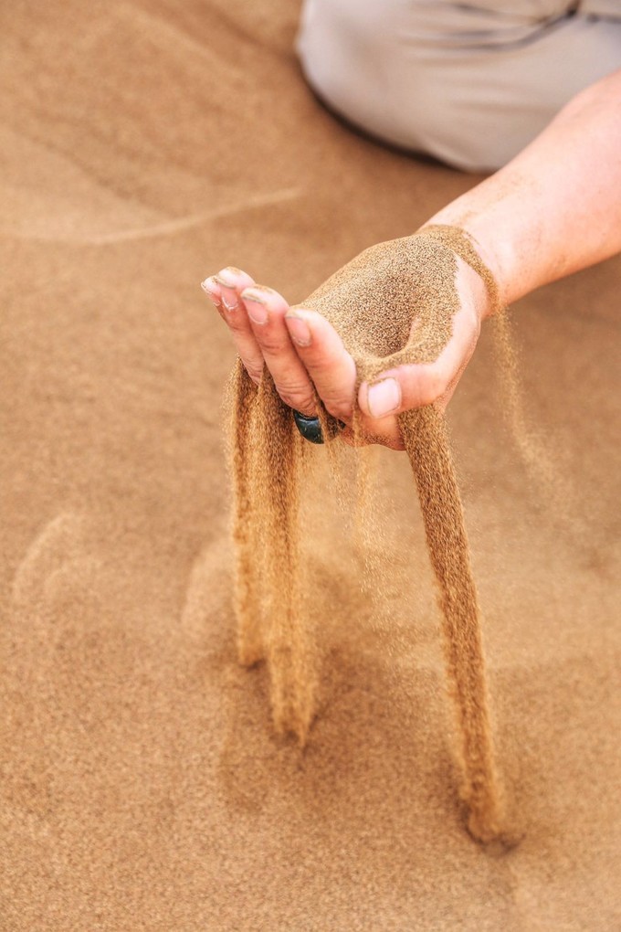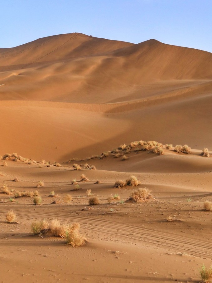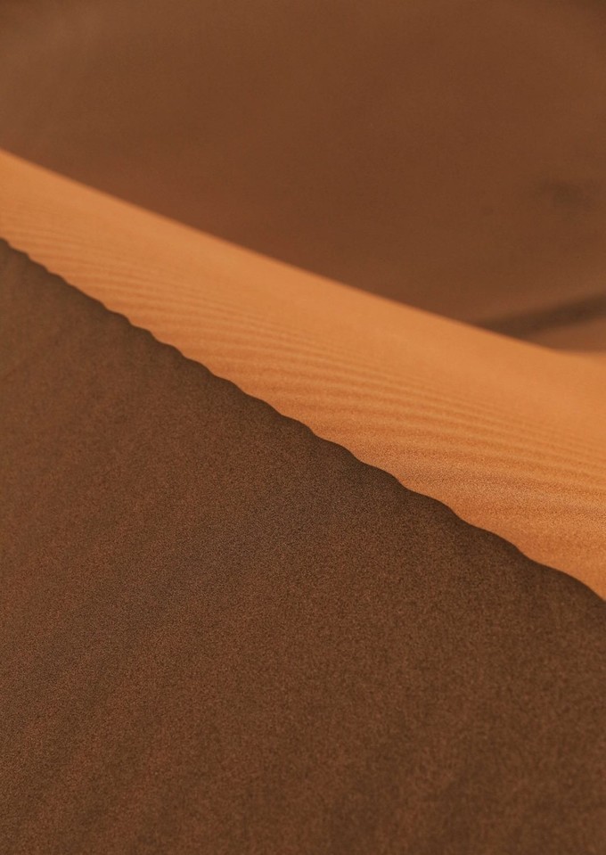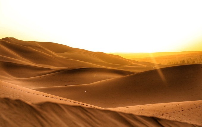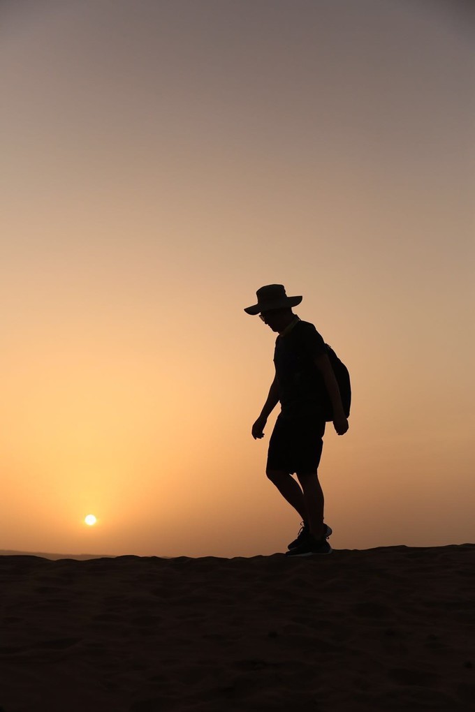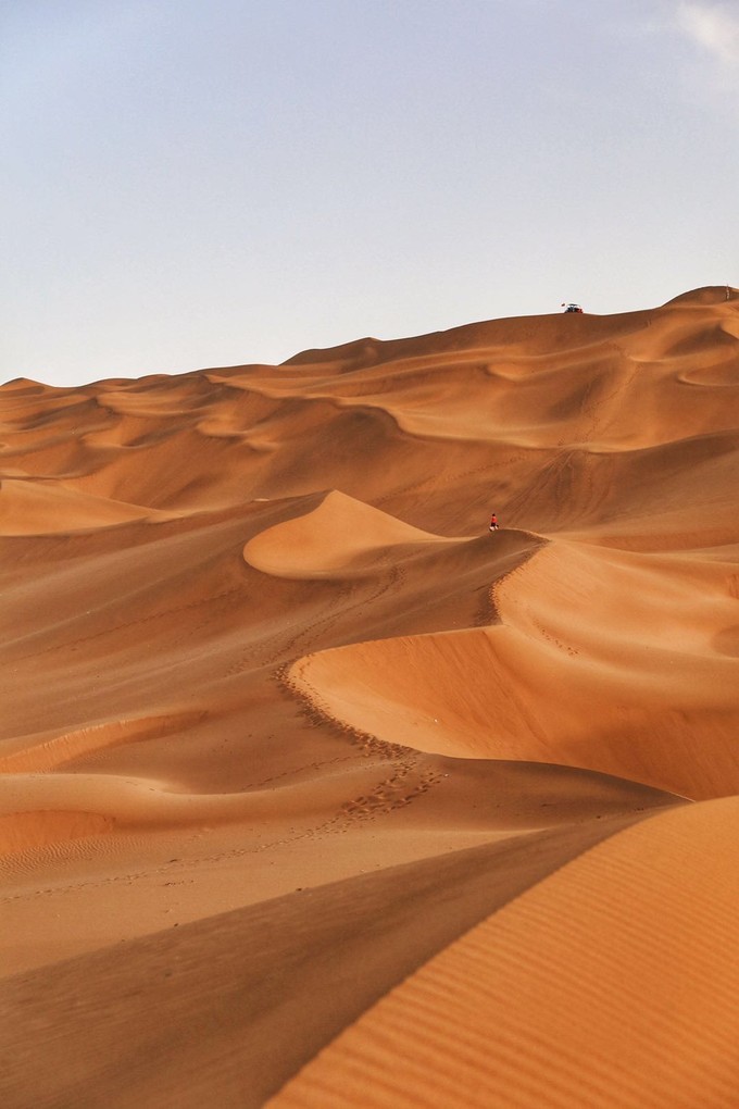 旅行的最后我们来到了被称为“羽状沙漠”的库木塔格,放眼望去全是一片漫黄,让人感觉进入了一个沙子的世界。沙丘连绵起伏,轮廓清晰、层次分明,好不壮观。夕阳西下,沙漠迎来了一天中最美的景致,太阳缓缓从天际一点一点的沉下去,给整个沙漠都笼罩上了一层橘黄色的外衣,让大漠看起来更加的柔和,美得惊心动魄,随手拍一张出来都是大师级作品。