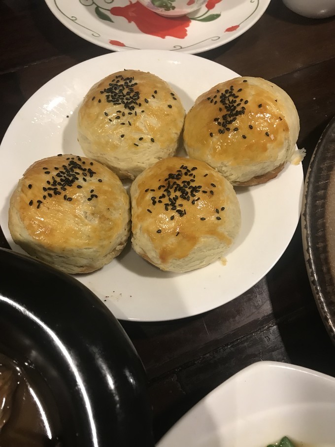 看着特别像上海的精致月饼,包子馅分两种,羊肉和果仁,味道不同,各有千秋!个人比较喜欢干果的~