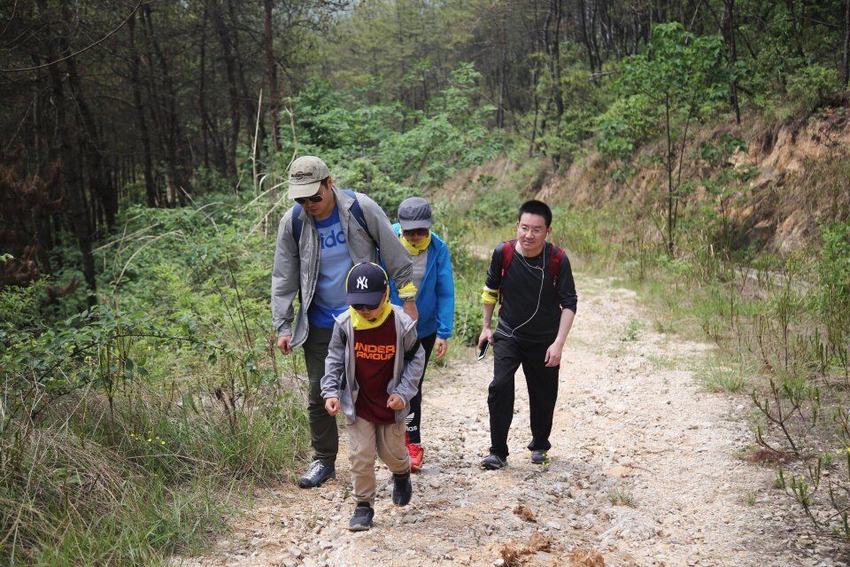 囿于工作与生活的我们,出来自然是放松心情的,那么,先来一段热身活动,每个人都很认真,从热身感受到了大家内心的期待。这是一条二星难度的线路,前奏很轻松,土路,小坡,缓缓而行,谈笑声,音乐声,此起彼伏。900米处准备进入丛林,整顿,短暂休息,这个季节,山上很多毛毛虫,我们的几个小朋友并没有因为害怕而不敢前行,一路都非常勇敢,也很厉害,扛旗溜的不要不要的