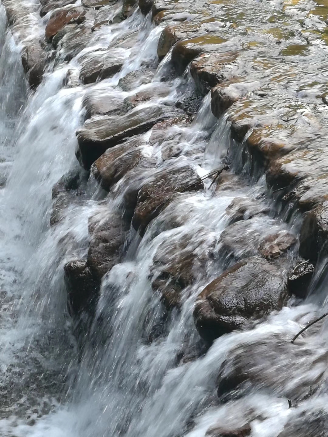 经过雨天的积累,瀑布的水量很大,顺流而下。