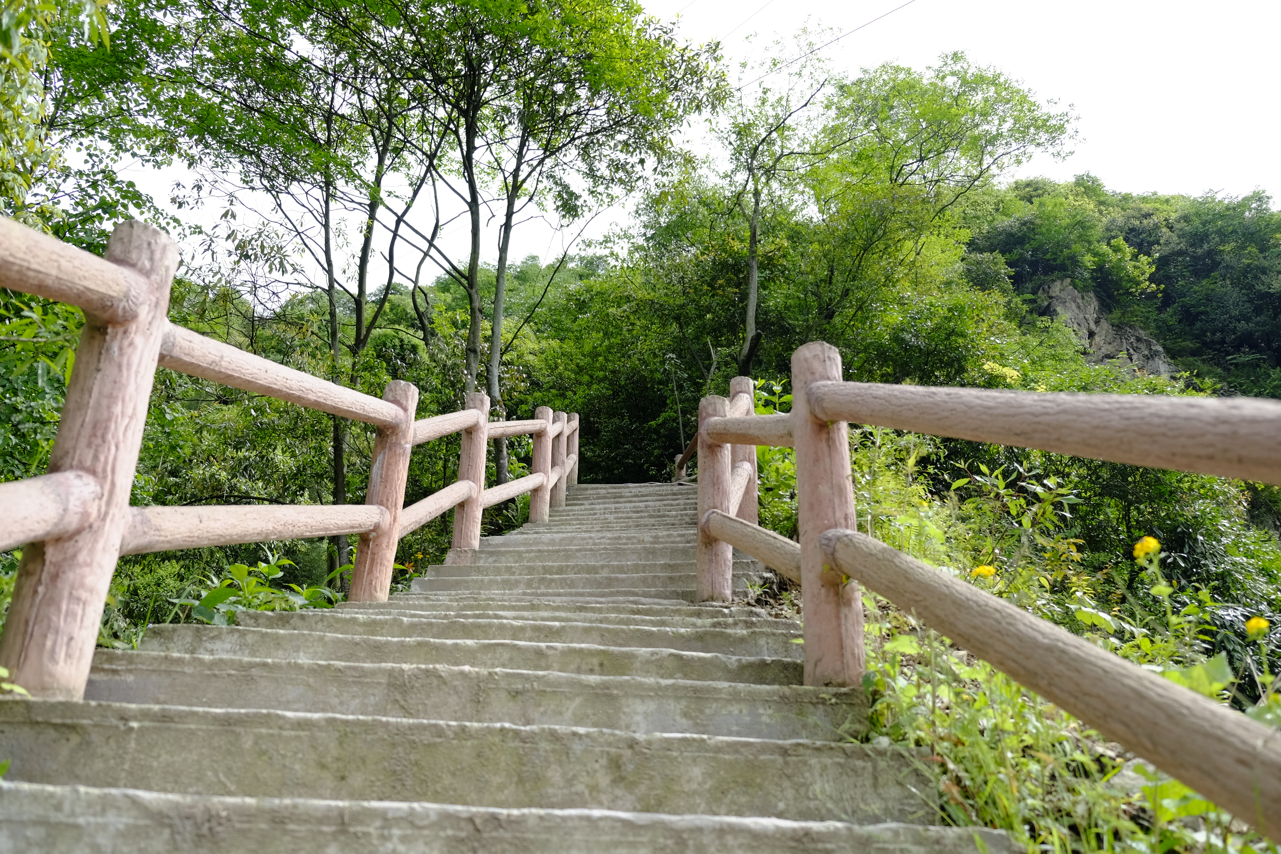 经过长途跋涉,终于到达了山顶。山上风光真美啊!山下的房子成了方糖,岷江河变成了一条飘带,这时我才领略到一览众山的雄伟。