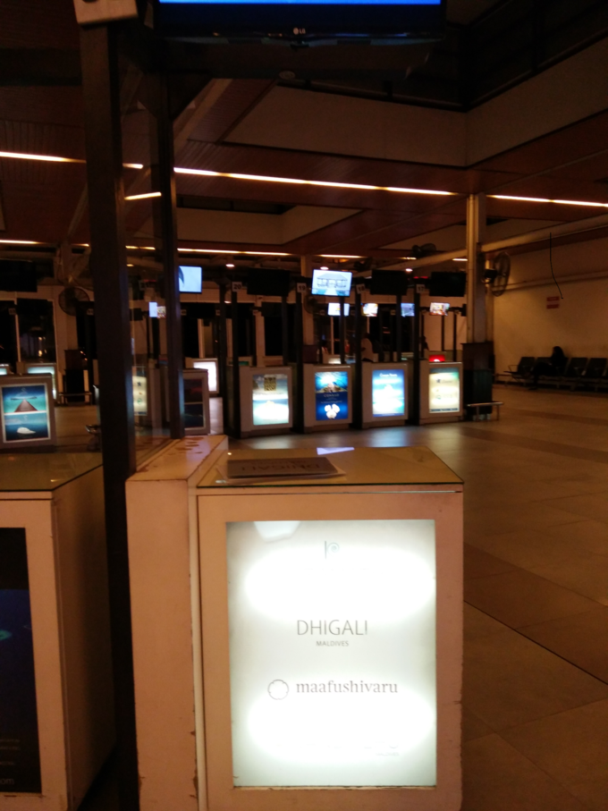 戴加利是和另外两家酒店在一个柜台,所以到了柜台,一定要跟小黑说,你要去戴加利岛,因为每个酒店都有专门的小黑接待,来负责帮你办理上岛内飞的登机手续。如果戴加利岛的小黑此刻不在,你可以请此柜台的其他小黑帮忙给戴加利的接待小黑打一个电话,告诉他你们已经到达并在柜台这等他,请他尽快来接。
