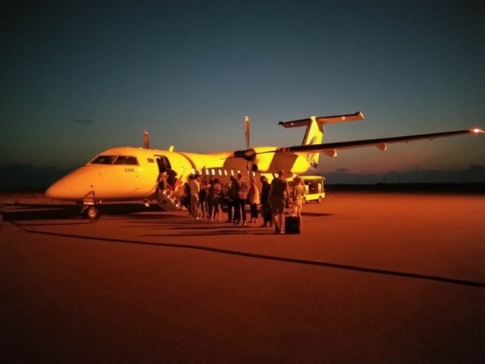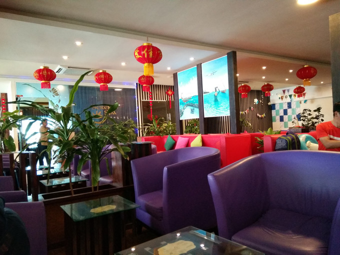 40分钟的船,还是有些微颠簸。下了船,小黑开着电动接驳车载我们到内飞机场休息室。确实不大,但有免费的水、糕点和wifi。进入休息室,小黑会收走护照去帮忙办理内飞登机手续。