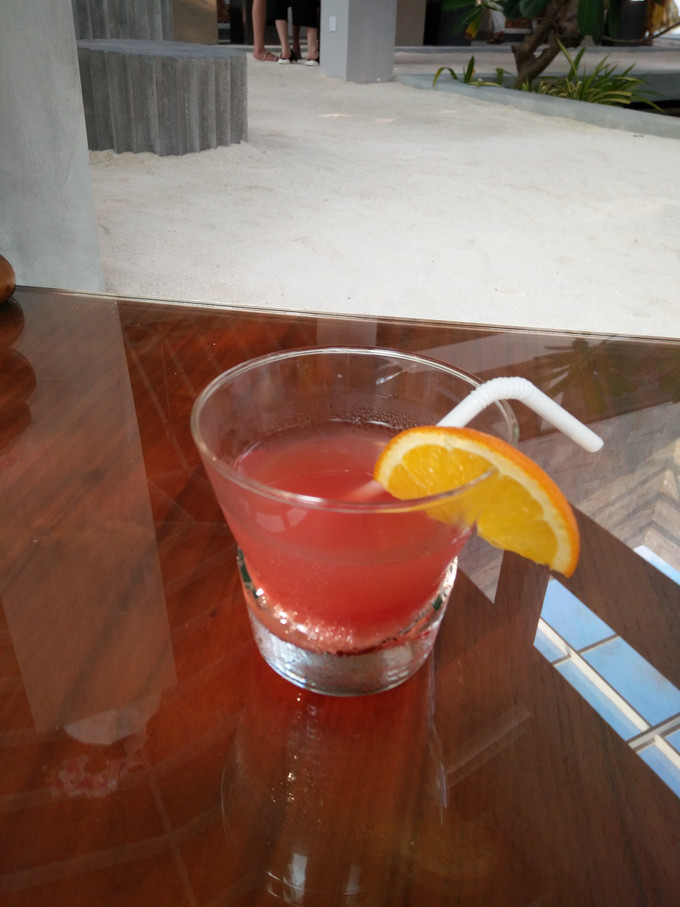 3. 中文管家带我们到了酒店大堂,让我们坐下休息,然后她去帮我们办理入住。这时,酒店服务人员会送来湿巾和一杯冰果汁。