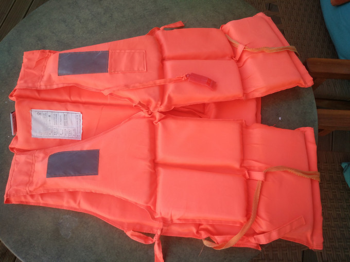 经验总结:建议自带潜水眼镜和呼吸管,一来卫生,二来不用受归还时间的限制。脚蹼携带起来重而且占空间,可以租用酒店的。租用的救生衣在浅滩随便游一游还好,但浮浅的话,总感觉重心不稳,容易翻,而且是吹气式的,时间长了还会稍微泄气,所以浮浅最好用的救生衣应该是如下图这样的(水屋里有配备):