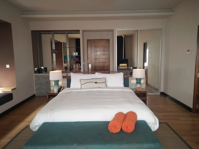 第二天早早的醒来,太阳还没有完全升起,推开卧室门,便进入私人沙滩上啦。将浴巾铺在躺椅上,清晨的海风还十分凉爽,沙滩上几只小蟹小心翼翼的从沙洞里爬出,再缩回去。一切都回归自然,没有了城市的喧嚣,有的都是自然的协奏:海风、海浪、乌鸦。