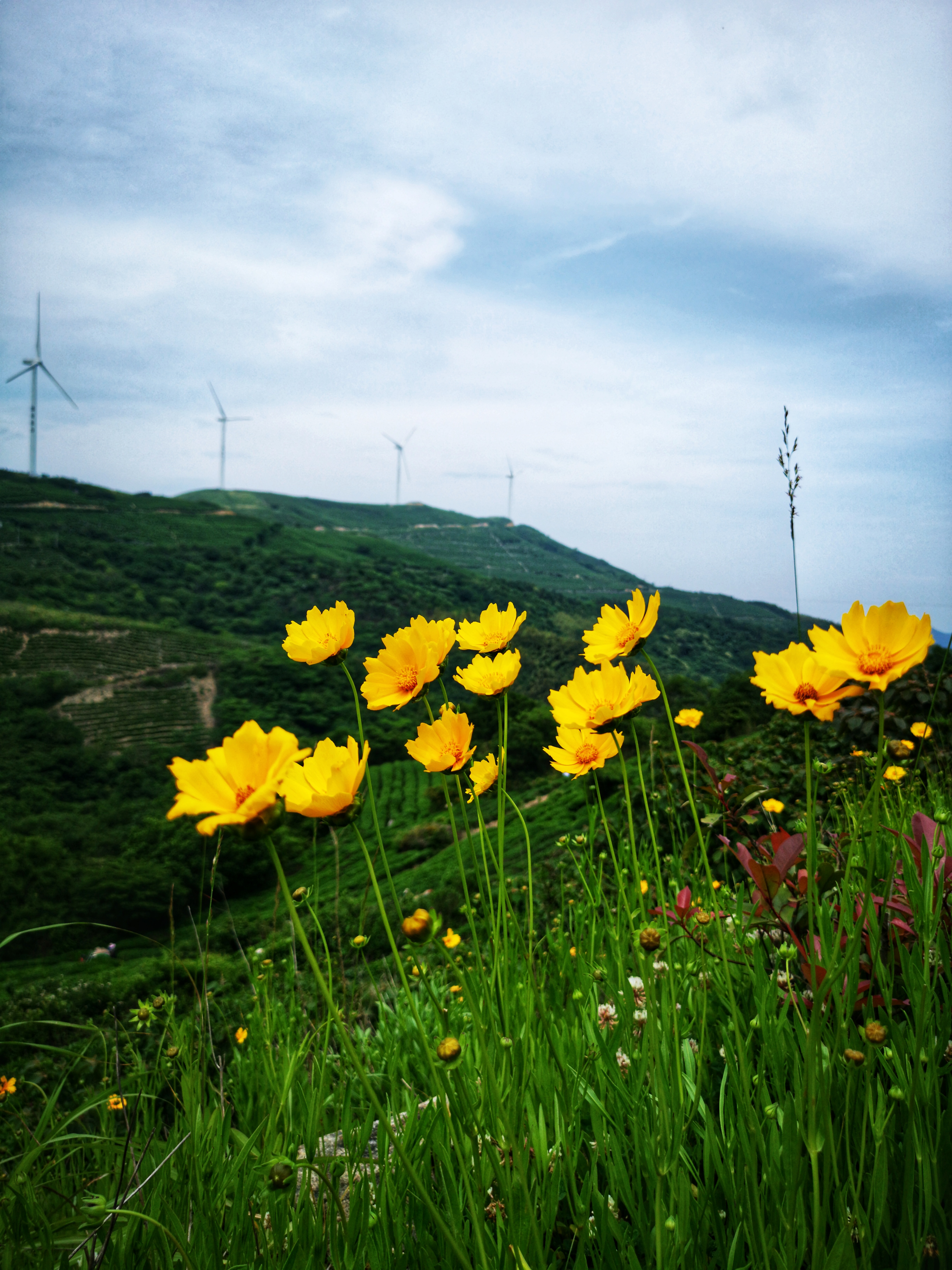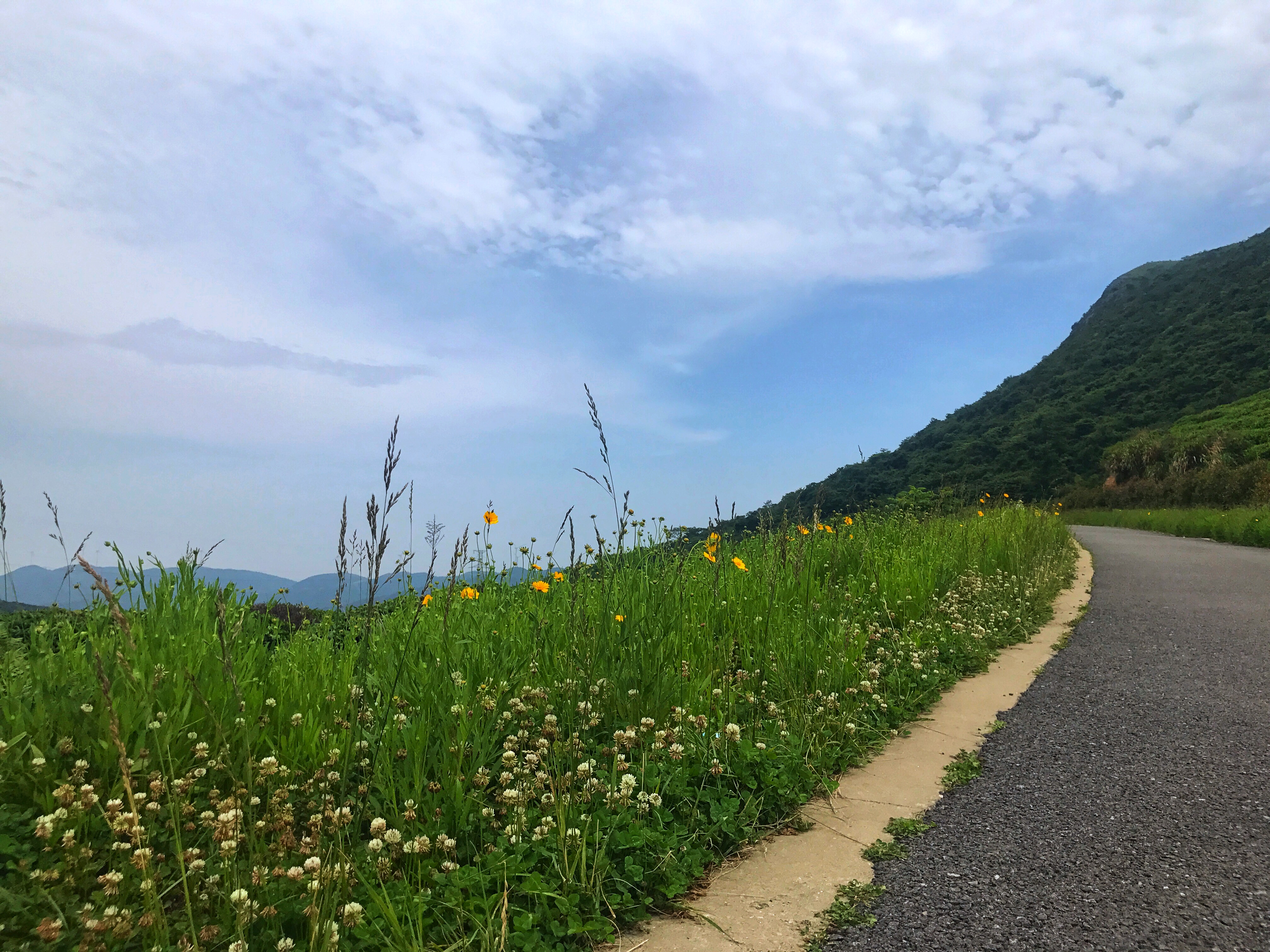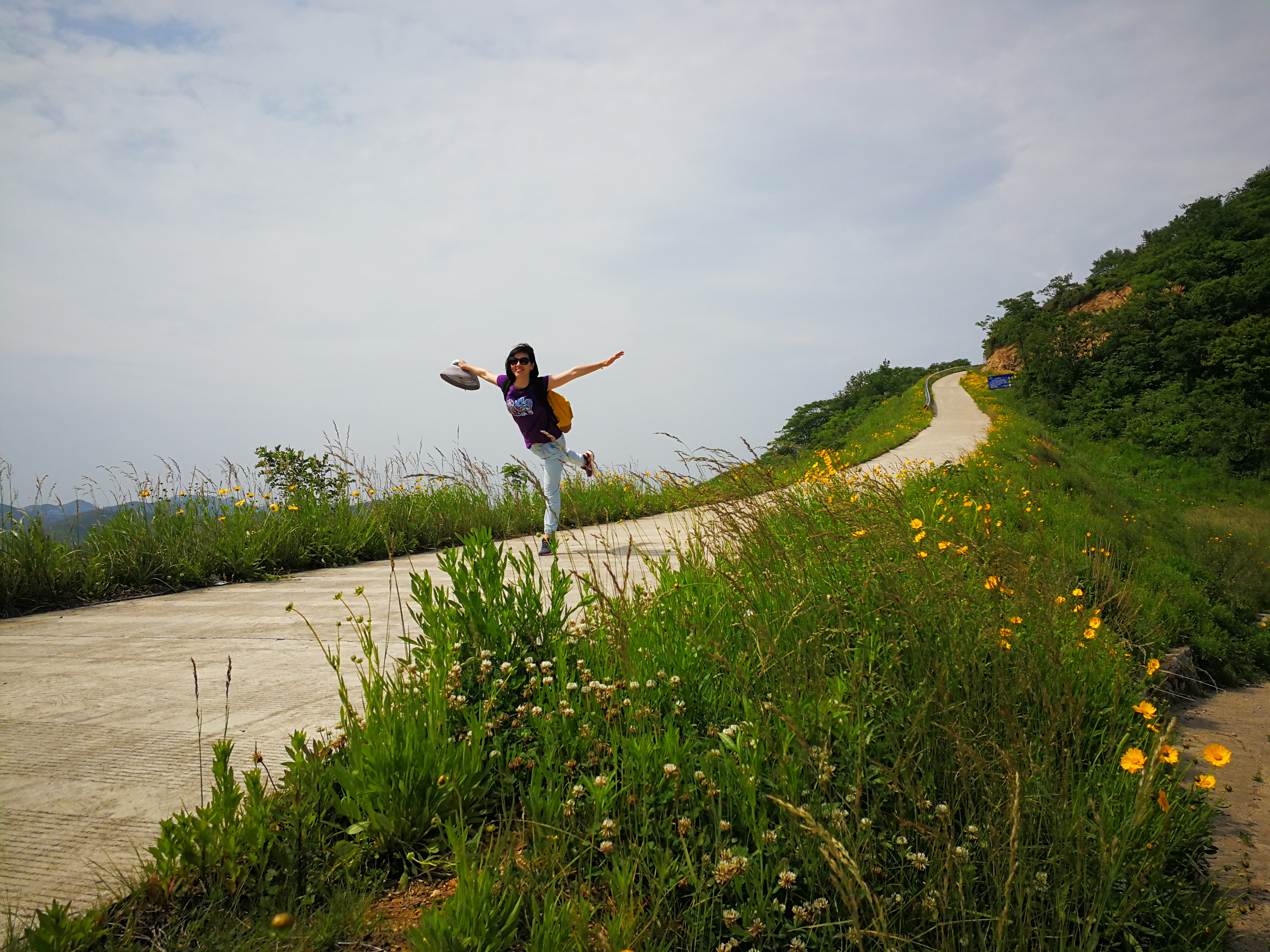 蜿蜒的公路缠绕着山峦,小黄花开满两边,照片是怎么拍怎么美呀~