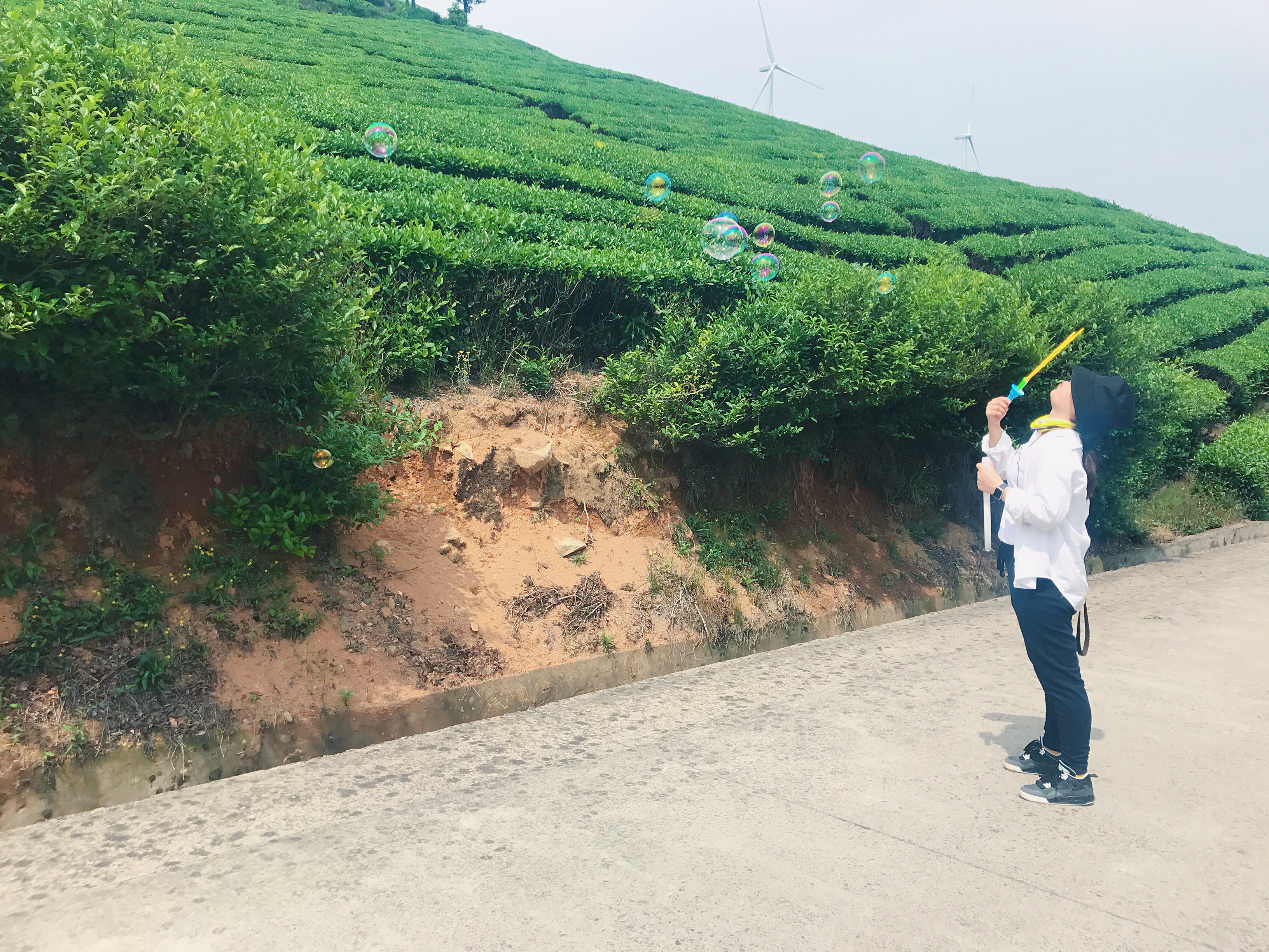 回程过程中,大家照片都拍满满啦,随机开始了各种小风车吹泡泡的游戏,欢乐无穷,不亦乐乎,不一会就走完了公路阶段,进入下山的山路。