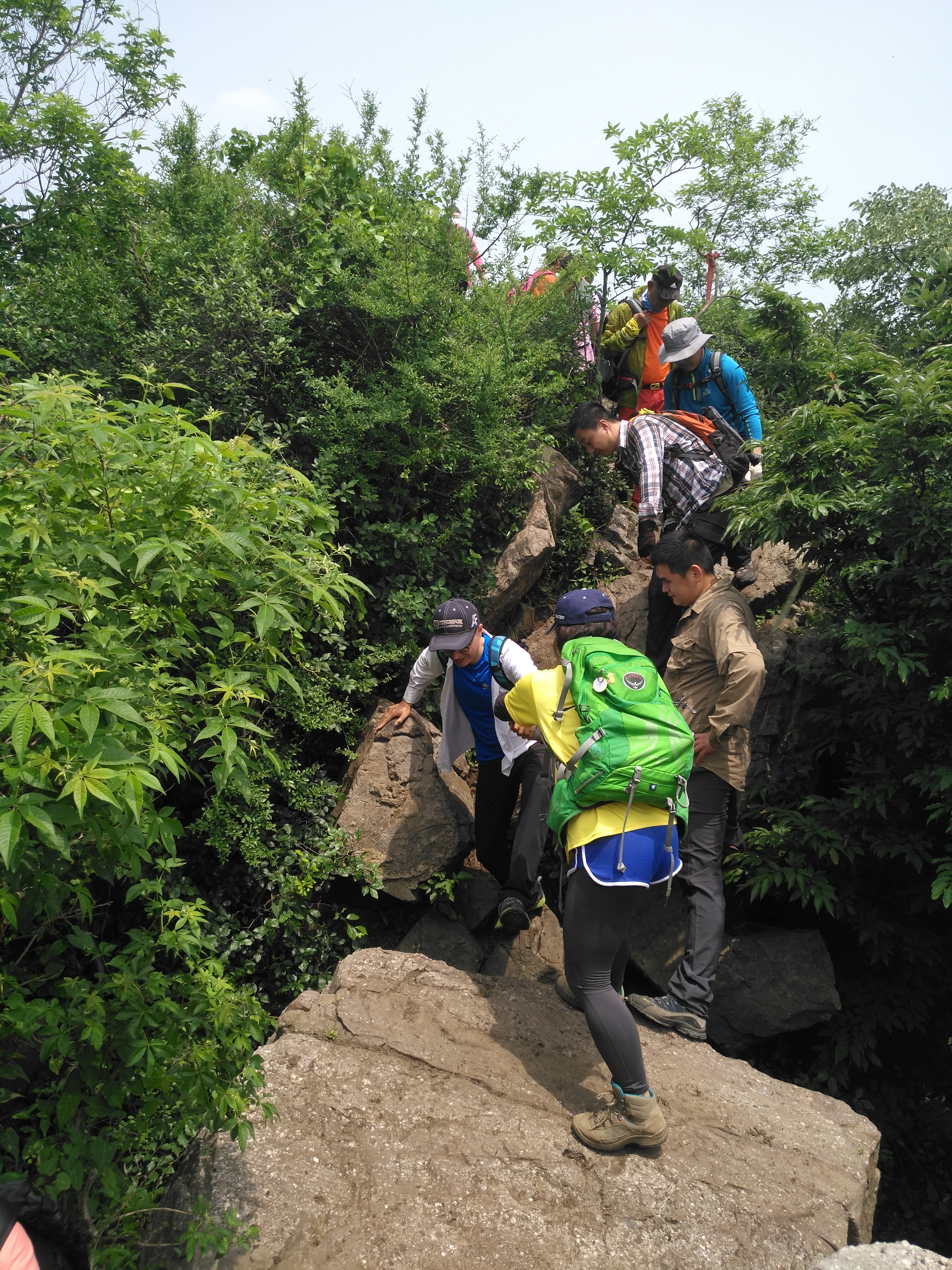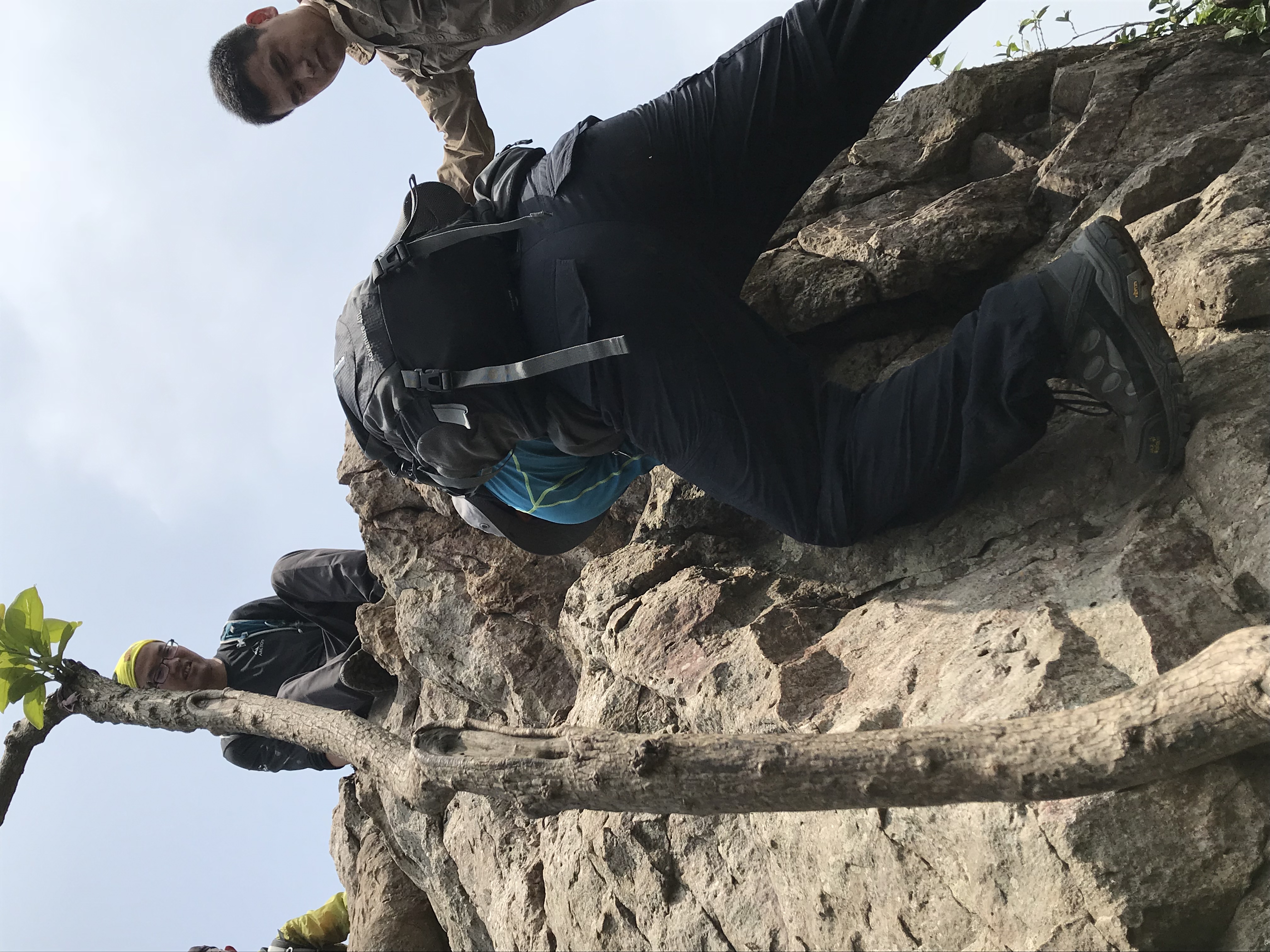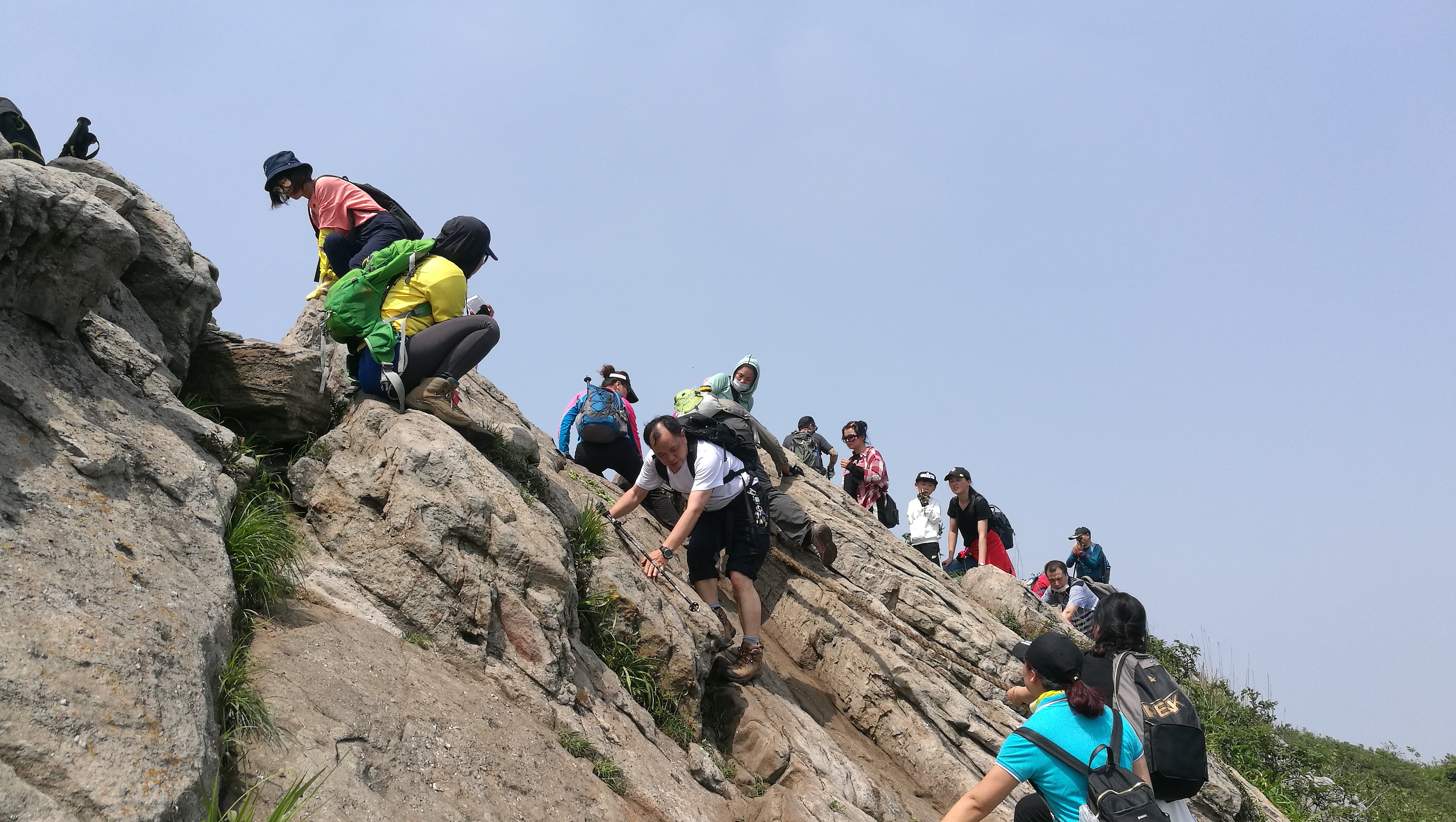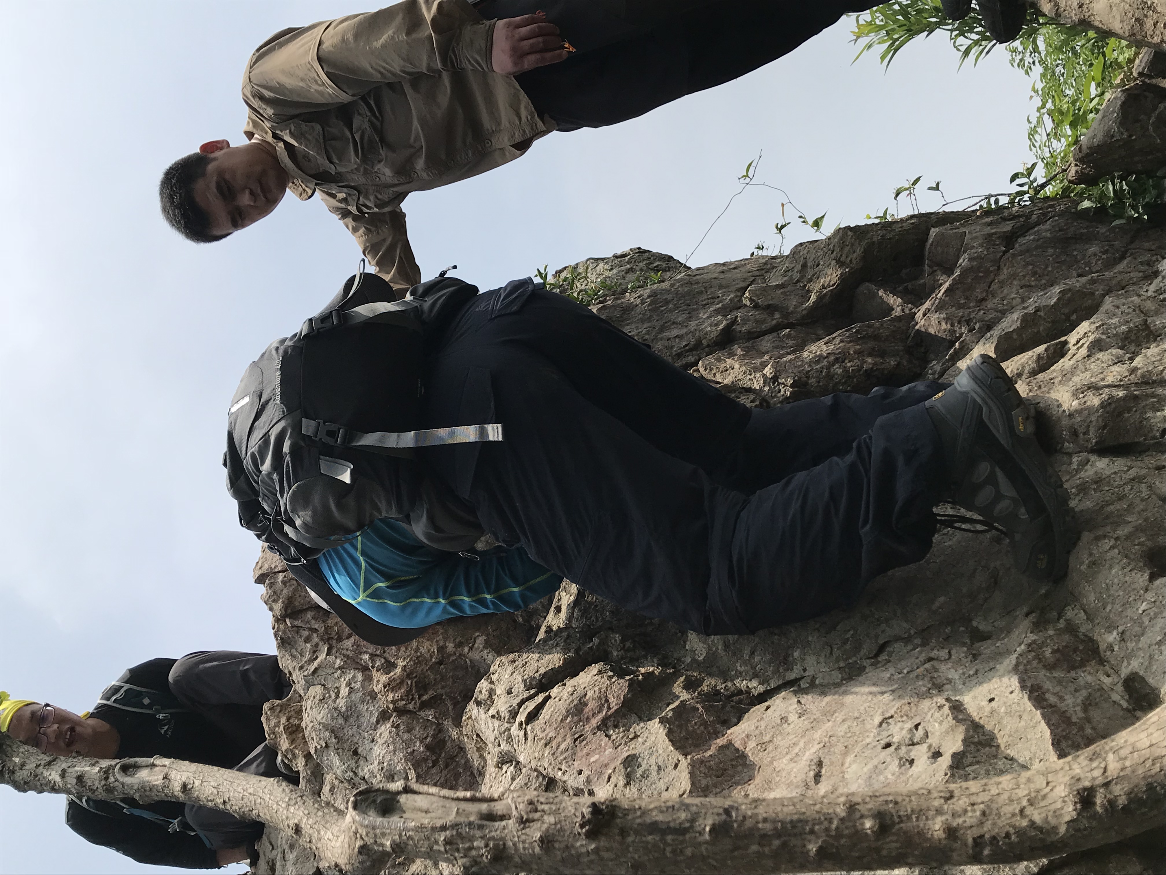 在此 小小澄清一下:高骊山是这样子全程只有两到三个平台,每个平台不大出8见方。一旦你错过了只有往前走,再往前走路上无处停留,“会车”都很困难这是真的。所以,当你饿了,看到了一个小小的平台就将就着吃点儿吧