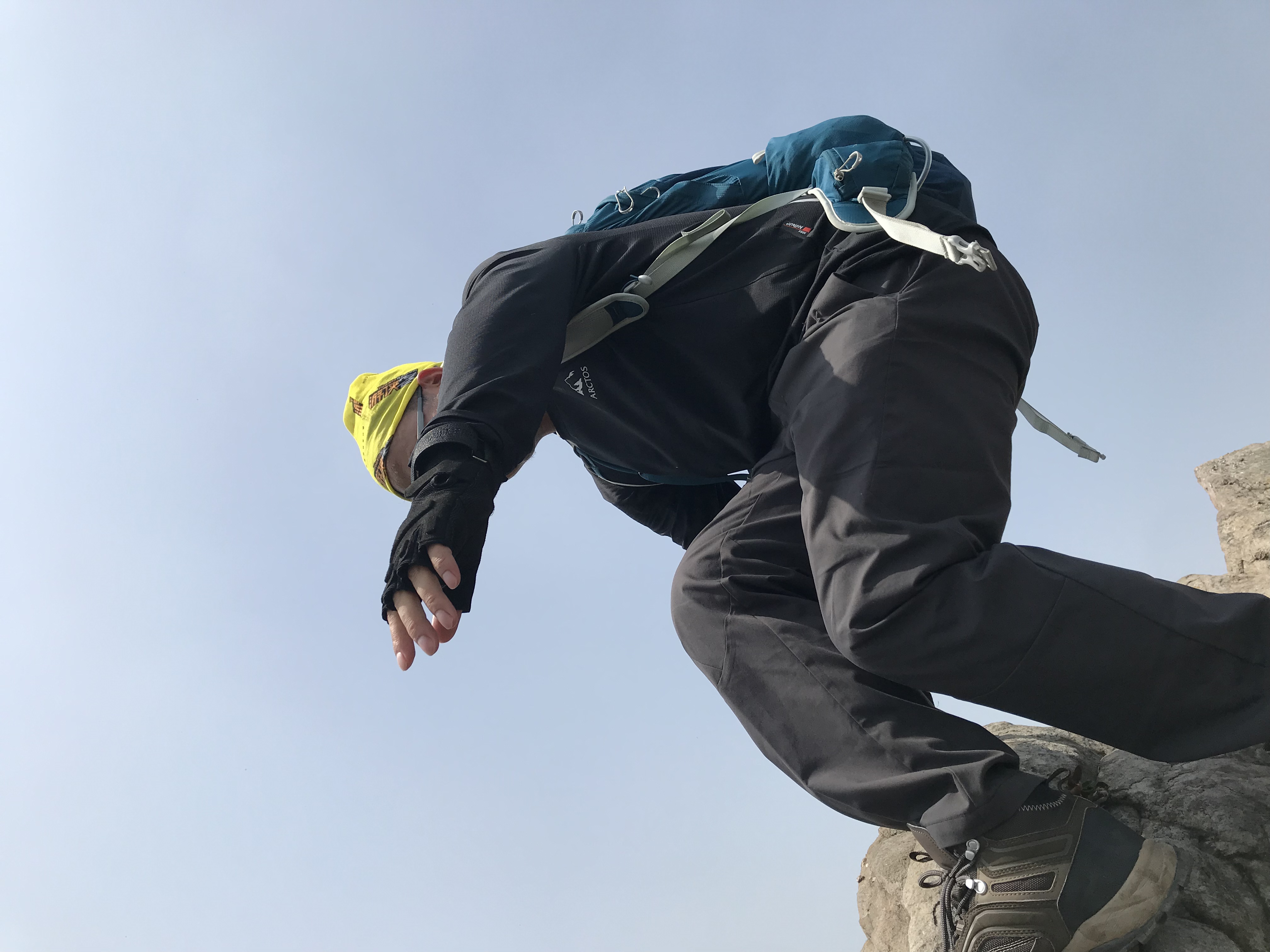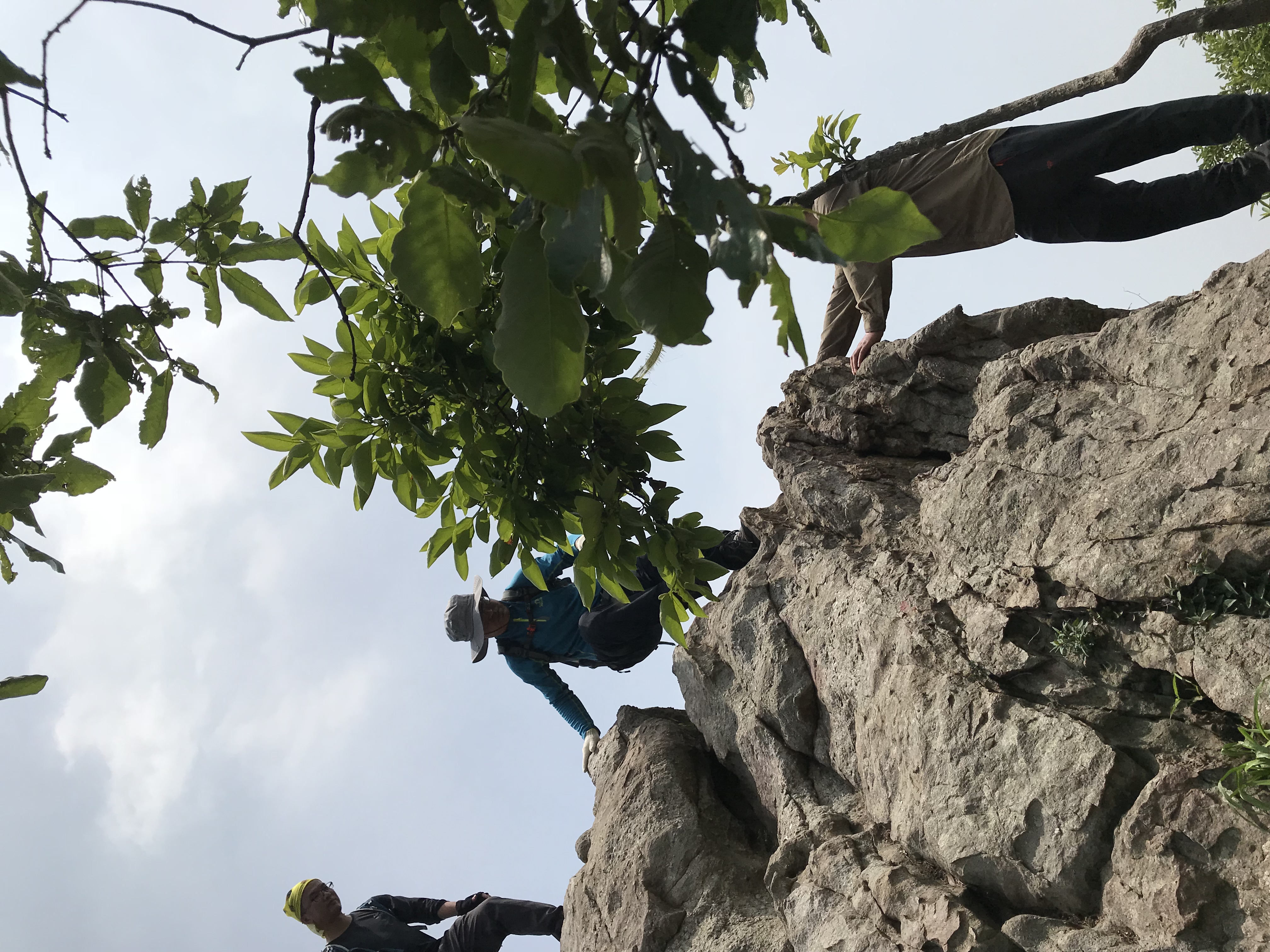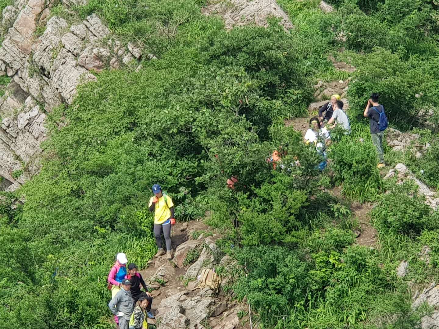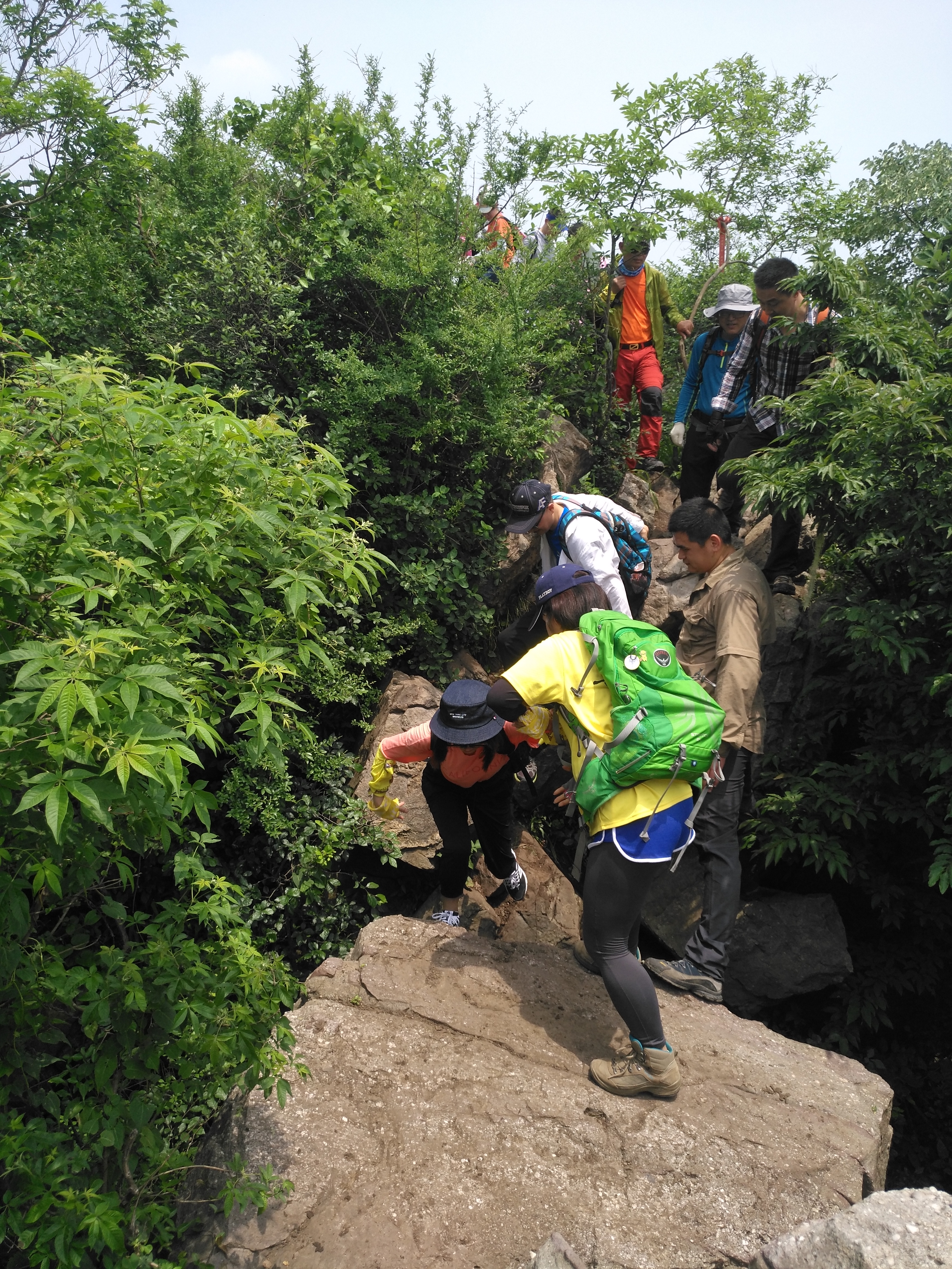 在此 小小澄清一下:高骊山是这样子全程只有两到三个平台,每个平台不大出8见方。一旦你错过了只有往前走,再往前走路上无处停留,“会车”都很困难这是真的。所以,当你饿了,看到了一个小小的平台就将就着吃点儿吧