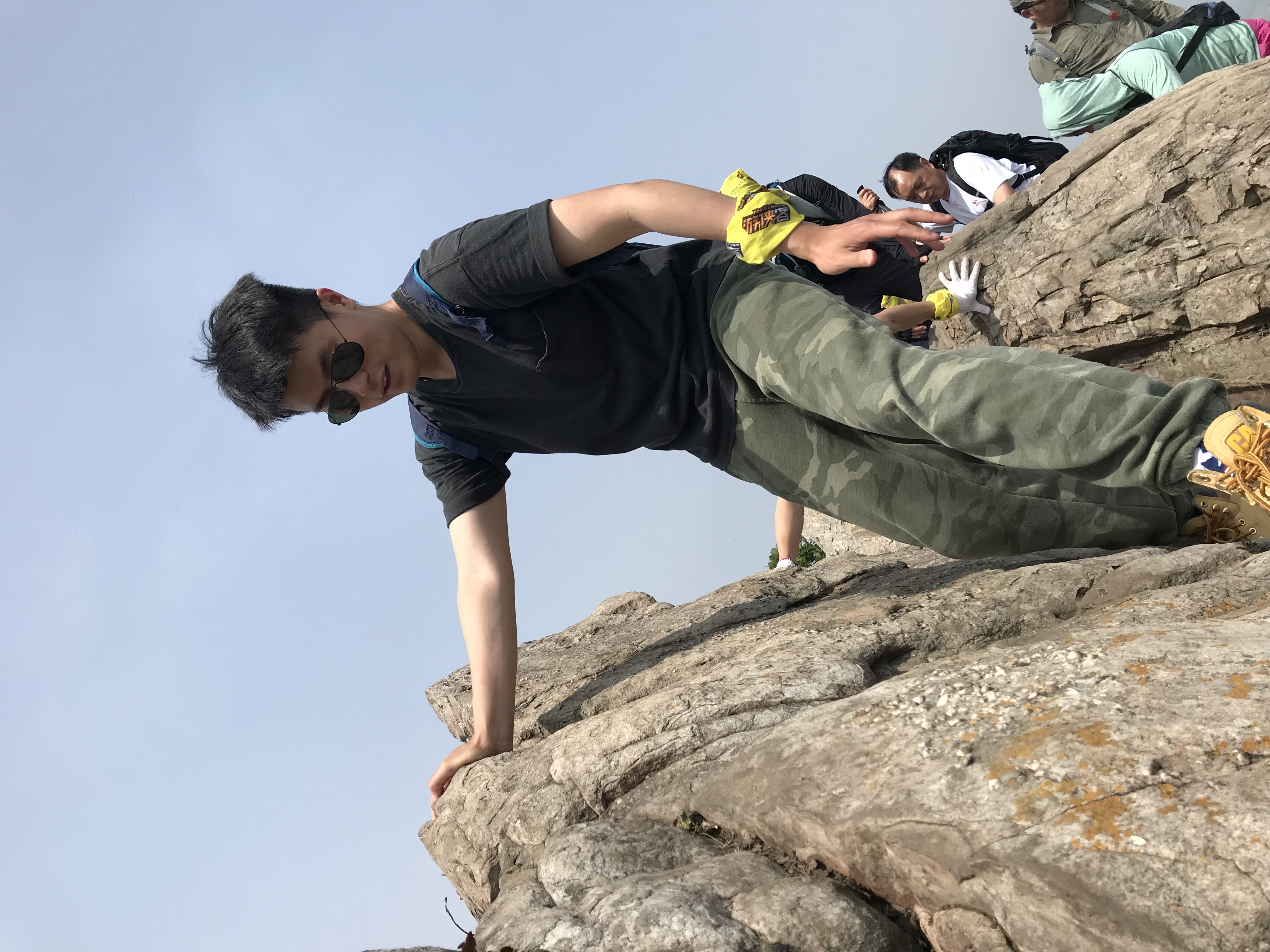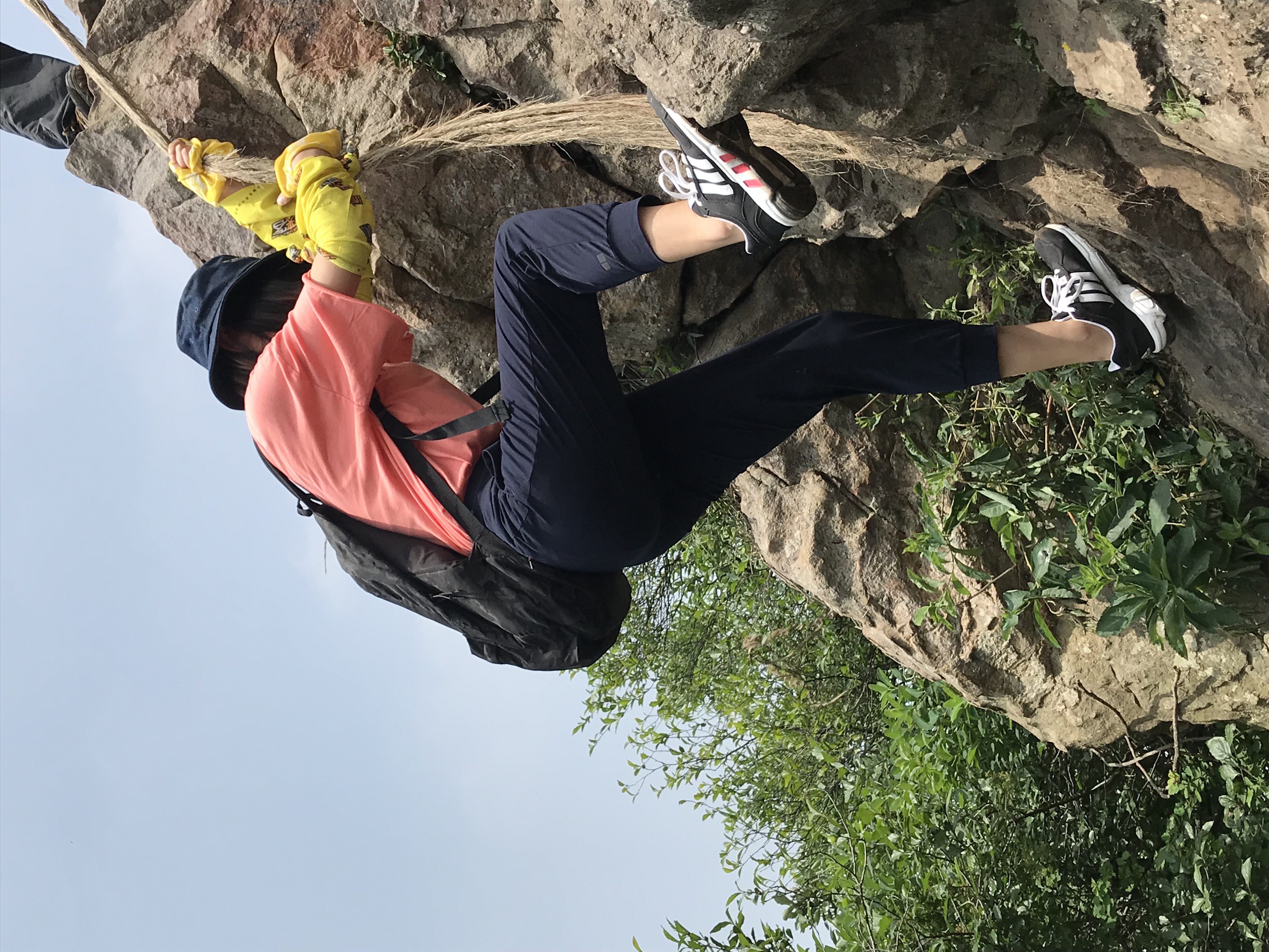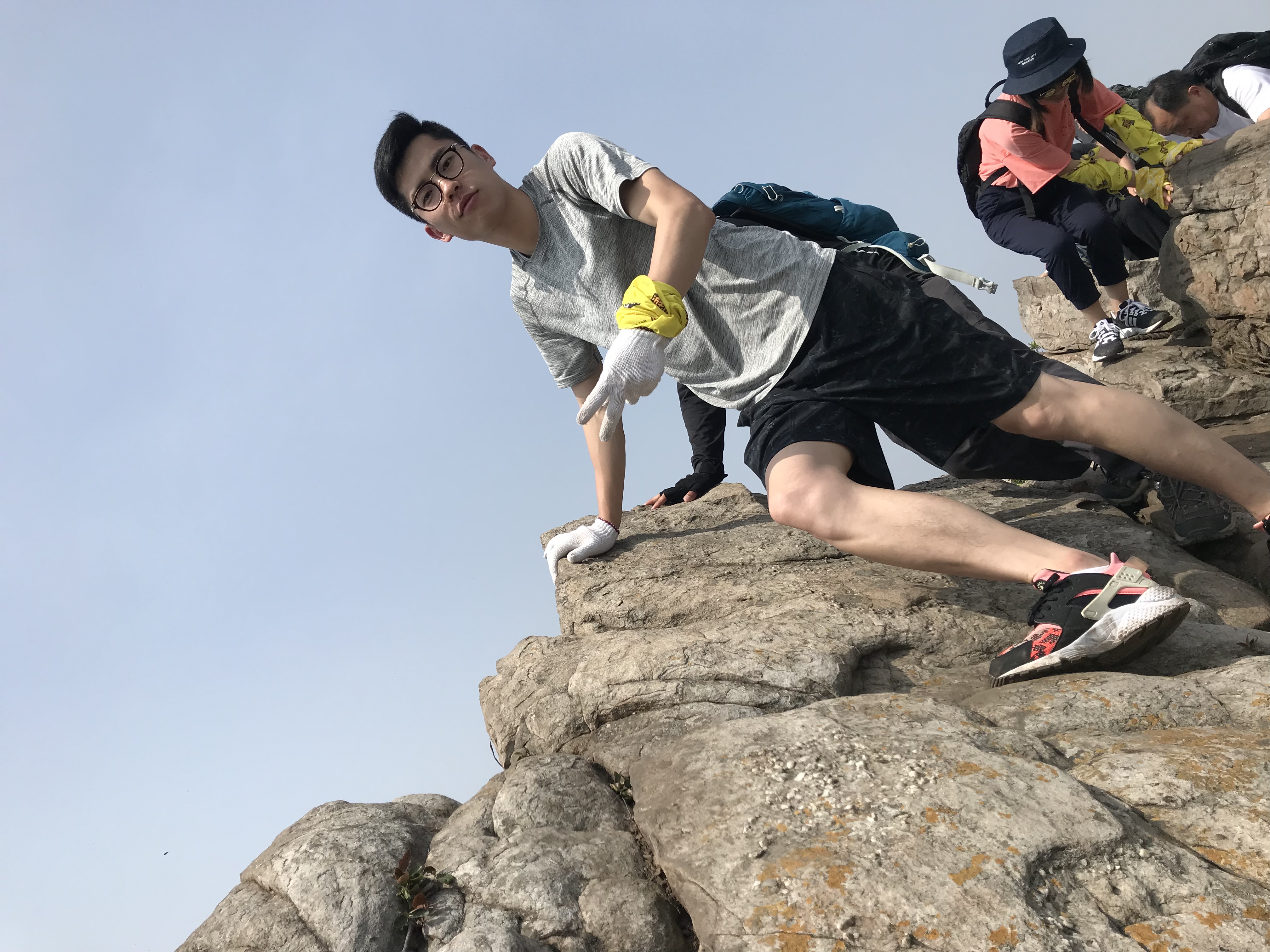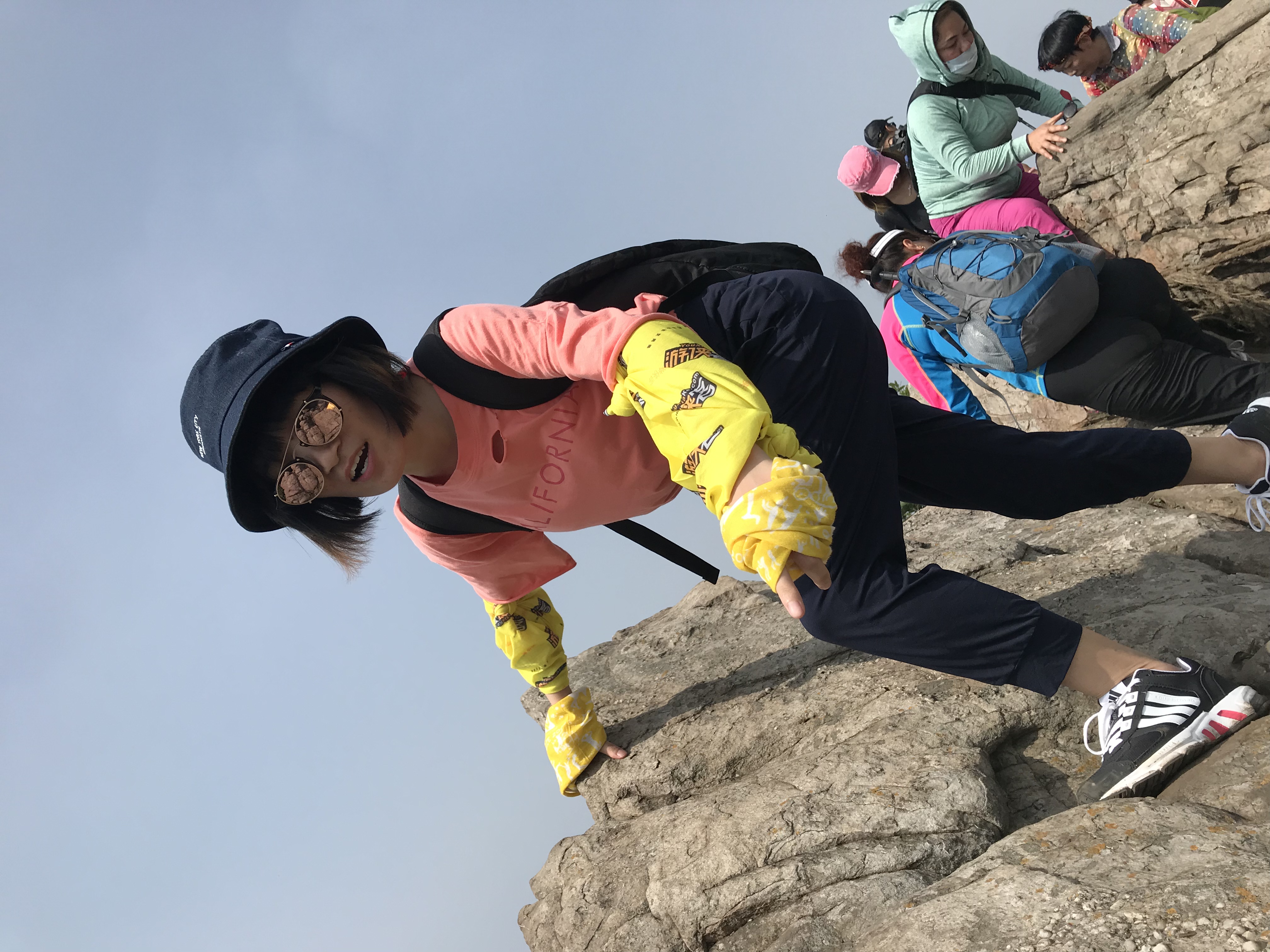 金阳阳 是不是很阳光 二十几岁的年纪短裤也穿来爬山