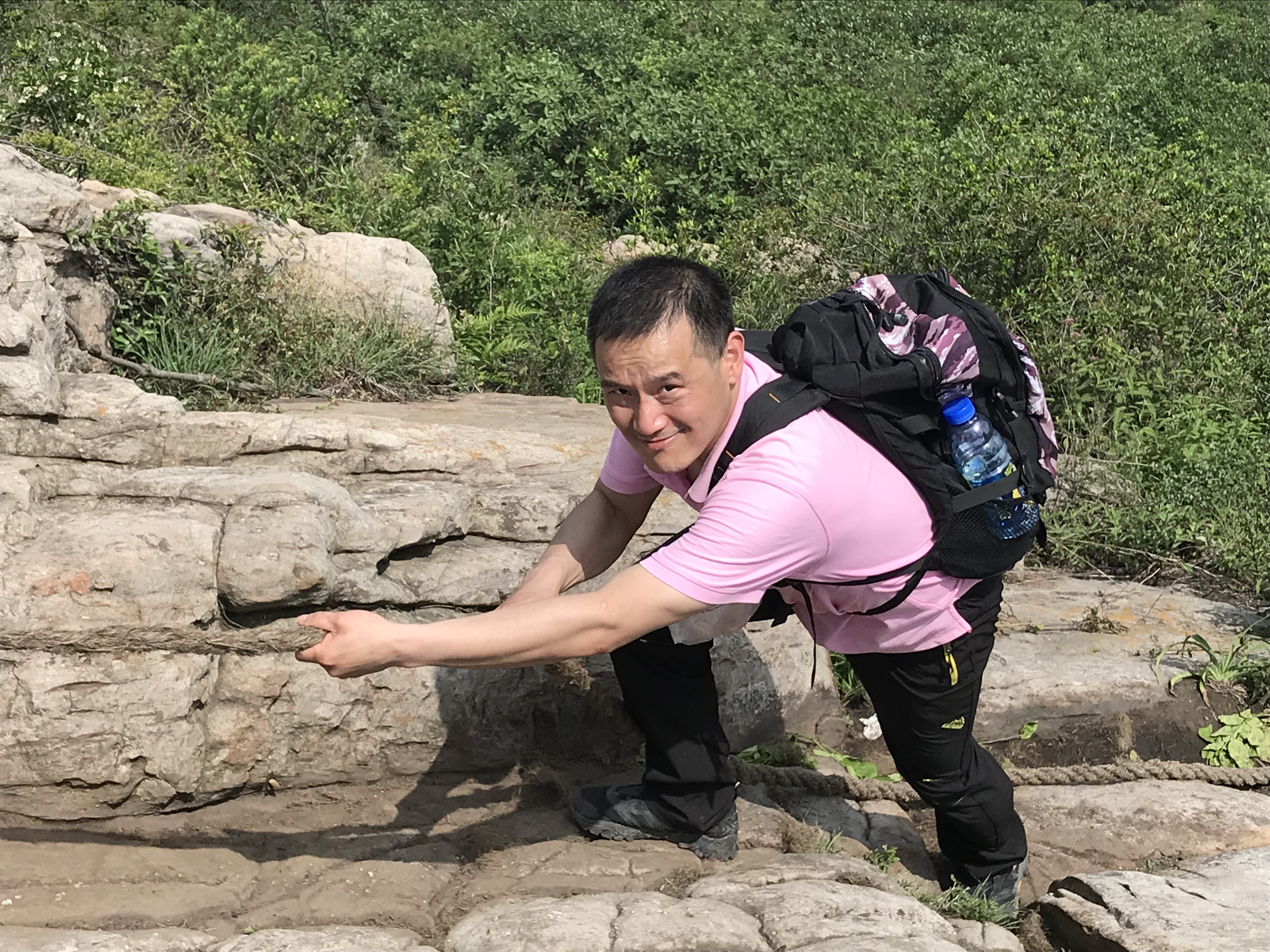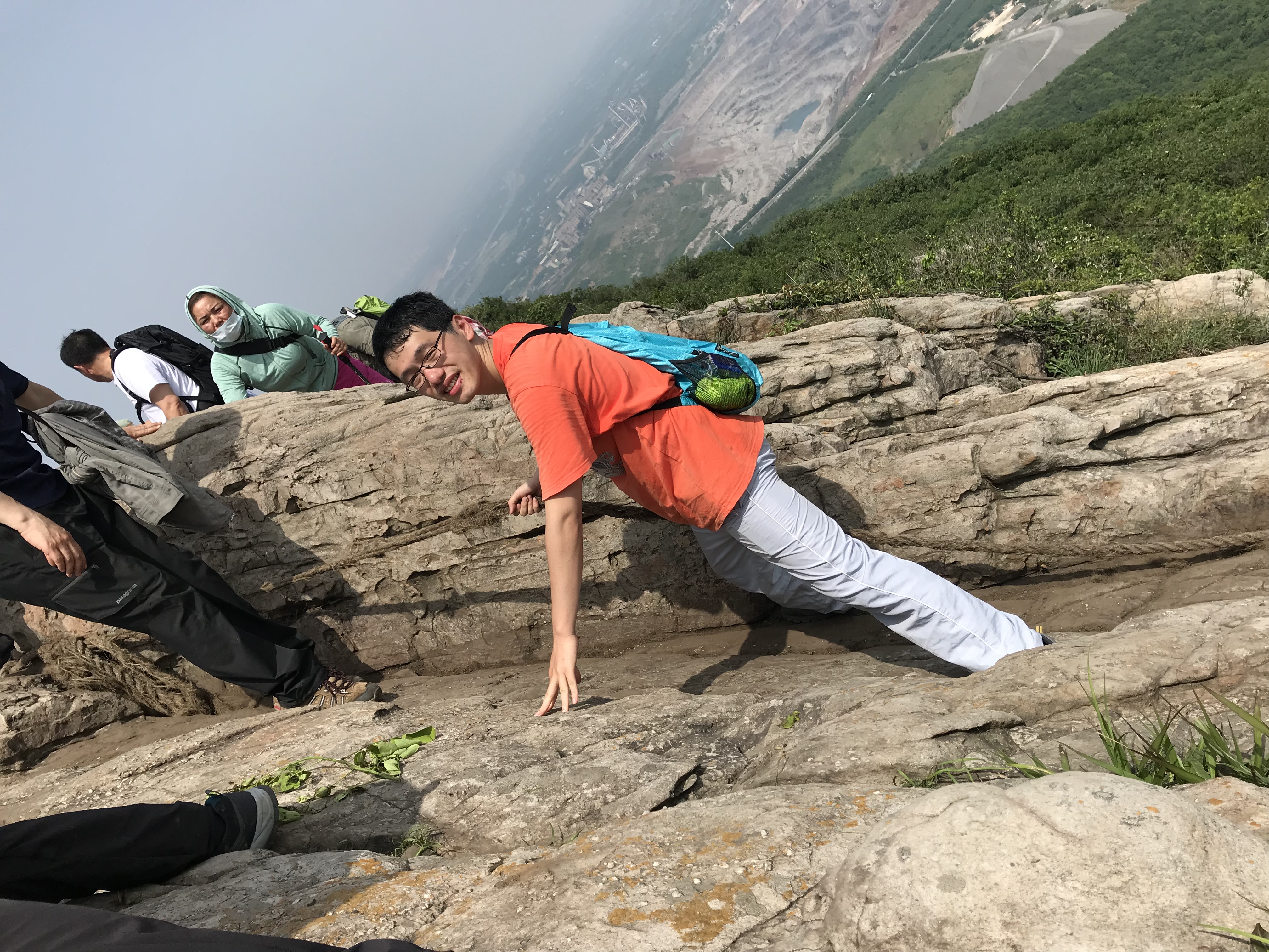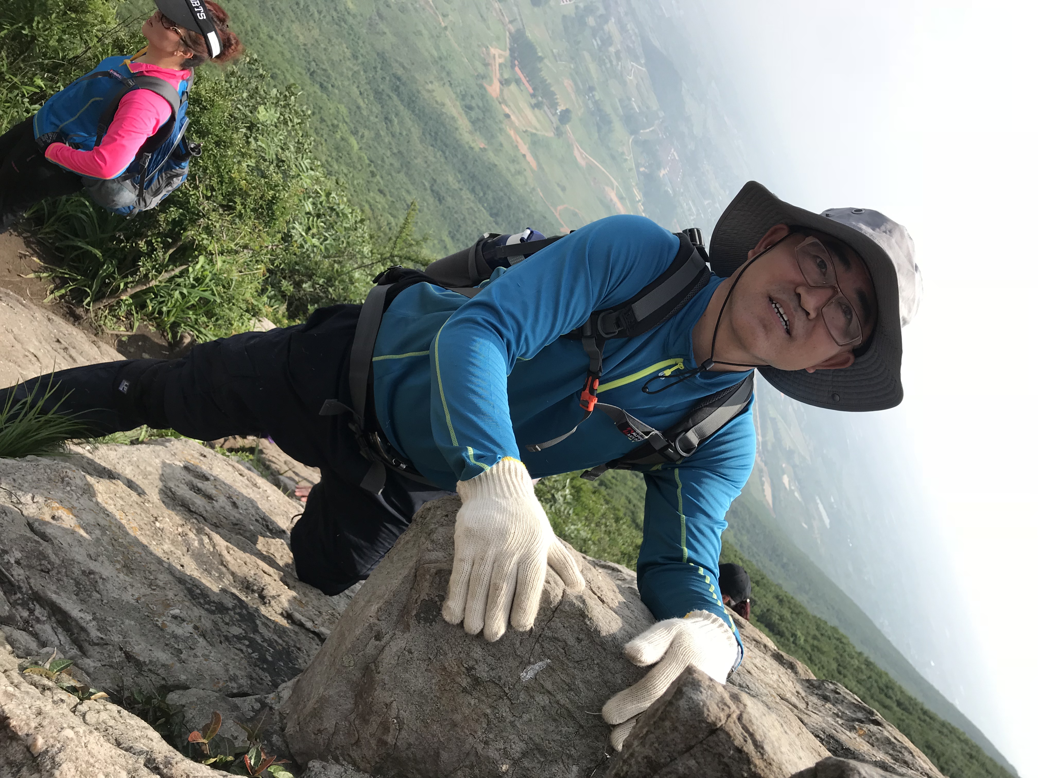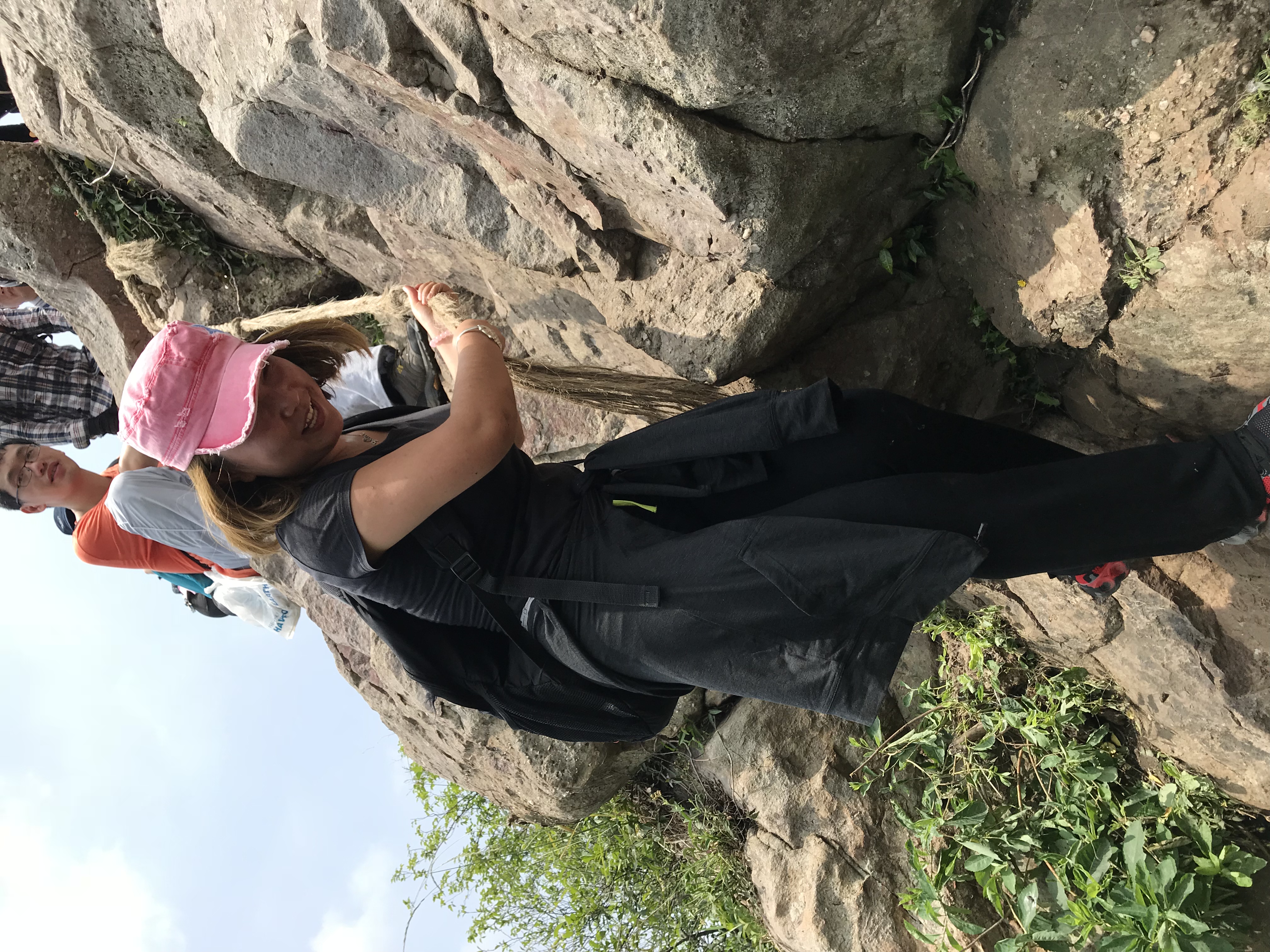 金阳阳 是不是很阳光 二十几岁的年纪短裤也穿来爬山