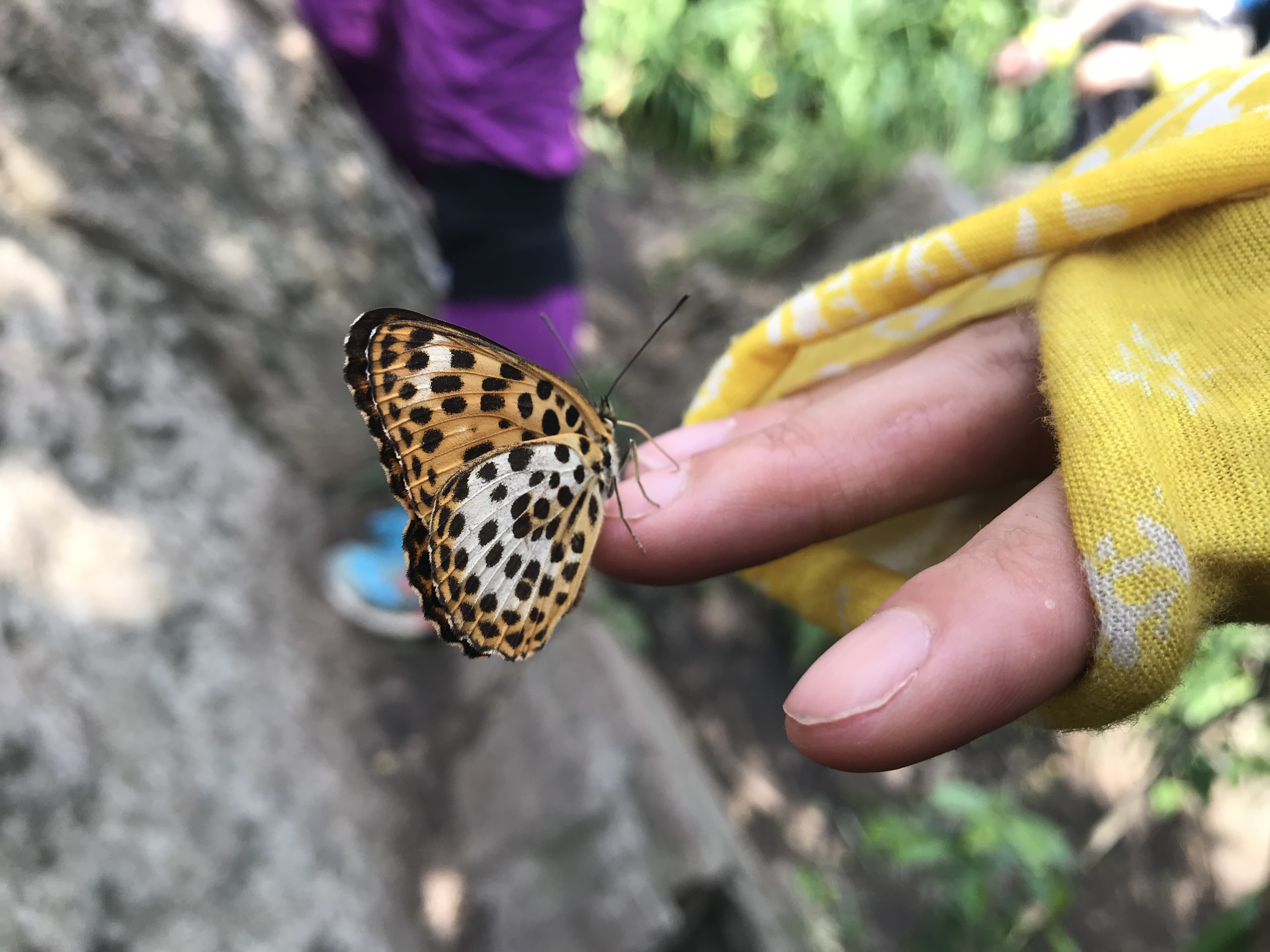 你就站着 看邱大哥头顶 这些蝴蝶们可能会落在你的手上,衣服上你微微动一下她们也不会飞走