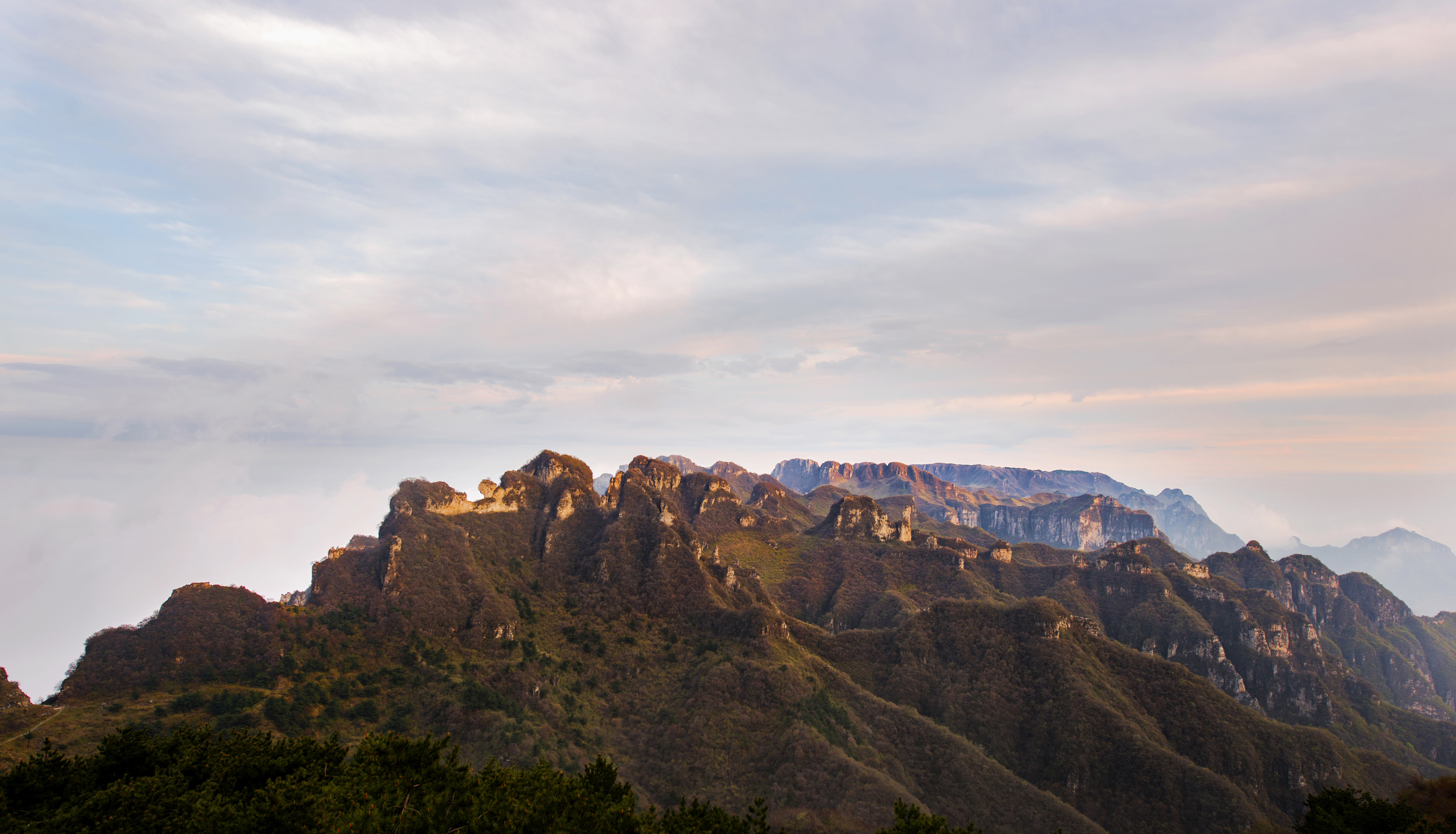 由于天气不好,早上日出拍成这个样子,实在很丢人。但又不能空手而归,便从炮楼、天梯等位置留下拍摄的场景。