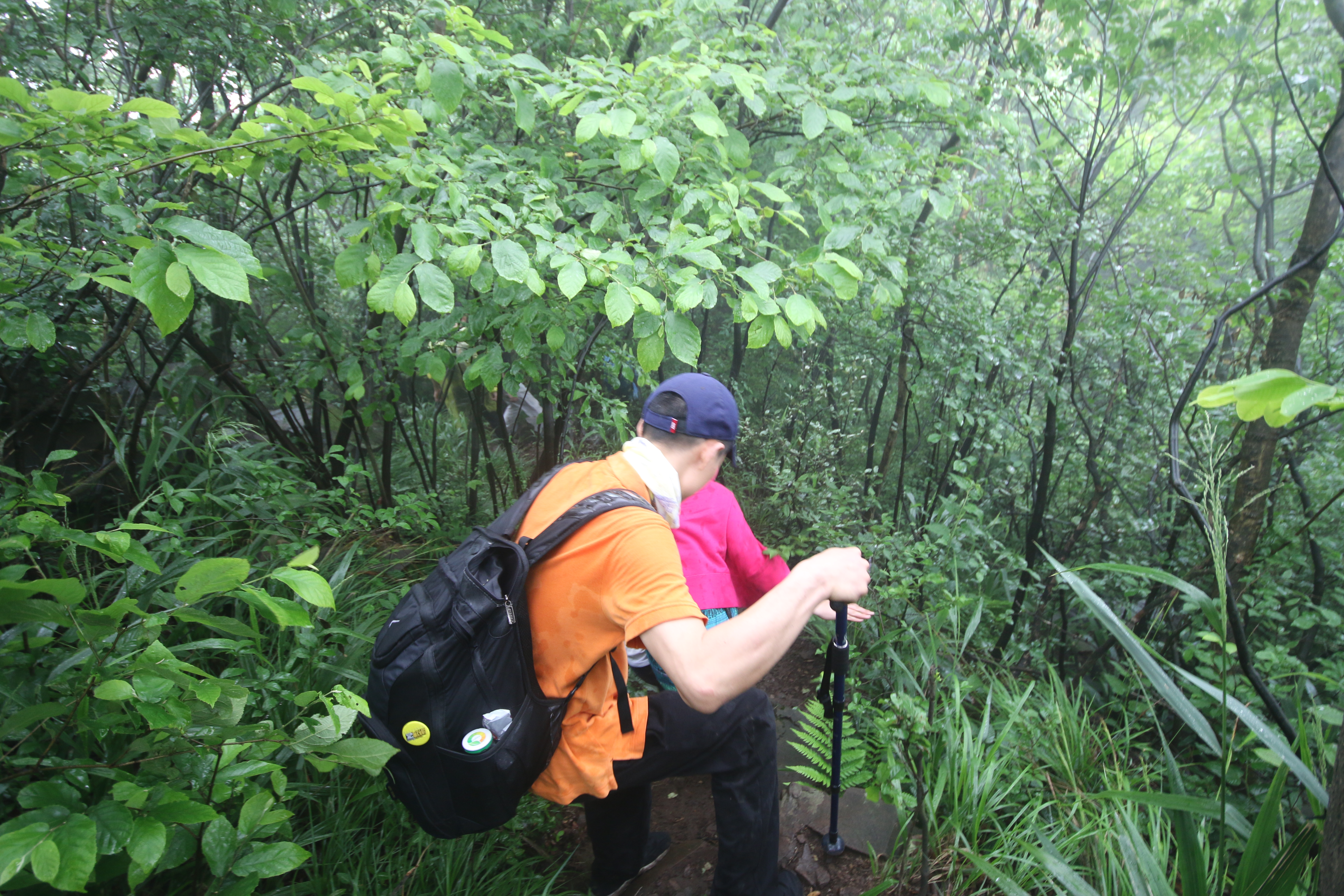 走着走着开始下起了雨,我们队员中还有个9岁的小朋友依然很卖力的冲在最前面