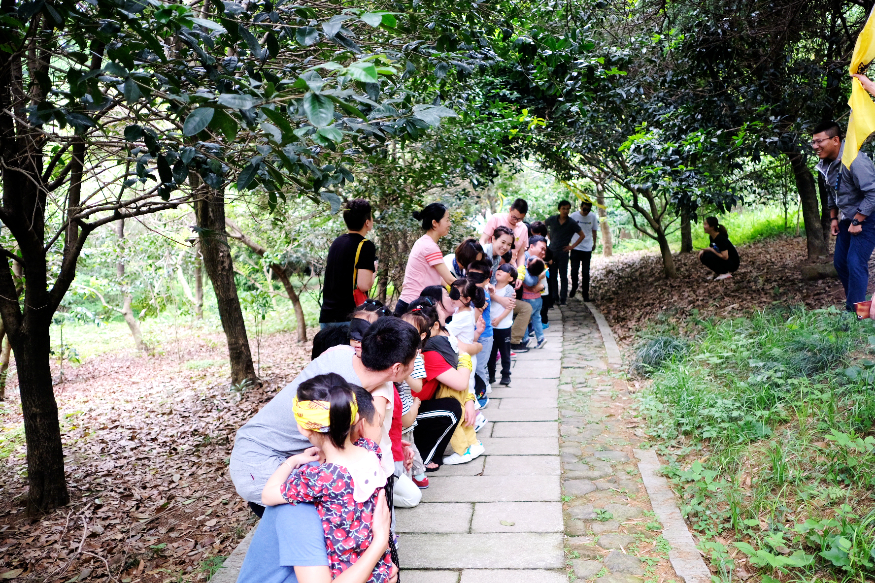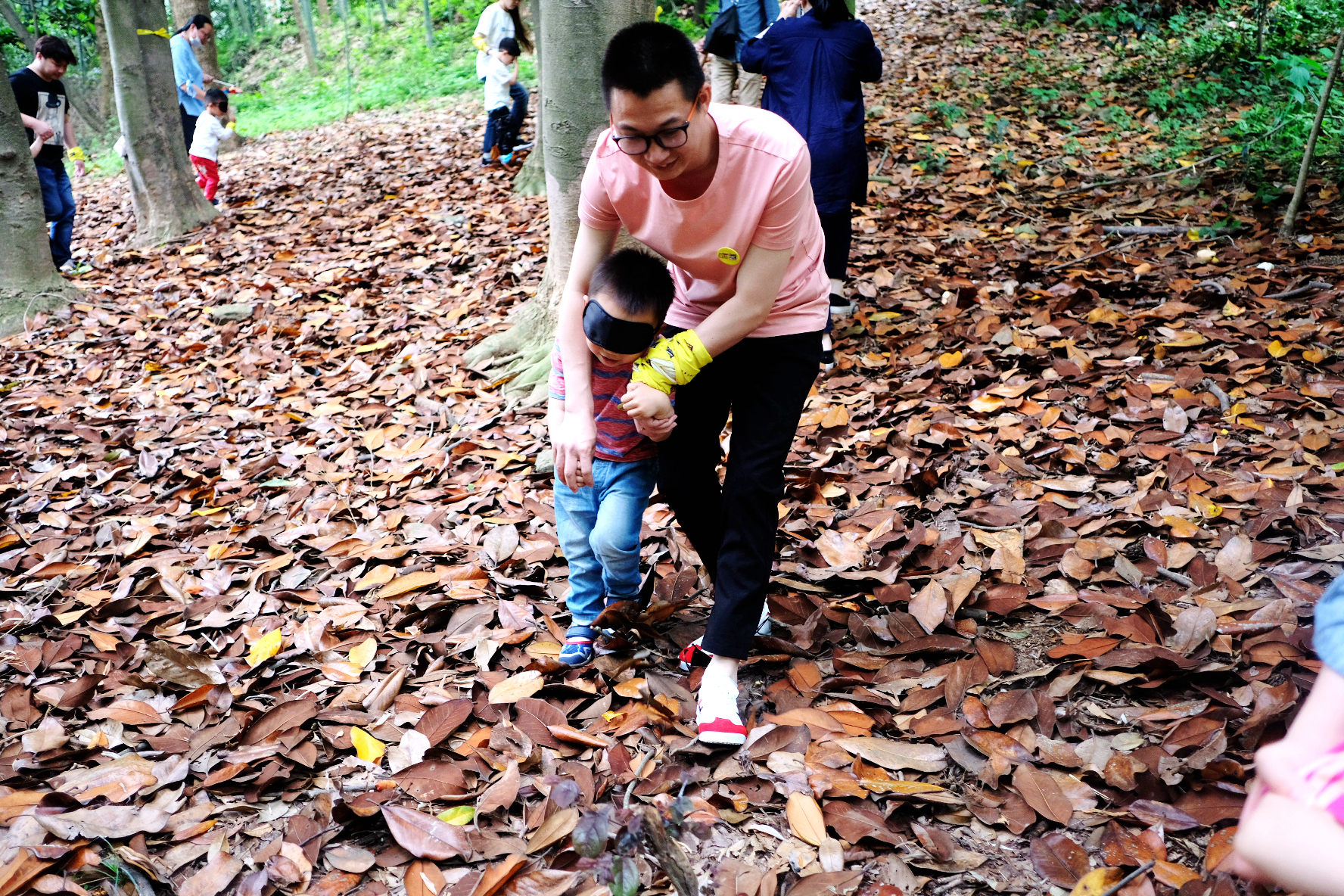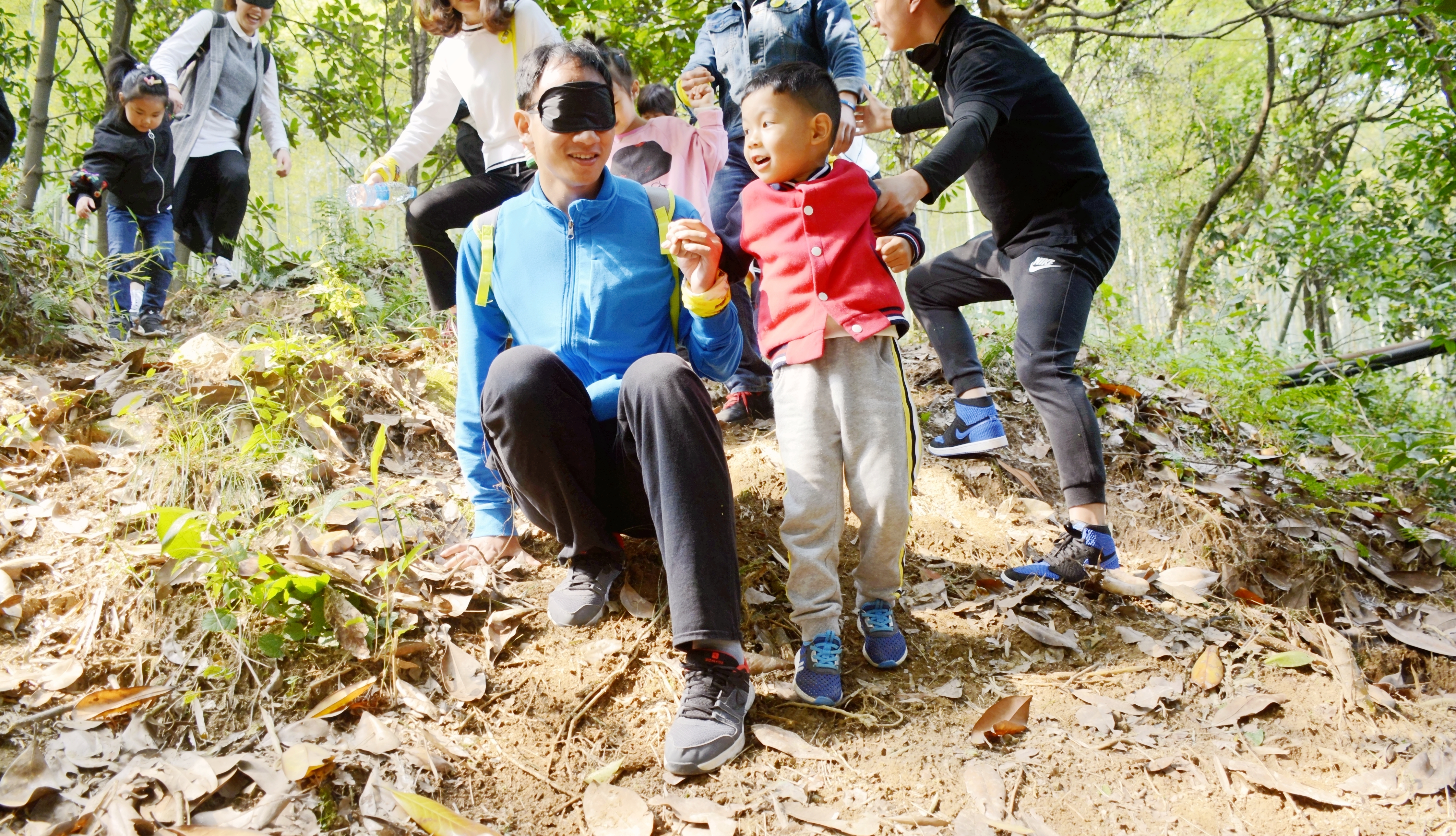 1、盲行路程氛围A段和B段,A段是孩子们带上眼罩,家长带着孩子走,B段是反过来