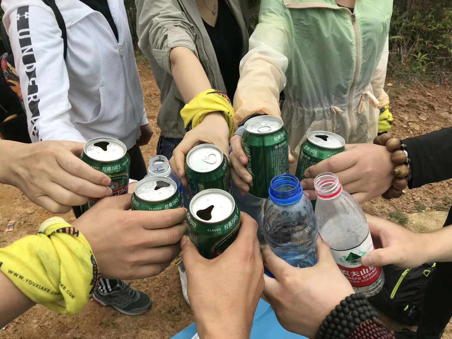 在户外路餐,除了面包、水果、八宝粥,你或许还有其他的即食口粮,然而你能想到在天堂顶可以吃到小龙虾、辣鸭脖嘛?打死你都想不到吧。托7年未见的老友之福,我们一行17人竟然在天堂顶尝到了来自千里之外的美味小龙虾、鸭架、辣鸭脖,再配上“马云”的啤酒,那个滋味,就一个爽!!!此时想想还是回味无穷。