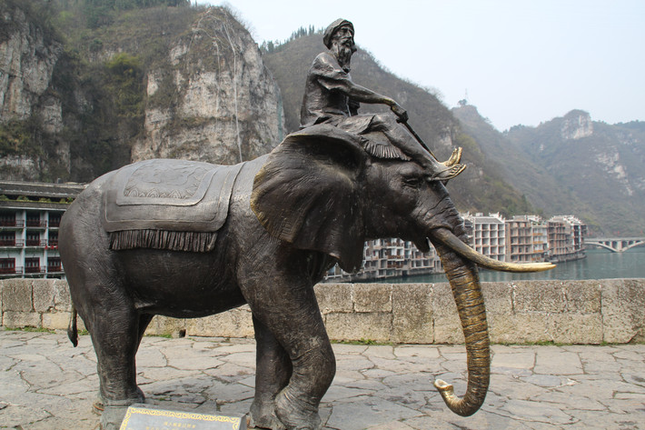 我们选择从祝圣桥开始逛,整个古镇不是很大,半天时间已经足矣。下了车,往前走两步便是祝圣桥。岸边有不少客栈酒店,桥中央有座亭和缅人骑象的雕塑。