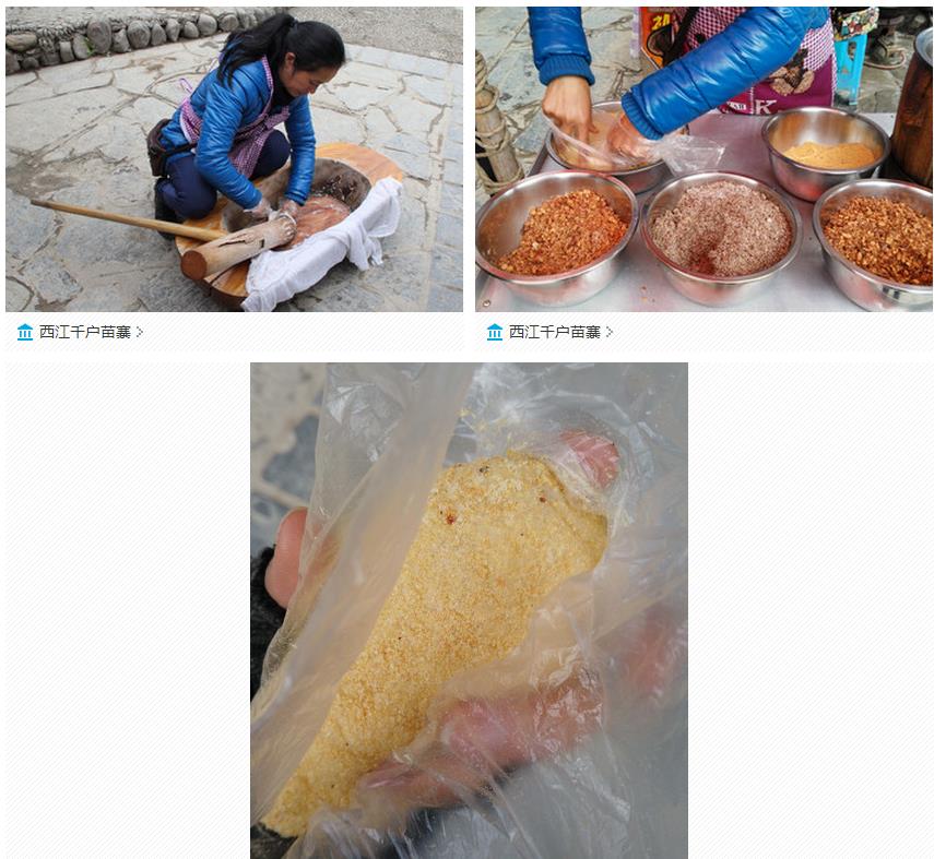 街上好多卖手工糖,是用木槌子不断捶打后冷却定型的,老远就能闻到香味了。有花生,芝麻,瓜子仁等等,差不多25元一斤。可以买一些,而且好像除了西江其他地方都没有见到,不过真的挺沉的。