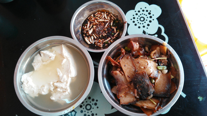 胖妈生意还不错,不一会人就开始多了起来。点了土鸡汤,蕨菜和苗家三宝,这个三宝是腊肉,腊肠和血豆腐。腊肉果然就是香,特别下饭,蕨菜也正好是当季。